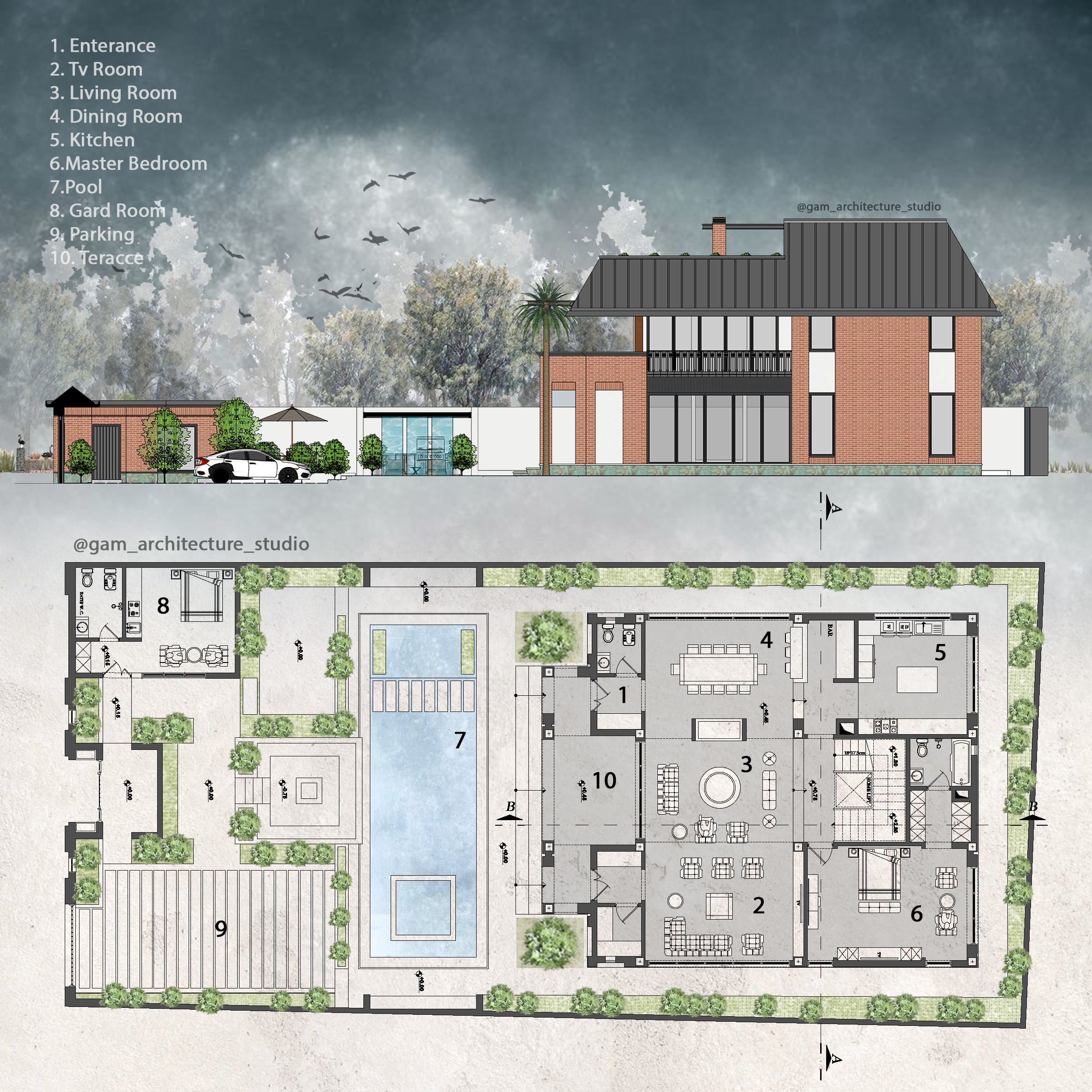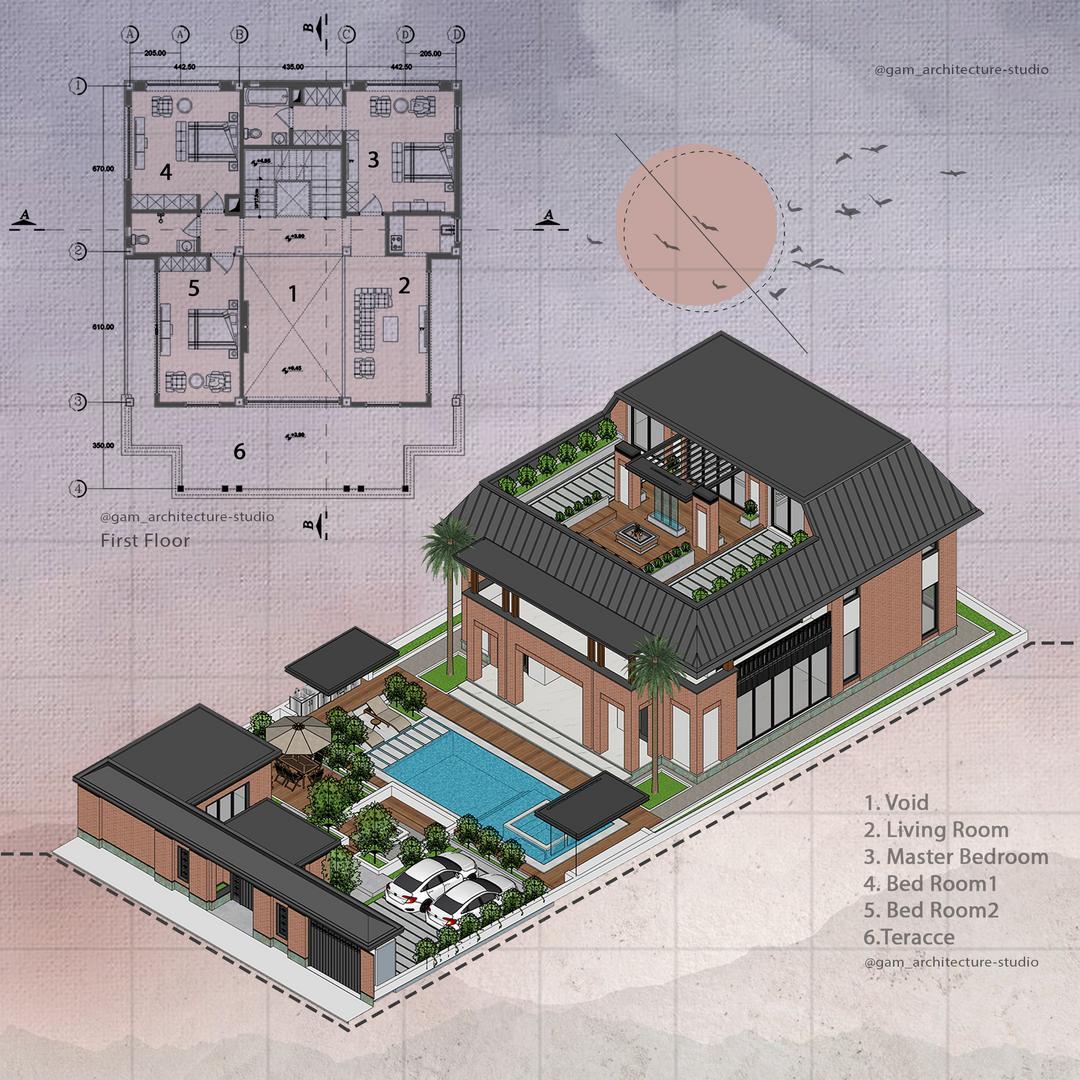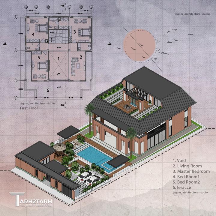 پروژه در زمینی به مساحت 600 مترمربع و به درخواست کارفرما در سبک معماری ایرانی کلاسیک طراحی گردید.
