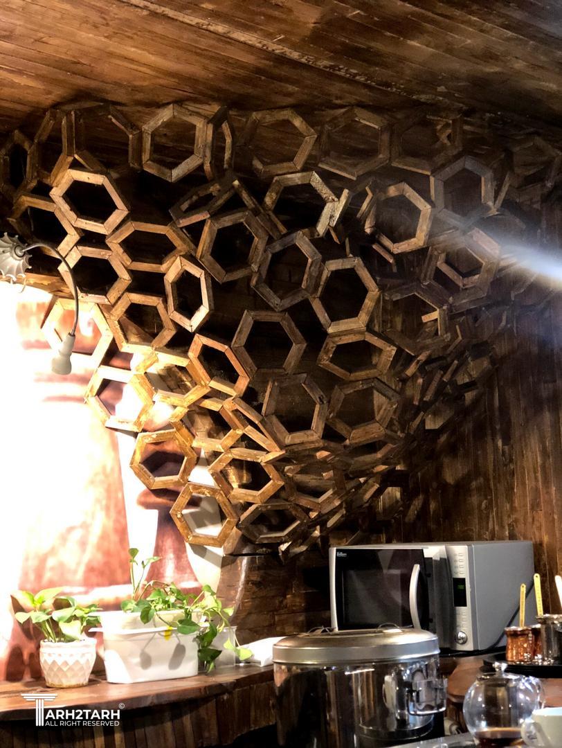 هدف اصلی طراحی، خلق فضایی گرم و صمیمی در دل محیط پرتردد مجتمع اطلس بود؛ فضایی که مخاطب در آن احساس آرامش و تعلق کند. متریال غالب، چوب است که بهعنوان عنصر هویتبخش، گرما و اصالت را به فضا منتقل میکند. ساختار هندسی ششضلعیها با الهام از کندوی عسل، مفهوم نظم و پیوستگی را تداعی کرده و با نورپردازی گرم و متمرکز، عمق و پویایی بصری ایجاد کرده است. ترکیب چوب با فلز، استفاده از عناصر طبیعی و نورهای موضعی، تعادلی میان حس صمیمیت و مدرنیته به وجود آورده است. این پروژه تلاشی است برای بازآفرینی تجربهی «آرامش در میان هیاهو».