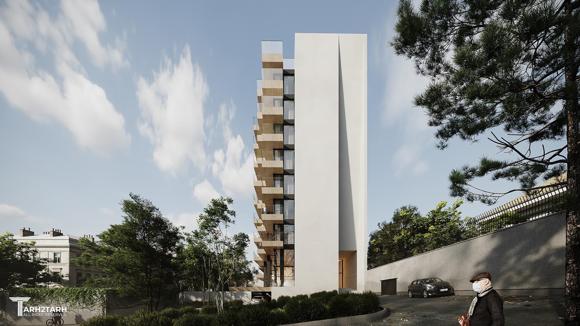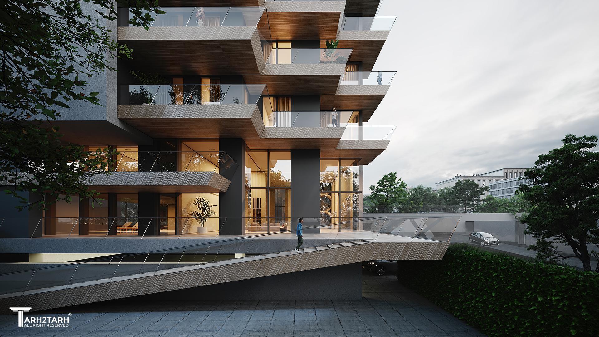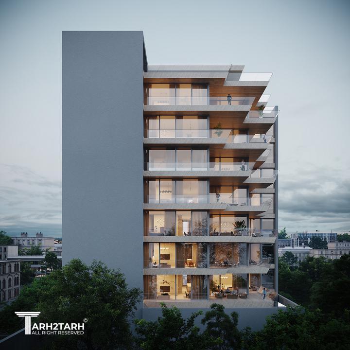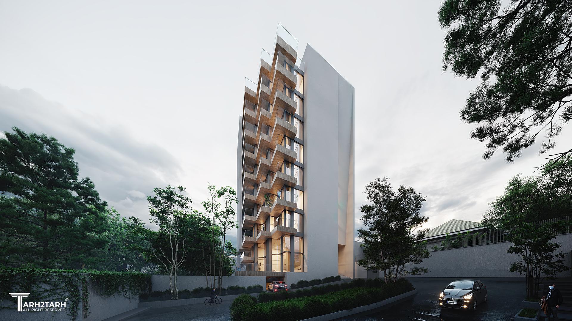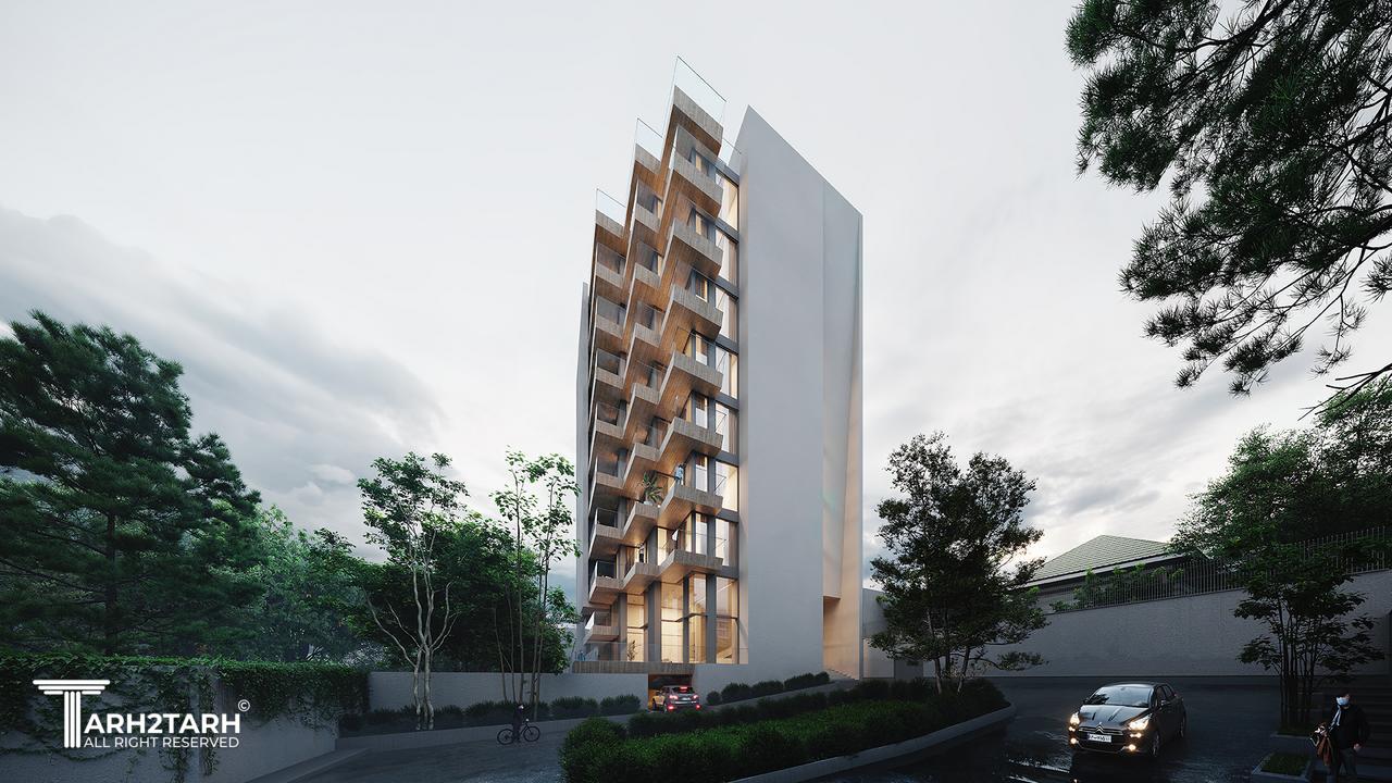 پروژه در یکی از بهترین موقعیتهای محله گلستان شمالی، با دید مستقیم به پارک و کاخ نیاوران طراحی شده؛ موقعیتی که نهتنها ارزش بصری بالایی دارد، بلکه پروژه را به یکی از شاخصترین قطعات مسکونی منطقه تبدیل کرده است. ساختمان شامل سه طبقه پارکینگ، یک طبقه امکانات رفاهی، و لابیای چشمگیر با ارتفاع ۱۱ متر است که فضاهایی مانند استخر، باشگاه، کافه و اتاق جلسات را در دل خود جای داده است. در هفت طبقه بالایی، در هر طبقه یک واحد مستقل و بزرگ قرار دارد که با ترکیب سادگی و کیفیت، تجربهای ویژه از سکونت شهری ارائه میدهد. در طراحی این پروژه، ایده اصلی خلق ساختمانی متمایز بوده که در عین شاخص بودن، به زمینه تاریخی اطراف احترام بگذارد. تراسهای گسترده پیرامونی و پنجرههای تمامقد، مرز بین داخل و خارج را محو کرده و فرصتهای متنوعی برای زندگی خانوادگی در فضای نیمهباز ایجاد میکنند. این پروژه تلاش دارد با زبانی مینیمال و در عین حال غنی، مفهوم سکونت لوکس را در دل بافت شهری نیاوران بازتعریف کند.