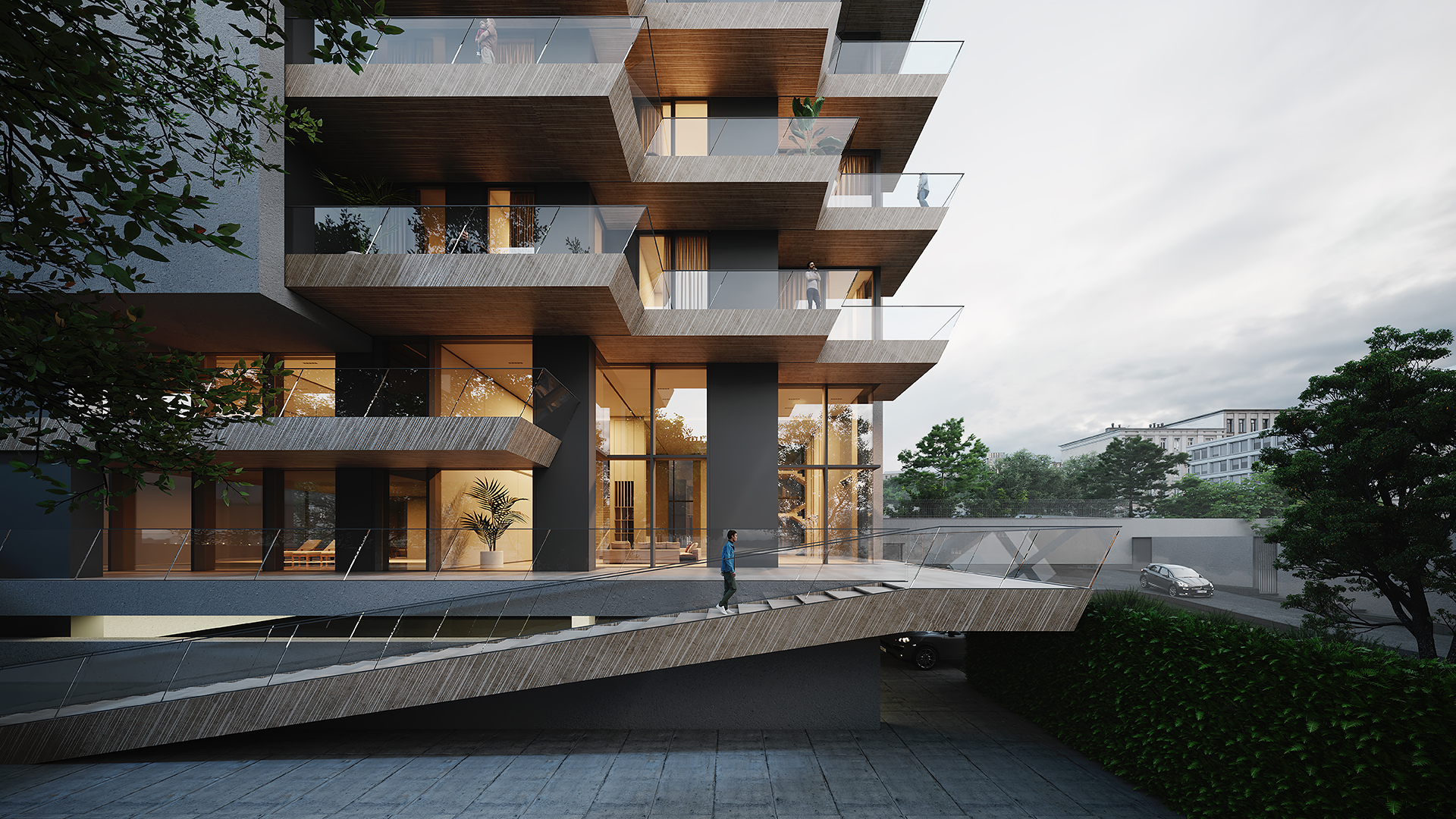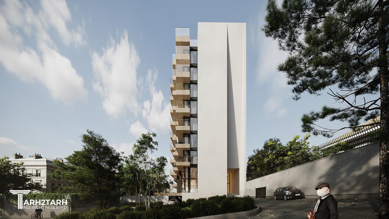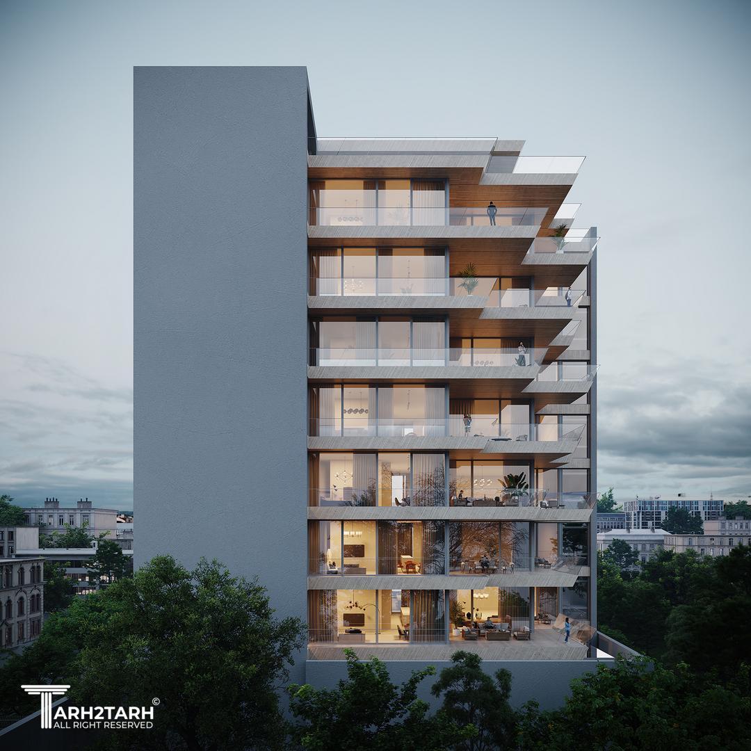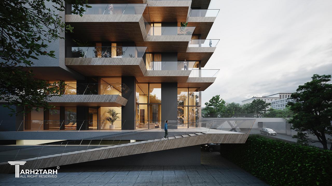 پروژه در یکی از بهترین موقعیتهای محله گلستان شمالی، با دید مستقیم به پارک و کاخ نیاوران طراحی شده؛ موقعیتی که نهتنها ارزش بصری بالایی دارد، بلکه پروژه را به یکی از شاخصترین قطعات مسکونی منطقه تبدیل کرده است. ساختمان شامل سه طبقه پارکینگ، یک طبقه امکانات رفاهی، و لابیای چشمگیر با ارتفاع ۱۱ متر است که فضاهایی مانند استخر، باشگاه، کافه و اتاق جلسات را در دل خود جای داده است. در هفت طبقه بالایی، در هر طبقه یک واحد مستقل و بزرگ قرار دارد که با ترکیب سادگی و کیفیت، تجربهای ویژه از سکونت شهری ارائه میدهد. در طراحی این پروژه، ایده اصلی خلق ساختمانی متمایز بوده که در عین شاخص بودن، به زمینه تاریخی اطراف احترام بگذارد. تراسهای گسترده پیرامونی و پنجرههای تمامقد، مرز بین داخل و خارج را محو کرده و فرصتهای متنوعی برای زندگی خانوادگی در فضای نیمهباز ایجاد میکنند. این پروژه تلاش دارد با زبانی مینیمال و در عین حال غنی، مفهوم سکونت لوکس را در دل بافت شهری نیاوران بازتعریف کند.