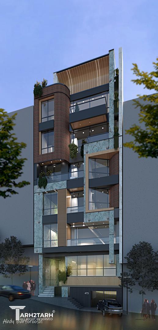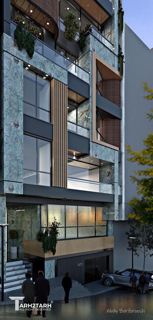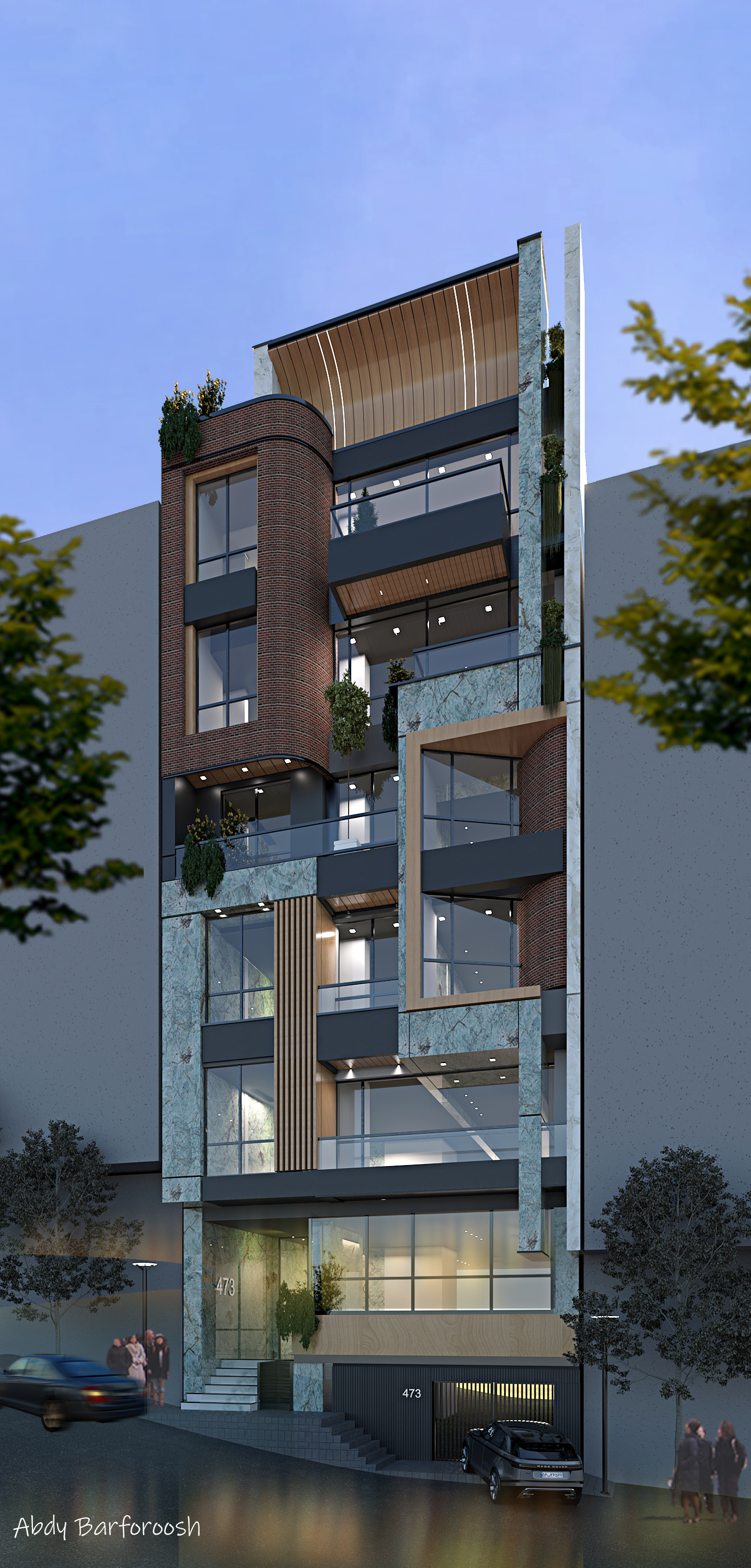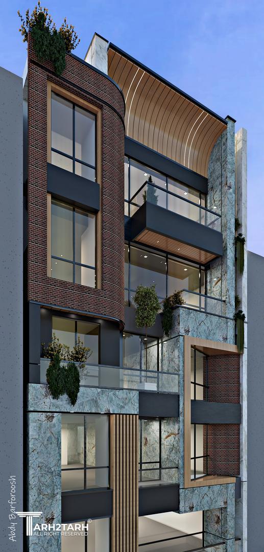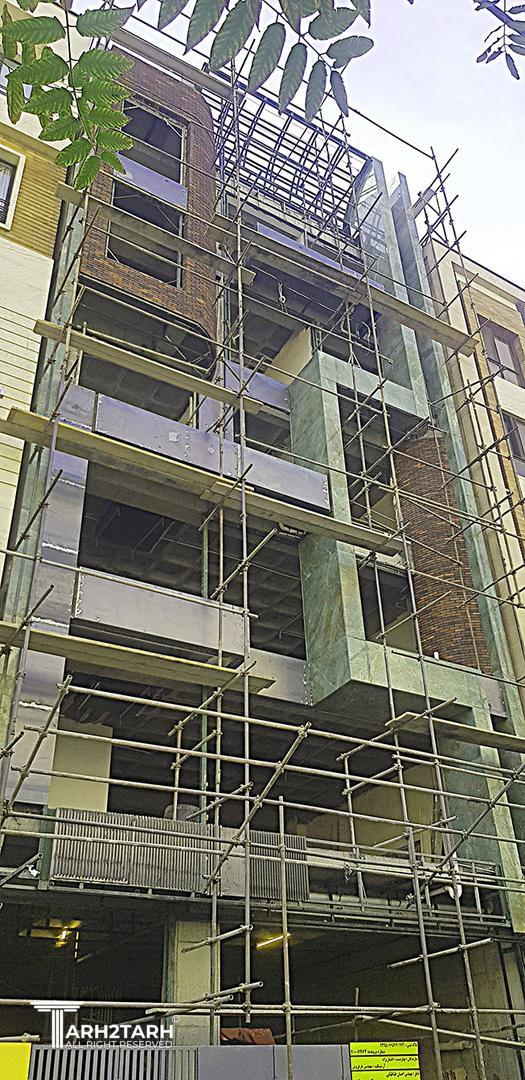 طراحی نمای سپهر 9 بر اساس مفاهیم معماری ایرانی که عناصر معماری و احجام هر چه به بالا حرکت میکنند سبکتر میشوند و بحث معلق بودن احجام در فضا شکل گرفته و تراسها با ارتفاع دو طبقه که نسبت به هم لغزیده و تلفیق بین حرکت و معلق بودن عناصر و احجام و در انتها نمایش قوس معکوس در تاج نما باعث ترکیب و شکلدهی نما گردیده است.