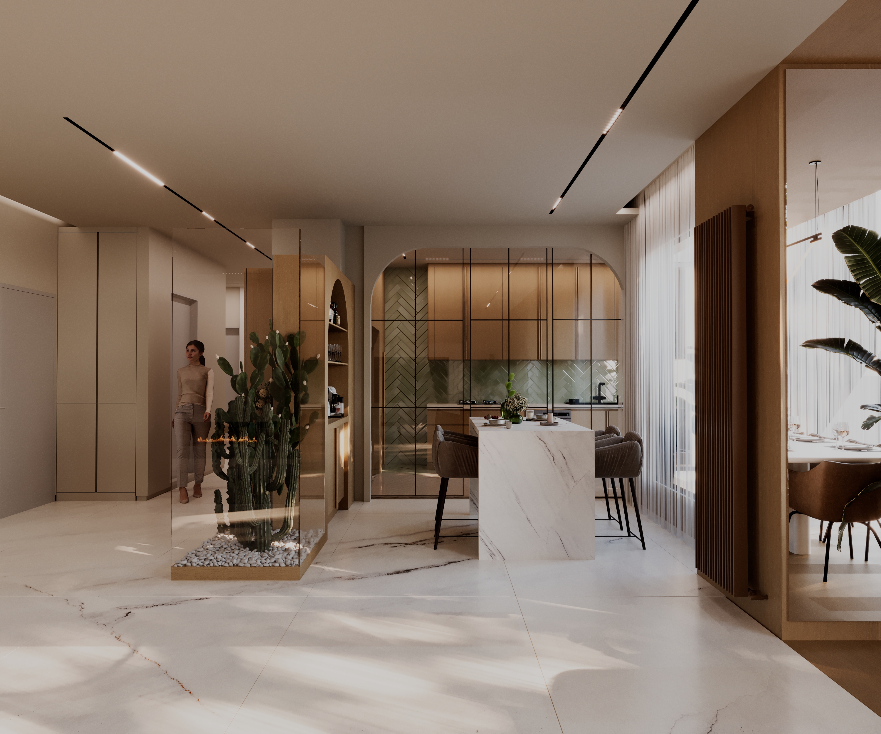 در طراحی پروژه سعی شده است با حفظ پالت های رنگی فضاهای معماری گذشته ایران ، فضاهای مینیمال مدرن و معاصری طراحی شود. توجه به متریال های طبیعی همچون چوب و سبزینگی در پروژه در اولیت بود.