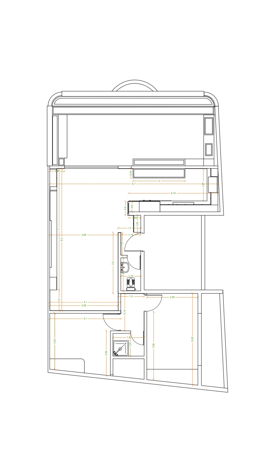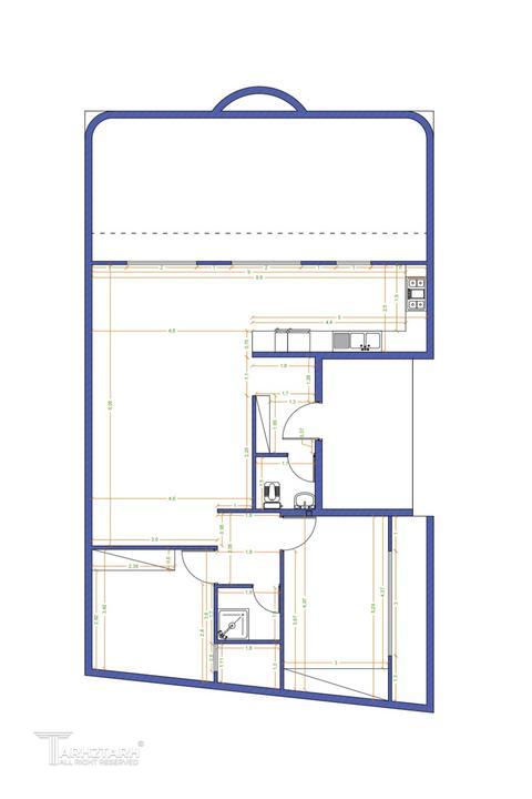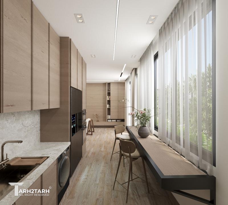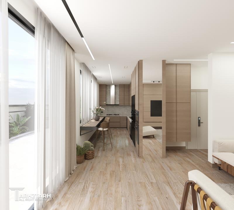 کارفرما مجوز ساخت یک واحد روی طبقه آخرو گرفته بودن و با چالش چیدمان فضایی نسبت به محدودیت جای آشپزخانه و تاسیسات خانه و الزام دو خواب بودن ، روبه رو بودن با توجه به خواسته های کارفرما طراحی انجام شد