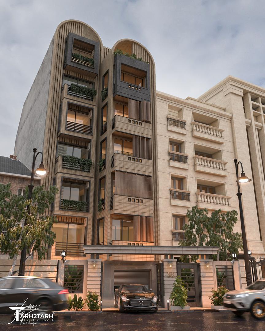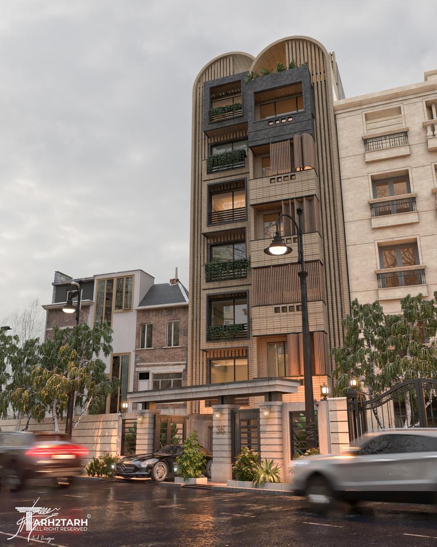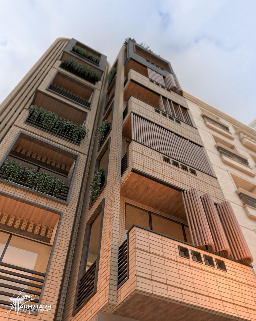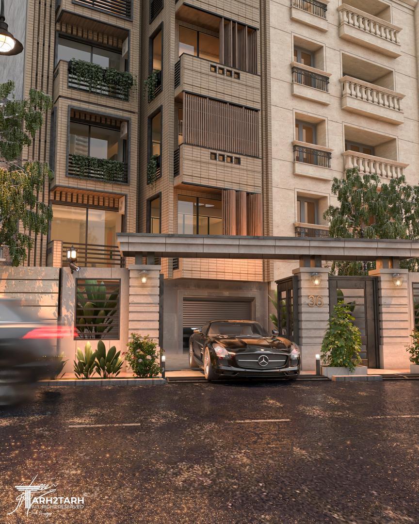 نمایی مدرن و یکپارچه که با استفاده از خطوط عمودی و تاکید بر حفظ حریم و کنترل نور شکل گرفت