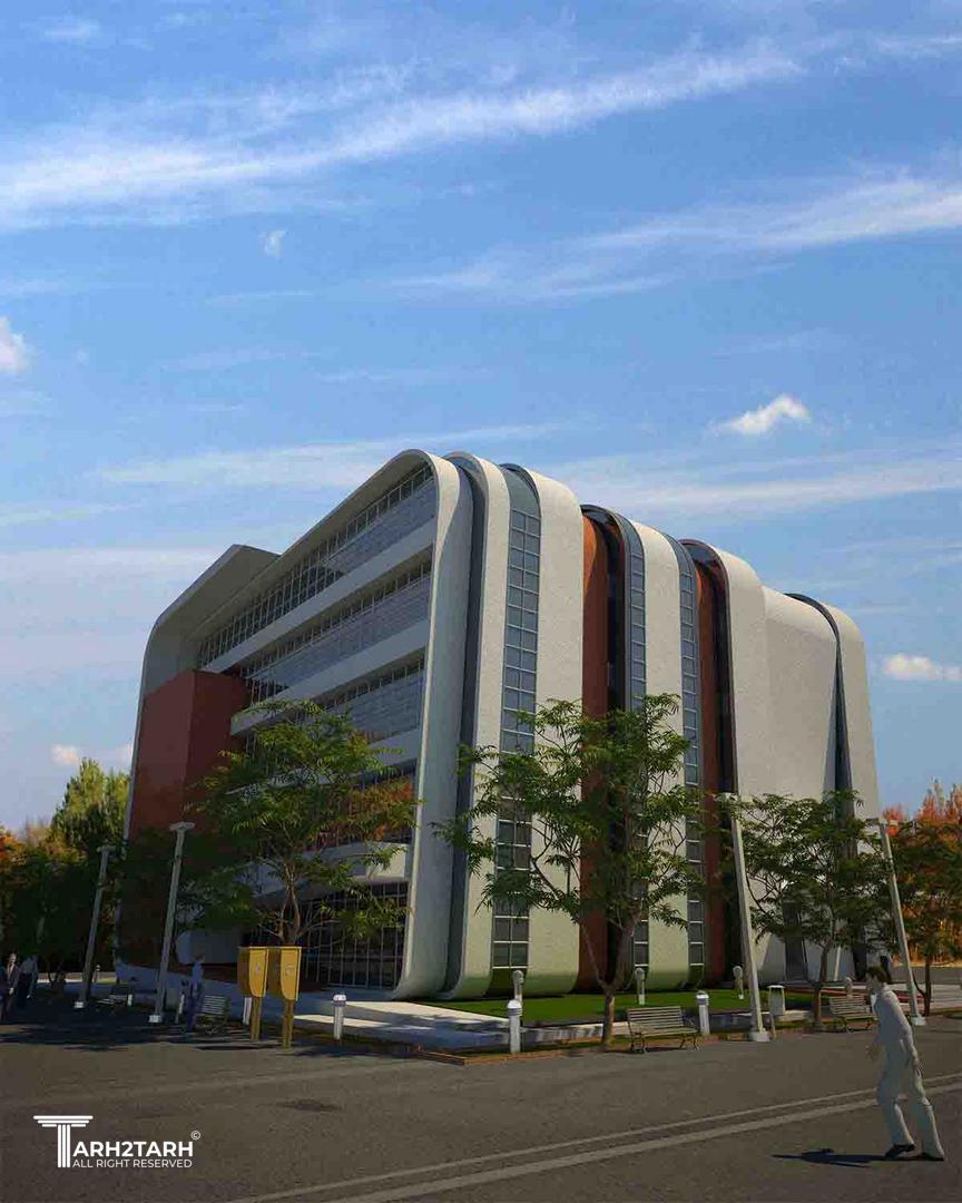 برنامه این پروژه طراحی یک دانشکده با قابلیت تکرار در سایر واحدهای دانشگاه آزاد بود و خواسته شده بود که از حجم و فرم خالصی بهره گیرد تا بتواند در سایر سایت ها با زمینهای محدودتر نیز قابل اجرا باشد، لذا حجم حجم کلی از یک قالب مکعبی شکل گرفت و در جهت بیان تئوریک و مفهومی سعی بر آن شد تا با انعطاف در گوشه ها و نرم ساختن تقاطع صفحات حجمی، نوعی انعطاف پذیری و حرکت ارگانیک را تداعی نماید.