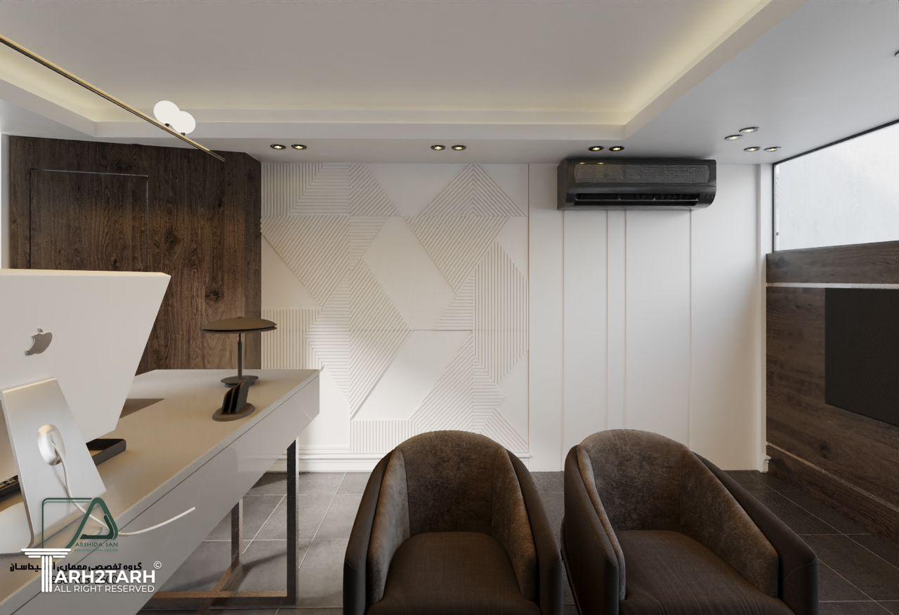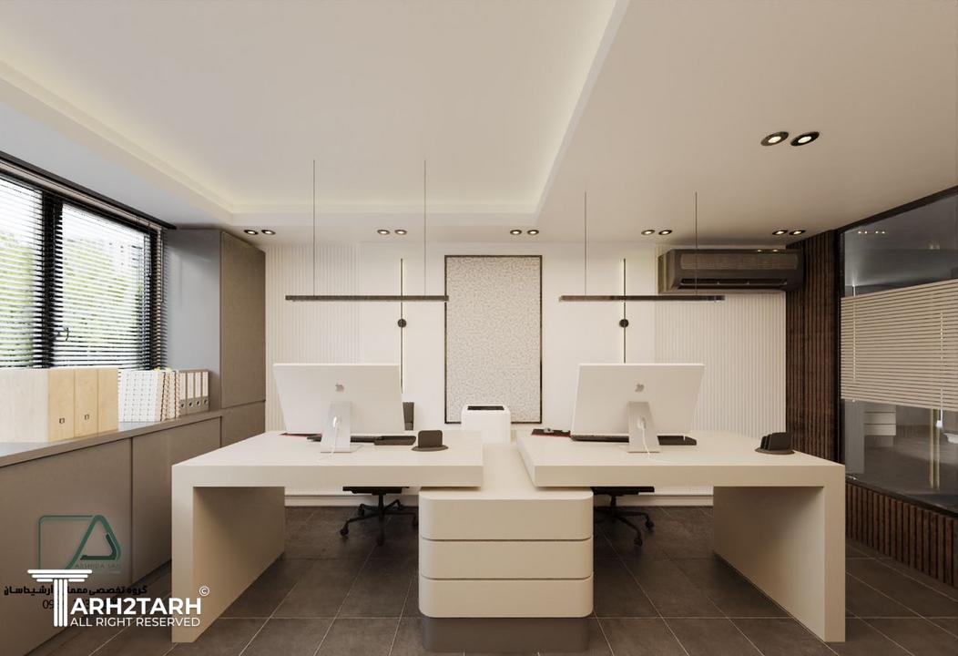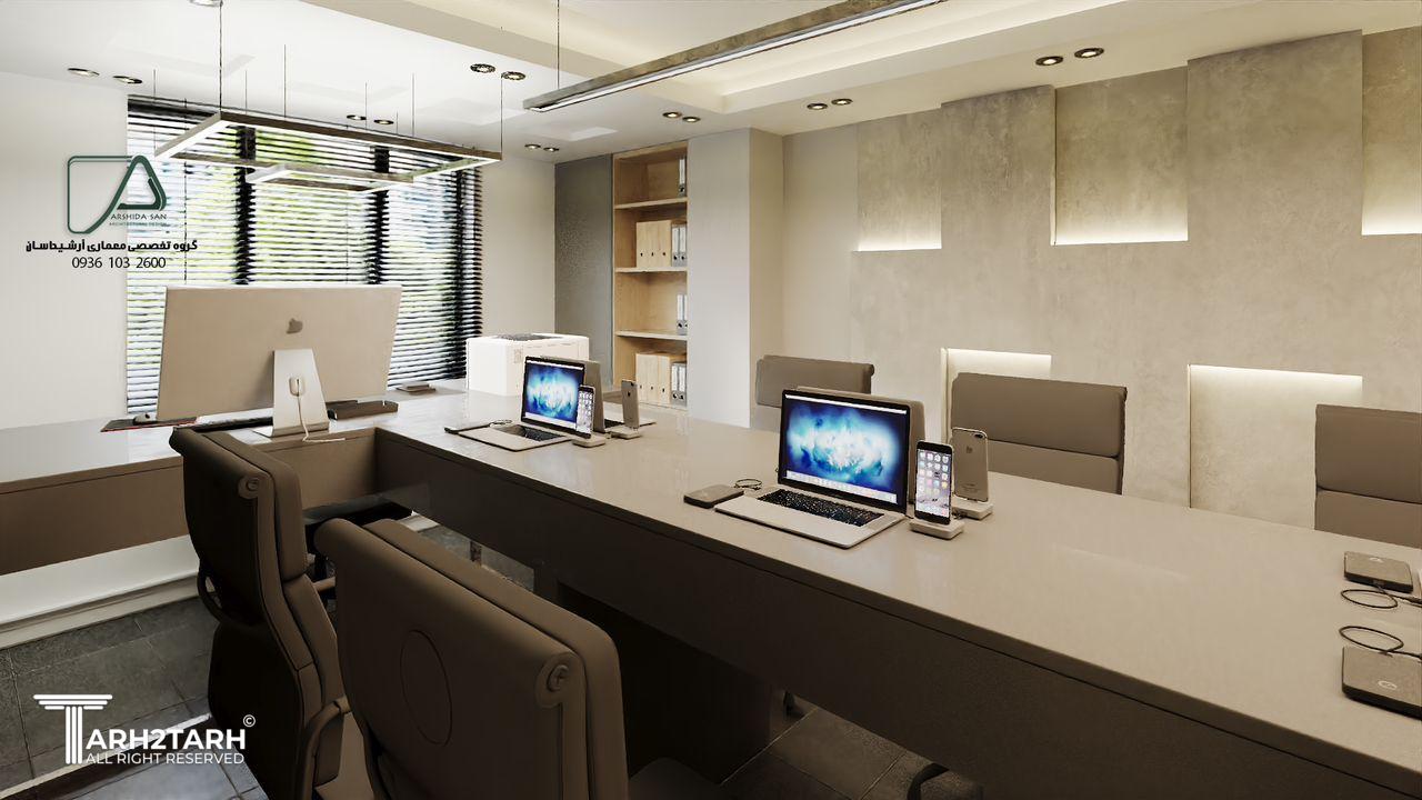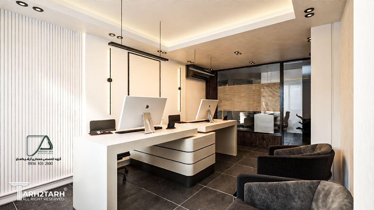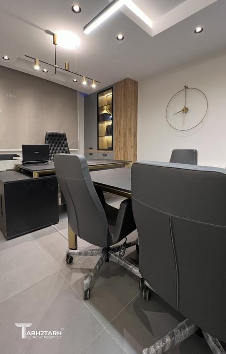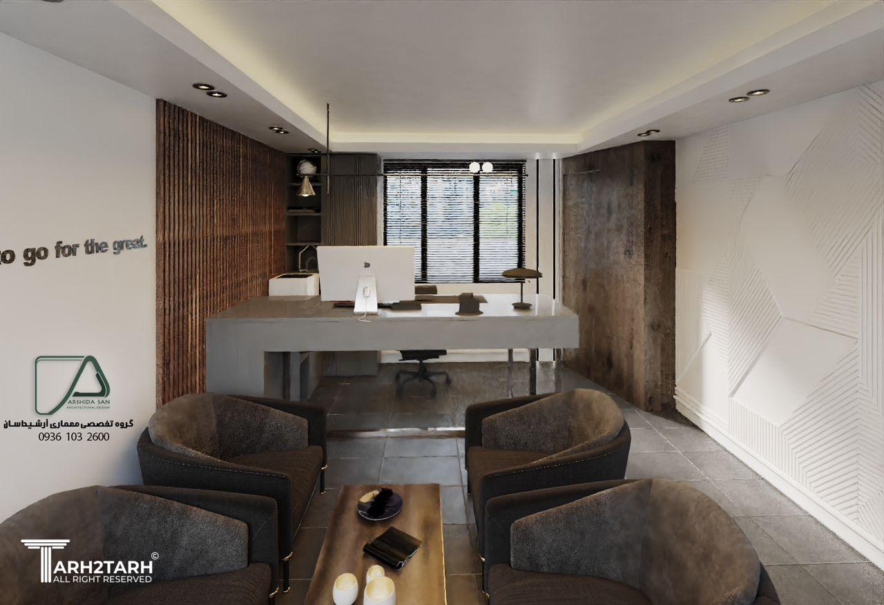 طراحی داخلی دفتر عمرانی به سبک مدرن و مینیمال، با متریال بروز و مبلمان طراحی شده