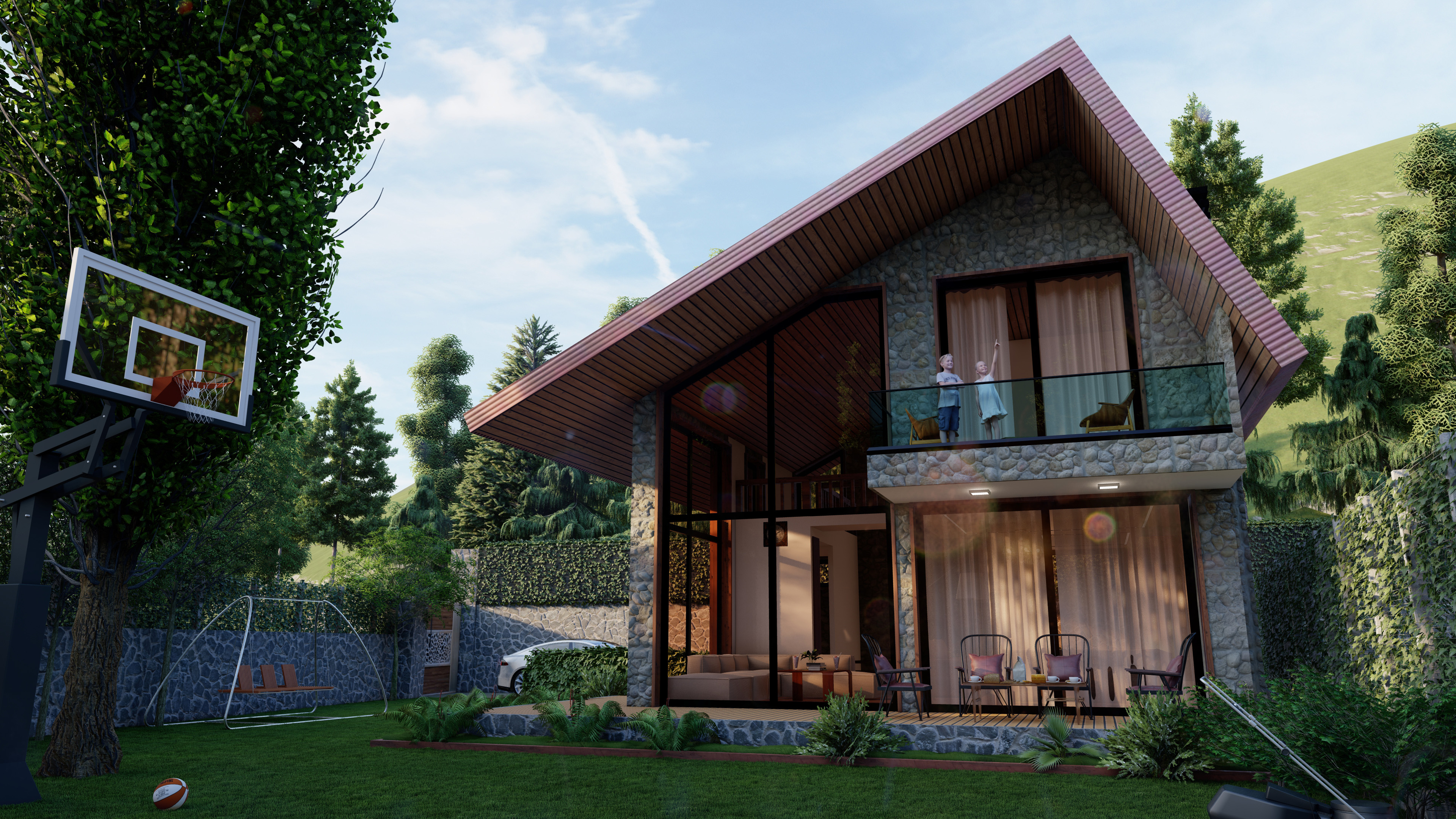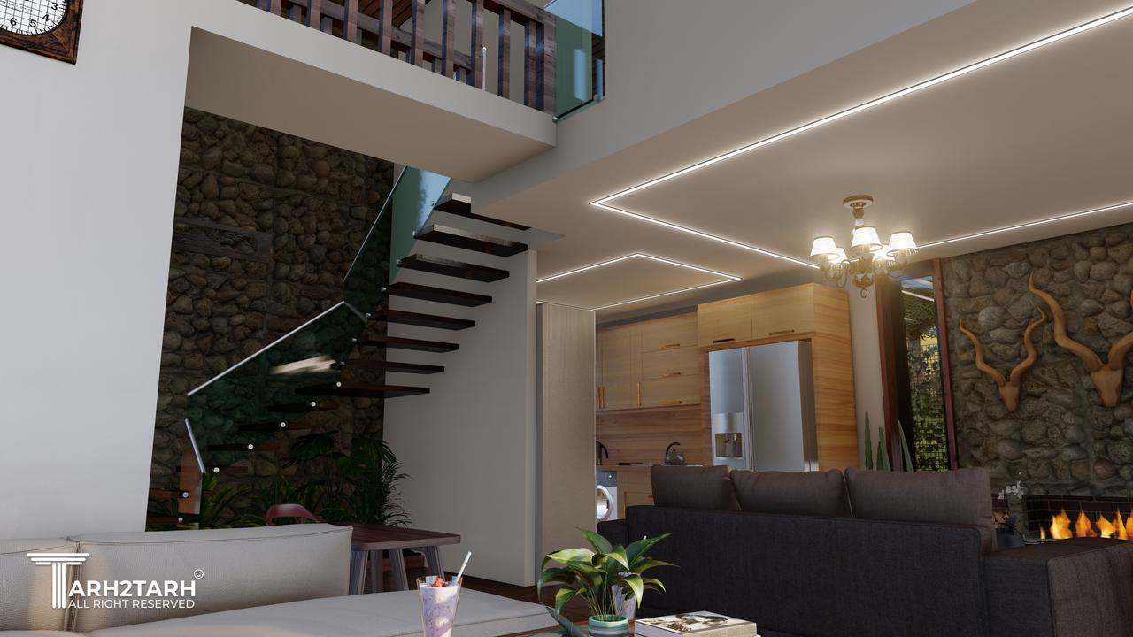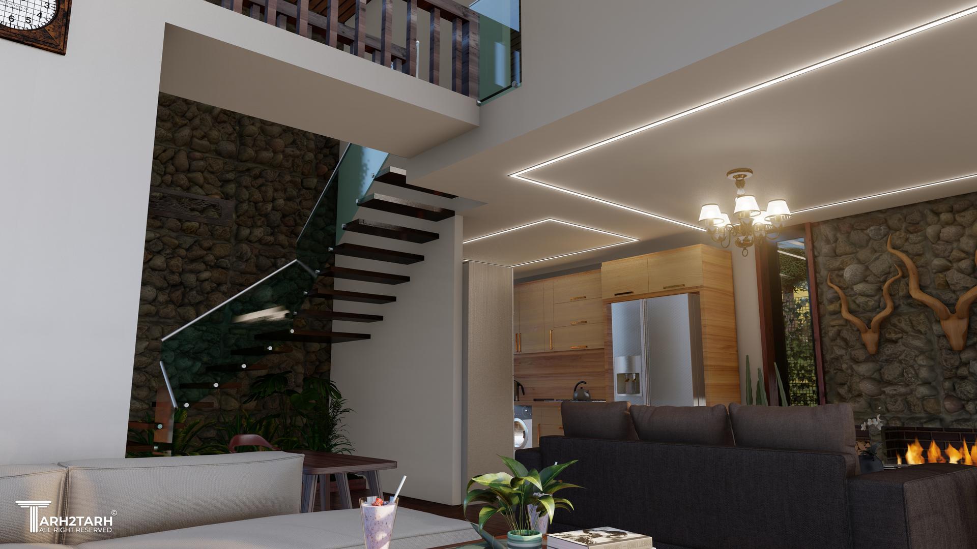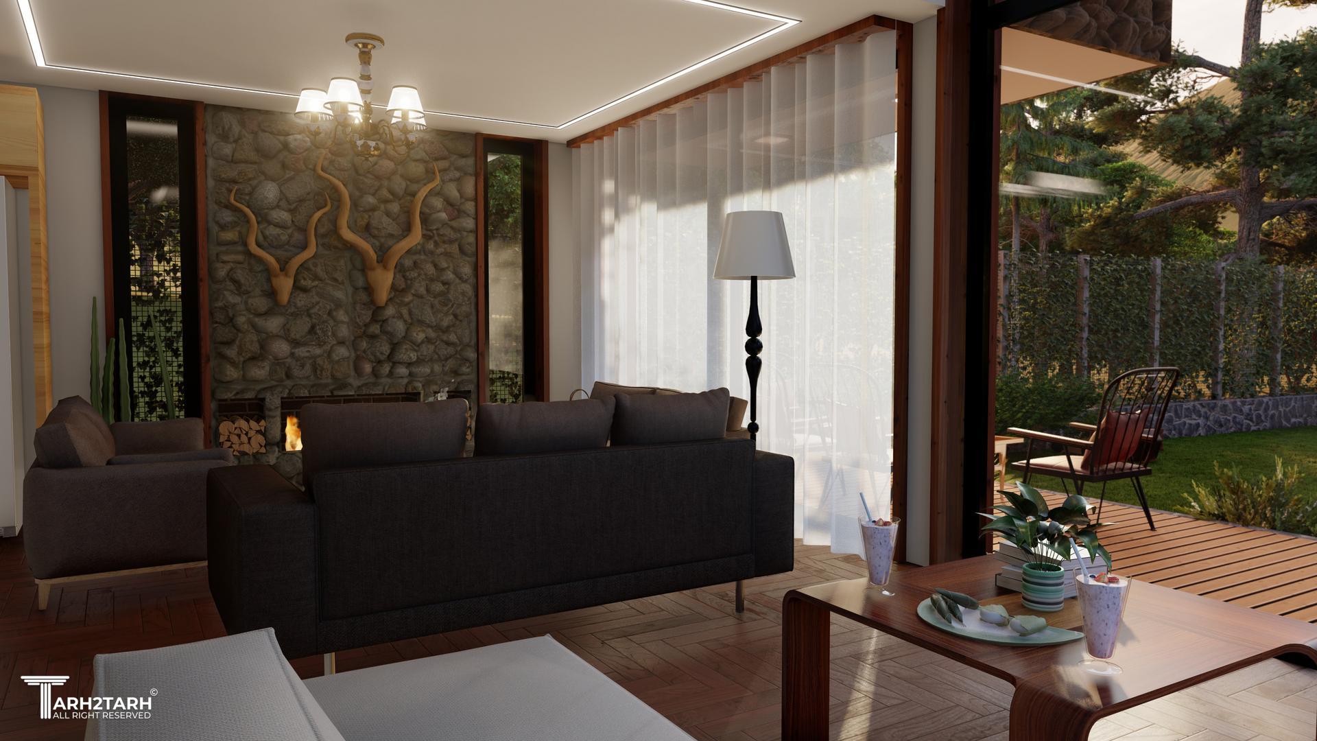 یک ویلای کوهستانی در منطقه سرد دیزین با سبک روستیک که حس بودن در دل کوهستان را به متصرف القا میکند و شیشه های بلند کمک می کند دید ناظر تا بلندای کوه و طبیعت گریز داشته باشد .