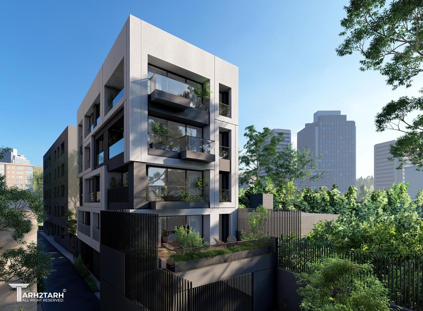 پروژه مسکونی فکری در یکی از کوچههای آرام منطقه الهیه واقع شده است. طراحی این بنا با تأکید بر بهرهگیری از دید مطلوب جنوبی به سمت رودخانه و باغ سفارتهای منطقه شکل گرفته است. ترکیب نور طبیعی، چشماندازهای سبز و جزئیات معماری ظریف، فضایی آرام و باکیفیت برای سکونت فراهم کرده است.
