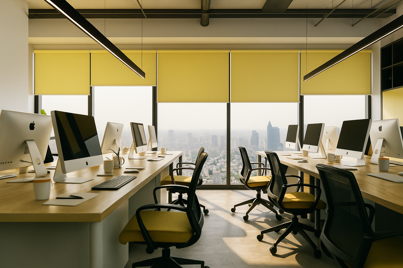 بازطراحی واحد اداری جهت کاربری آژانس مسافرتی با در نظر گرفتن تم رنگی زرد مطابق مجموعه و پارتیشن بندی فضا ها
