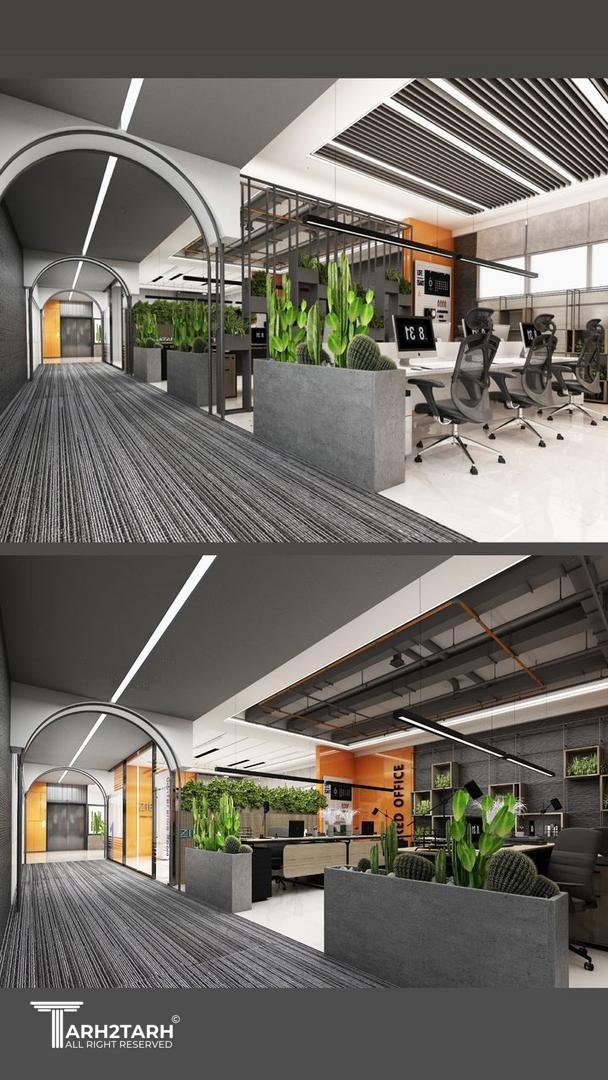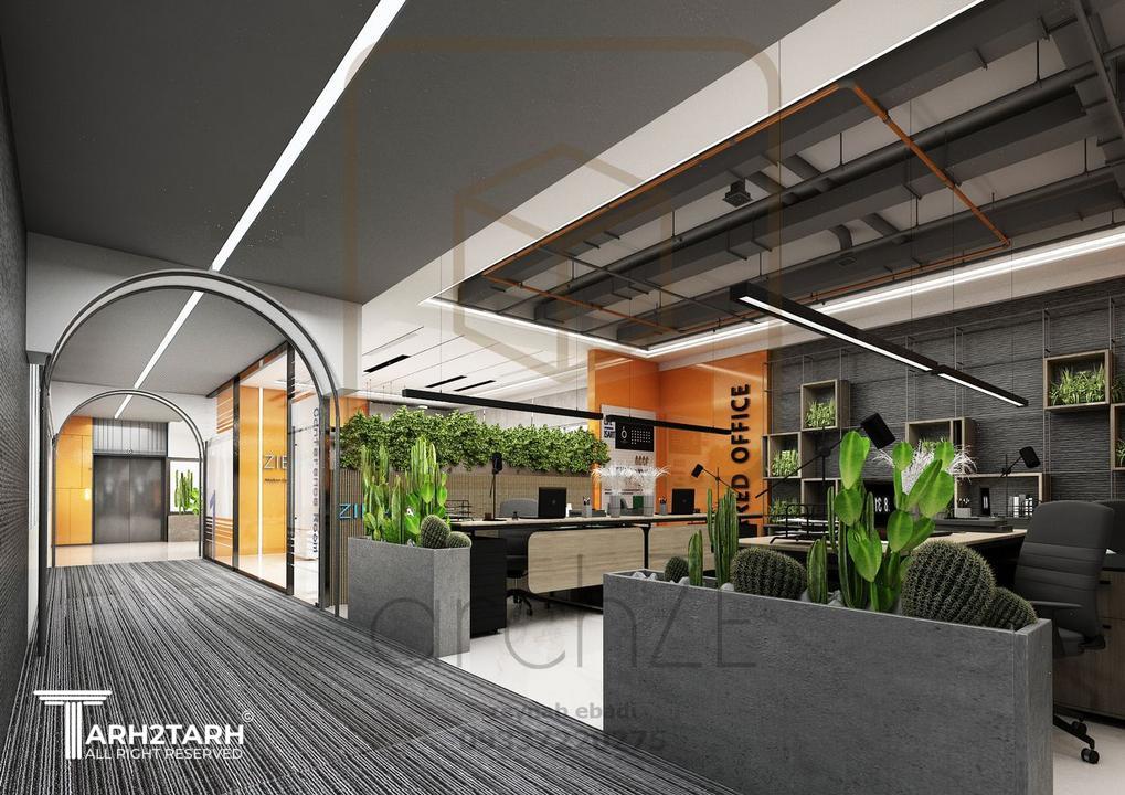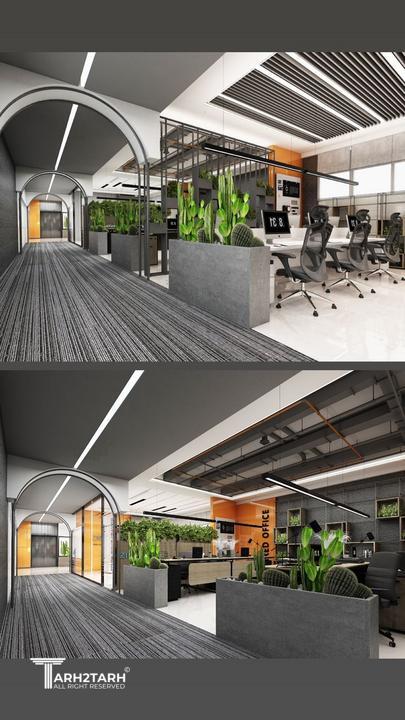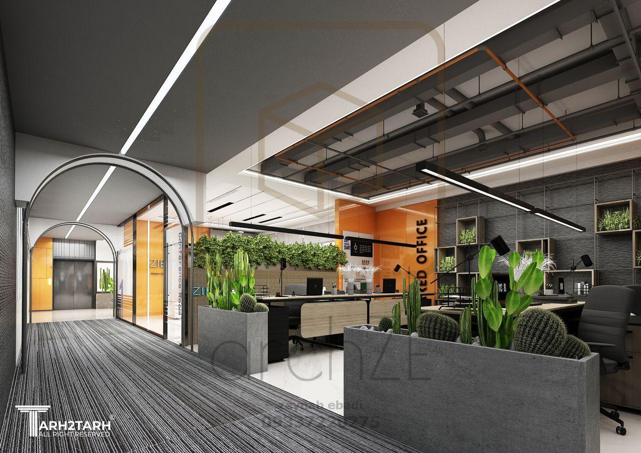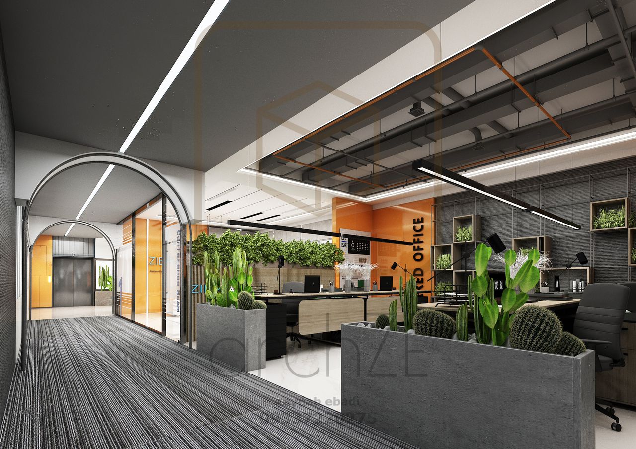 فضای اداری میانطبقه برای استقرار تیم گرافیک مجموعه طراحی شده است. در این فضا از رنگهای گرم و خلاقانه برای ارتقای حس پویایی و الهامپذیری استفاده شده است. همچنین با حذف پارتیشنها و طراحی بهصورت پلان باز، امکان تعامل، همکاری و جریان آزاد ایدهها میان کارکنان افزایش یافته است.
