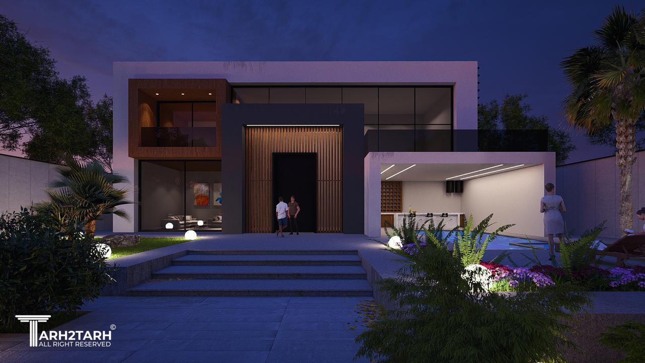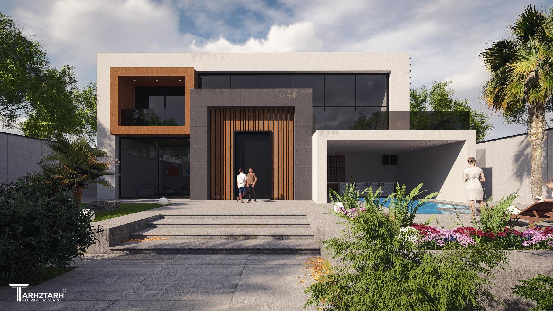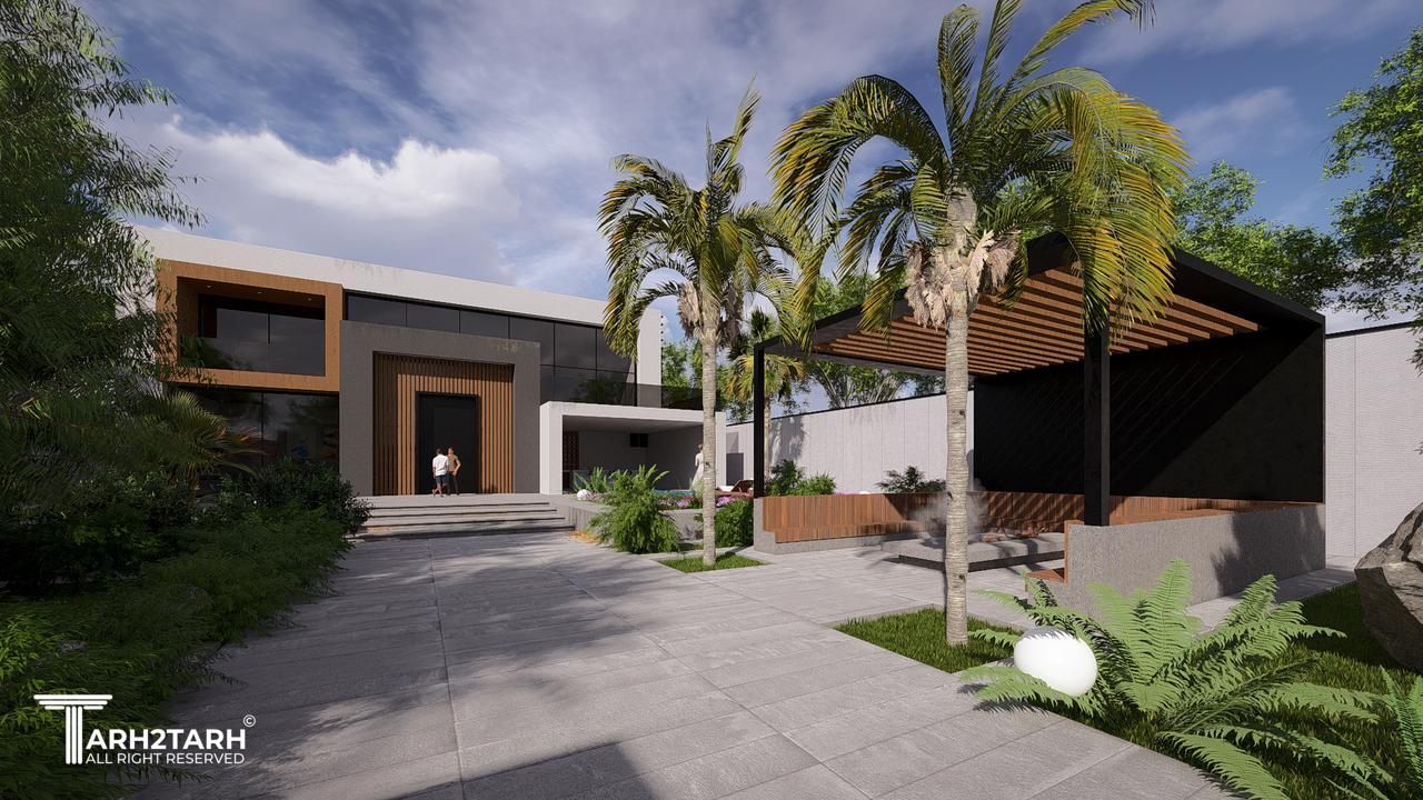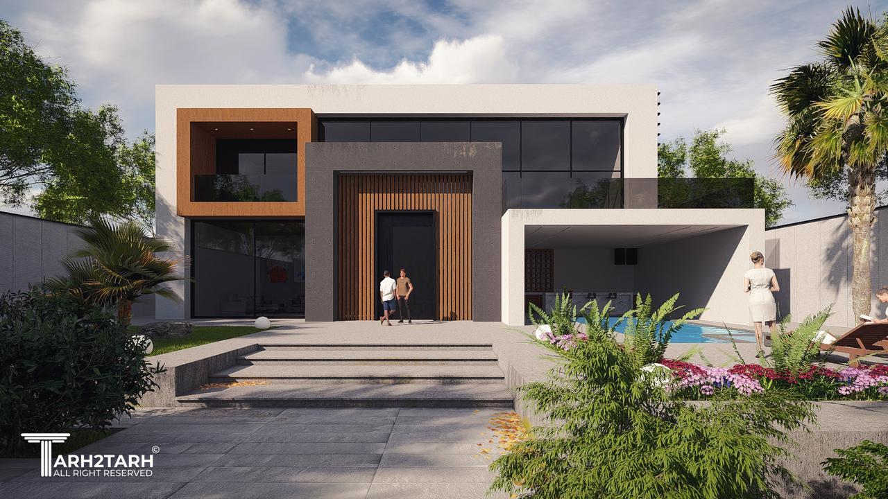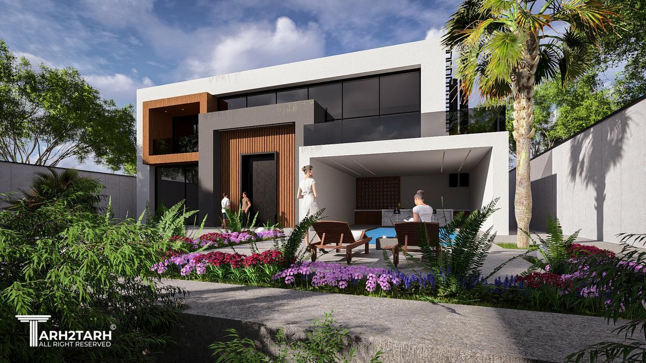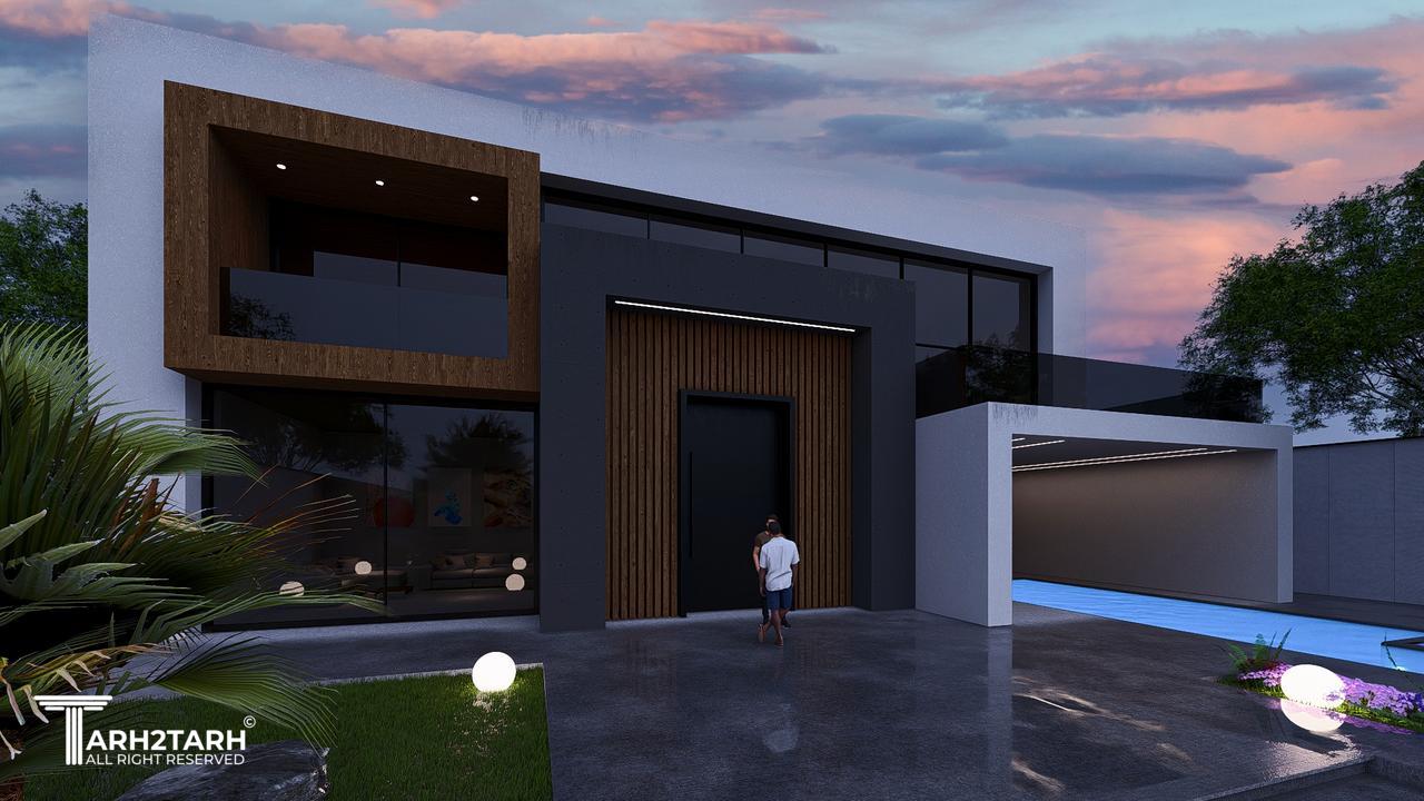 طراحی این ویلا به سبک مدرن انجام شده است تمایل کارفرما به استفاده از چوب باعث شد در این طرح از متریال چوب استفاده شود