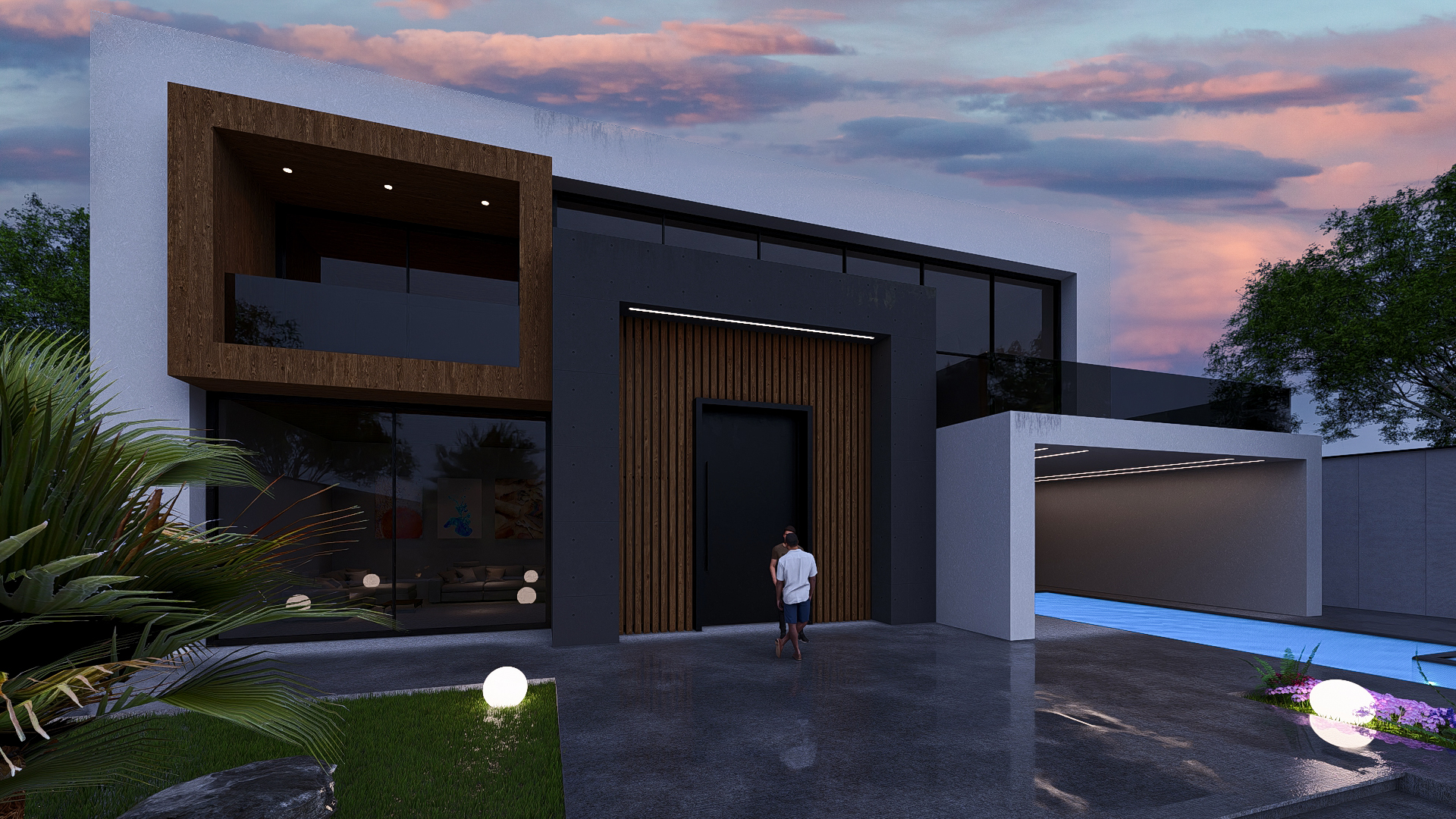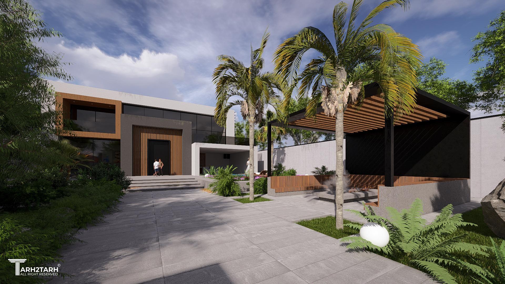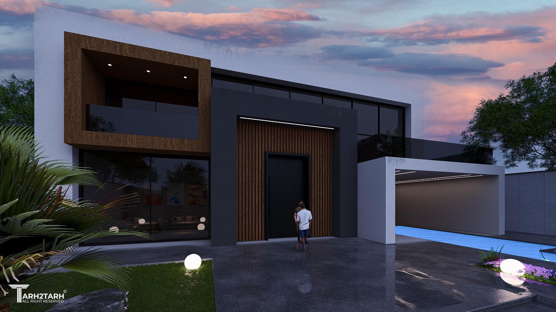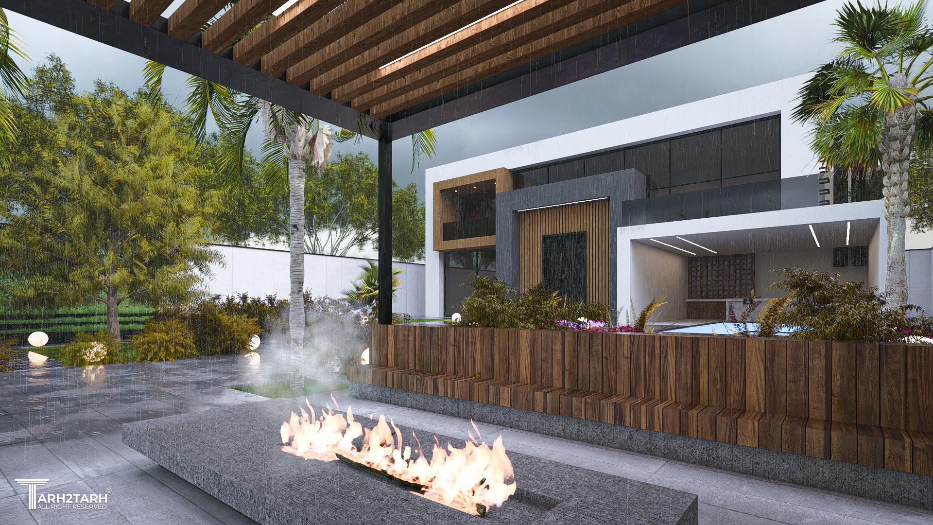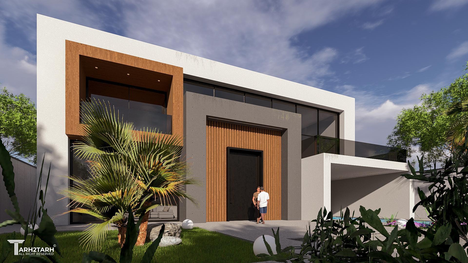 طراحی این ویلا به سبک مدرن انجام شده است تمایل کارفرما به استفاده از چوب باعث شد در این طرح از متریال چوب استفاده شود