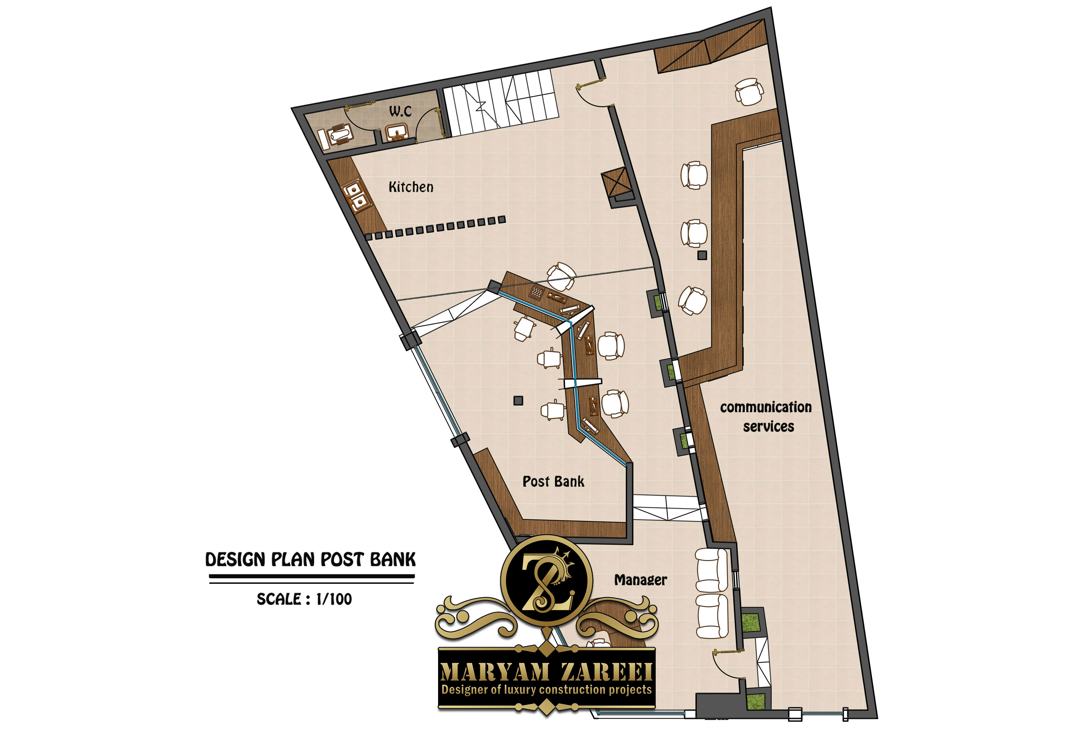 طراحی با توجه به وجود ستون های سازه و موارد خواسته شده توسط کارفرما انجام شده است