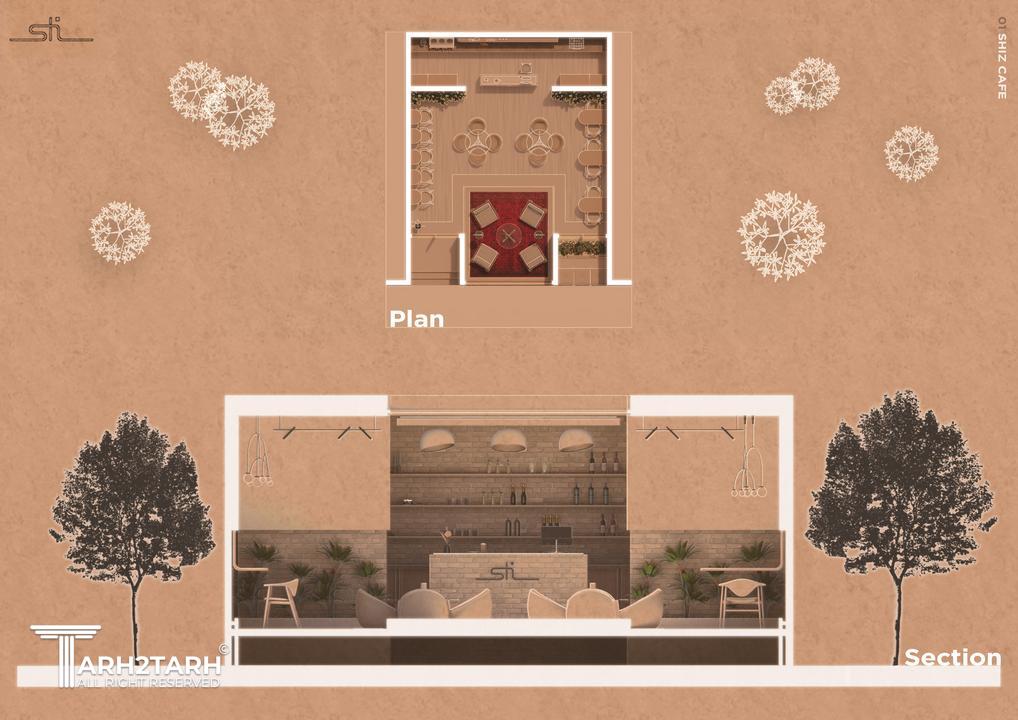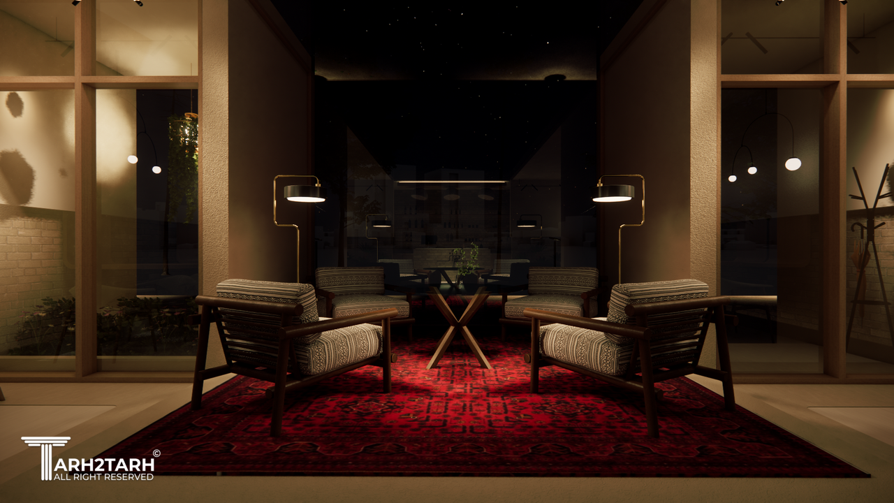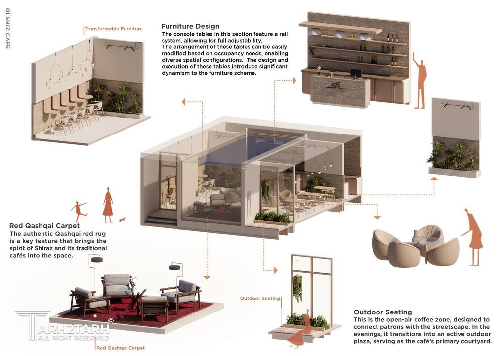 کافهی طراحی شده در شیراز که هدف آن انتقال حس شیراز و مبلمانی به چینش متغیر به دست کاربران است.