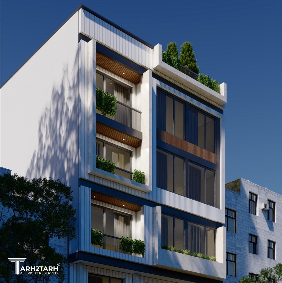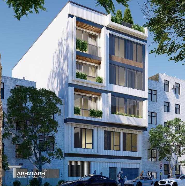 ن طرح بر پایه خلق یک کالبد آرام و درعینحال پویا شکل گرفته است؛ حجمی خالص با خطوط عمودی و افقی دقیق که در ترکیب با فریمهای تیره، چوب و سطوح روشن، ریتمی موزون و خوانا ایجاد میکند. بالکنهای سبز و تراس بام، طبیعت را بهعنوان یک لایه فعال وارد زندگی روزمره کرده و کیفیت زیستپذیری واحدها را افزایش میدهد. بازشوهای وسیع، نور طبیعی را به عمق فضا هدایت میکنند و در کنار عقبنشستگیها و سایهروشنهای حاصل از هندسۀ نما، تجربهای پویا در طول شبانهروز میسازند. این پروژه با تکیه بر سادگی کنترلشده، نظم هندسی و ادغام هوشمندانهی گیاه و نور، به معماریای دست یافته که همزمان معاصر، انسانی و ماندگار است.