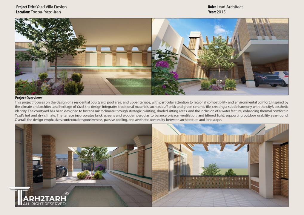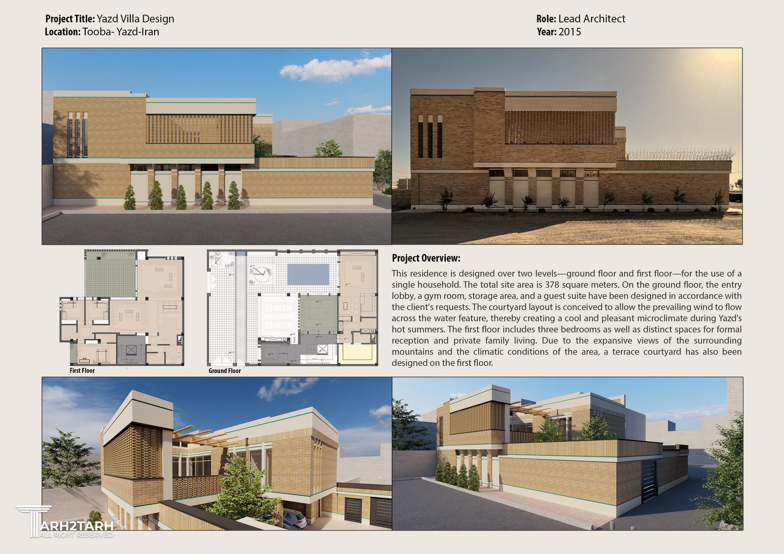 منزل مسکونی ویلایی واقع در بافت جدید شهر یزد که به سبک مدرن برای خانواده ای 4 نفره طراحی شد. طرحی و نظارت بر اجرا توسط تی ما صورت پذیرفت.