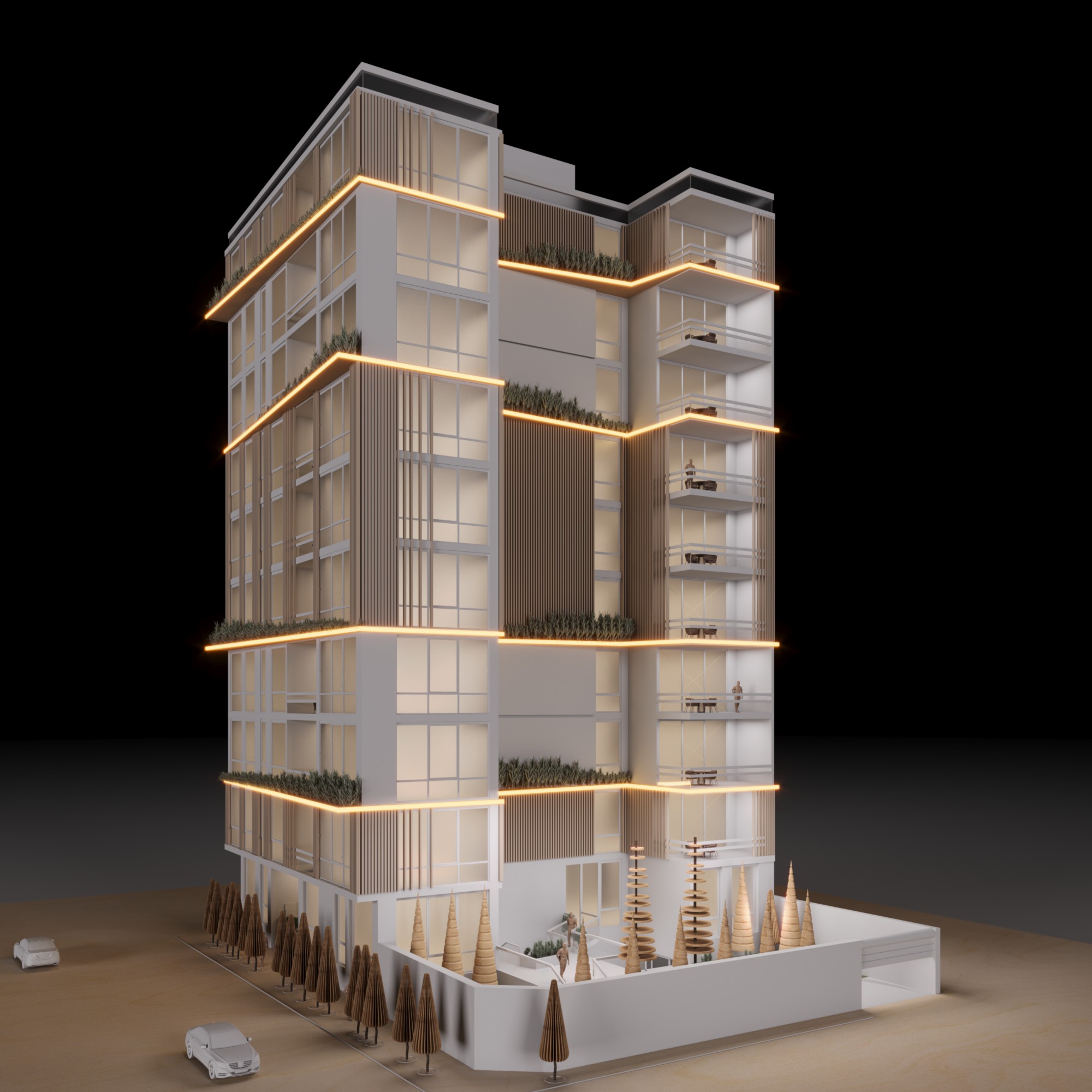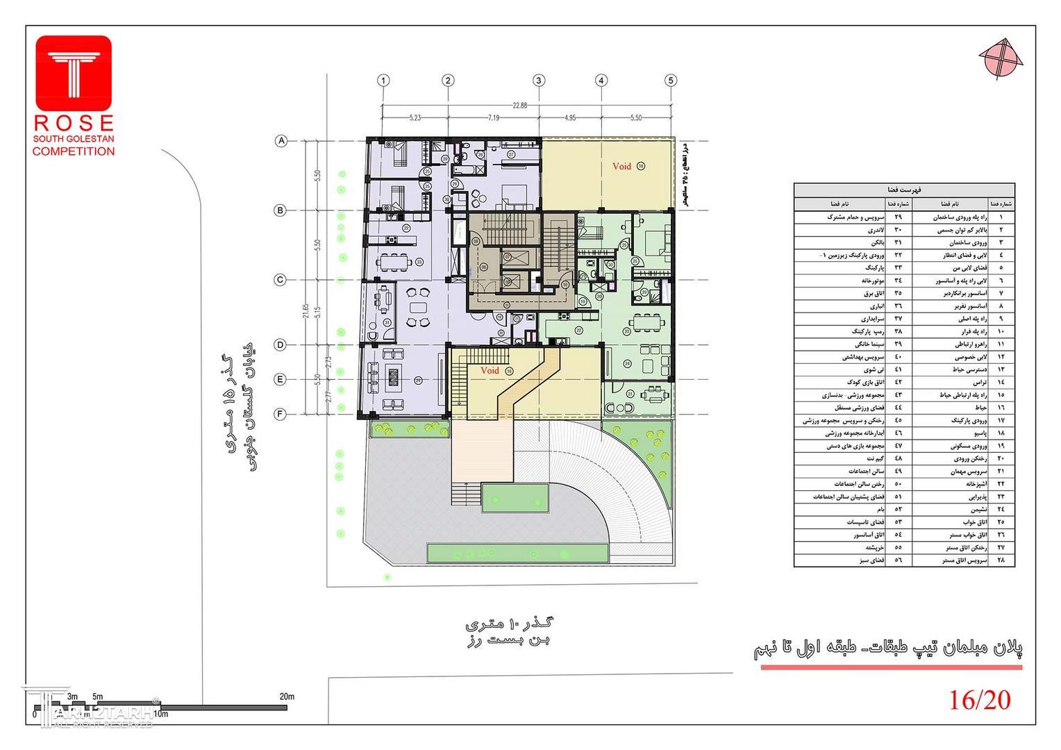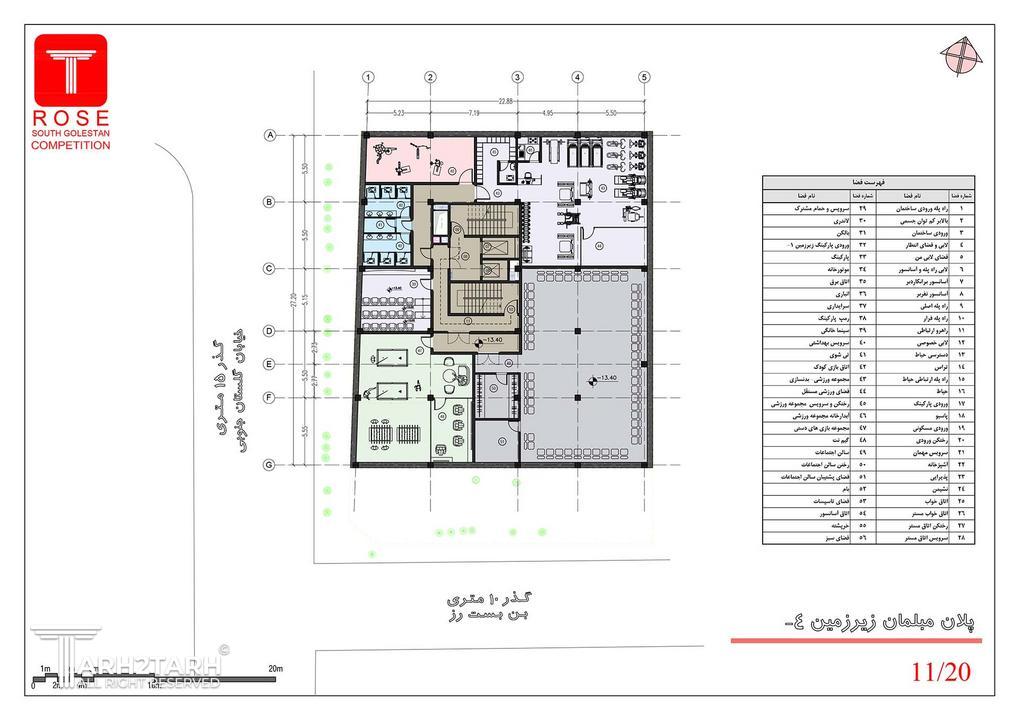 ساختمان مسکونی رُز با متراژ زمین ۸۴۳/۴۱ مترمربع شامل ۹ طبقه مسکونی روی همکف و ۴ طبقه زیرزمین میباشد.
