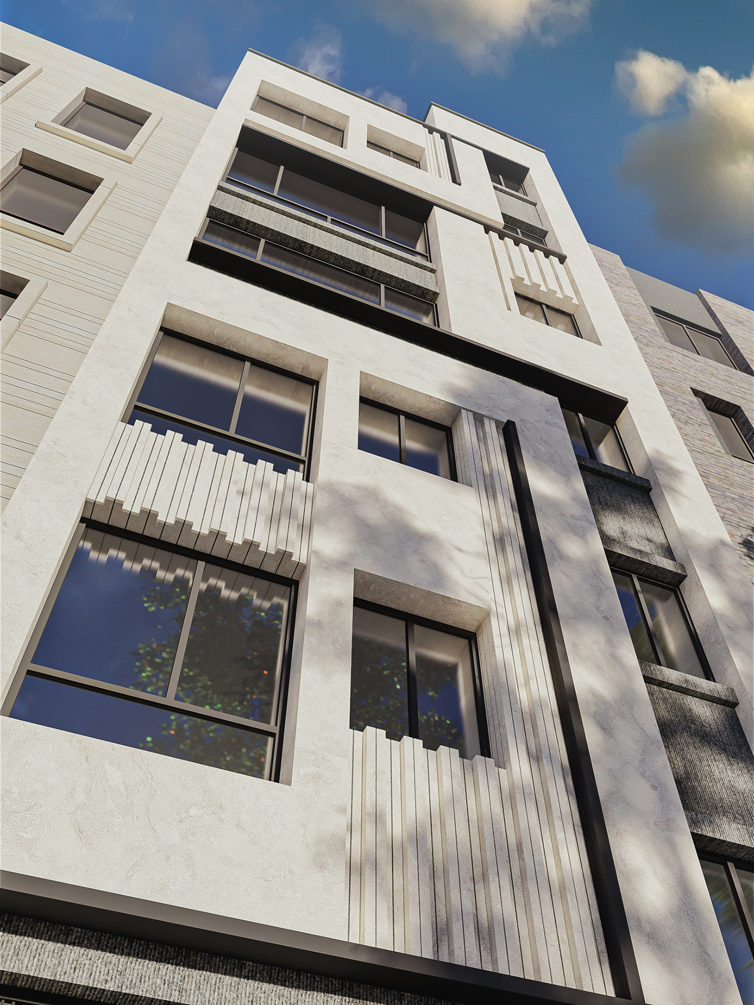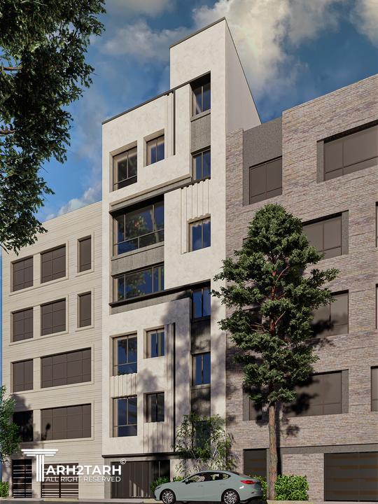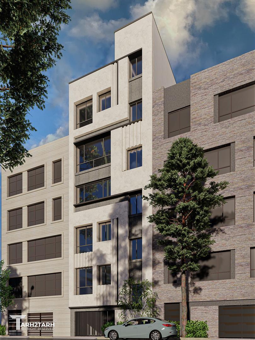 آلترناتیوی دیگر از پروژه تهران ویلا با چالش راه پله در نما، با طرحی متفاوت برای حل این مسئله و ایجاد یکپارچکی کل نما