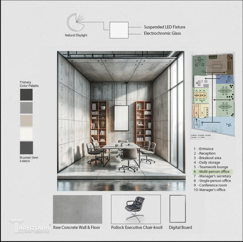 طراحی داخلی دفتر کار ۱- مکان: جمهوری دومینیکن ۲- معمار: زهرا یاقوتی ۳- مساحت: ۲۲۰.۴۸ متر مربع ۴- سال ساخت: ۲۰۲۱ ۵- سبک: ترکیبی از عناصر صنعتی و مدرن