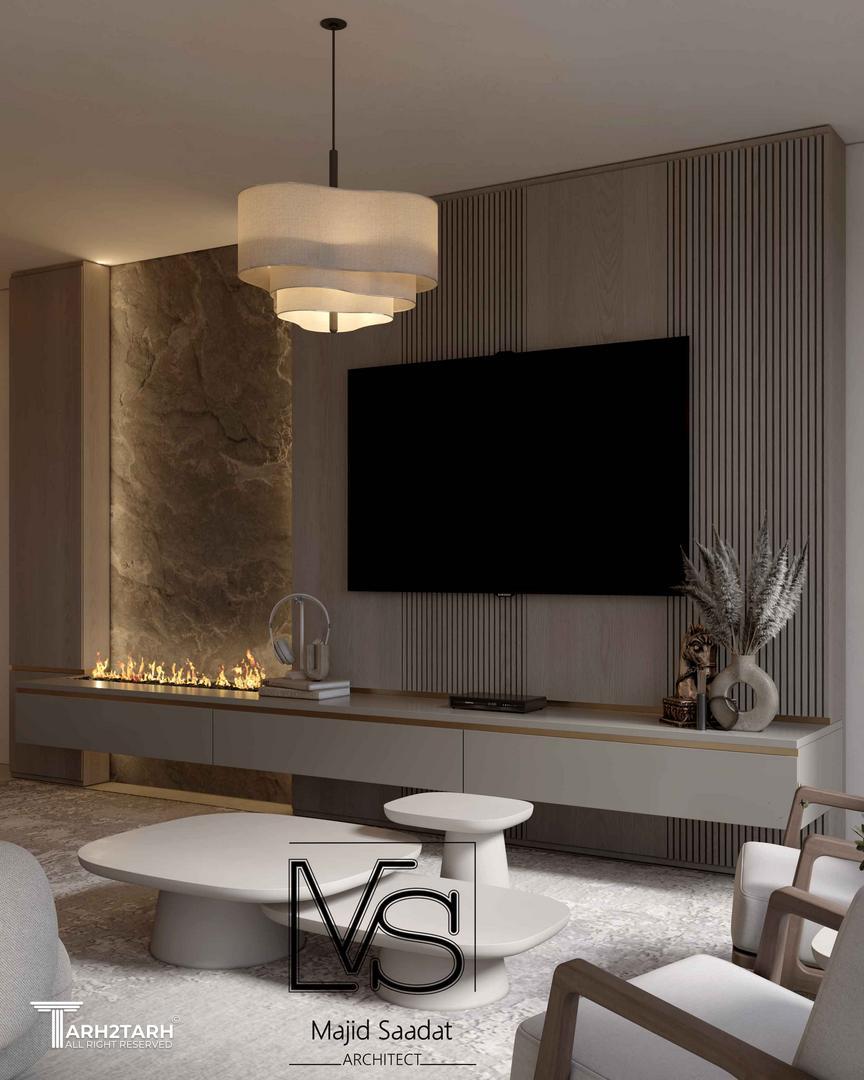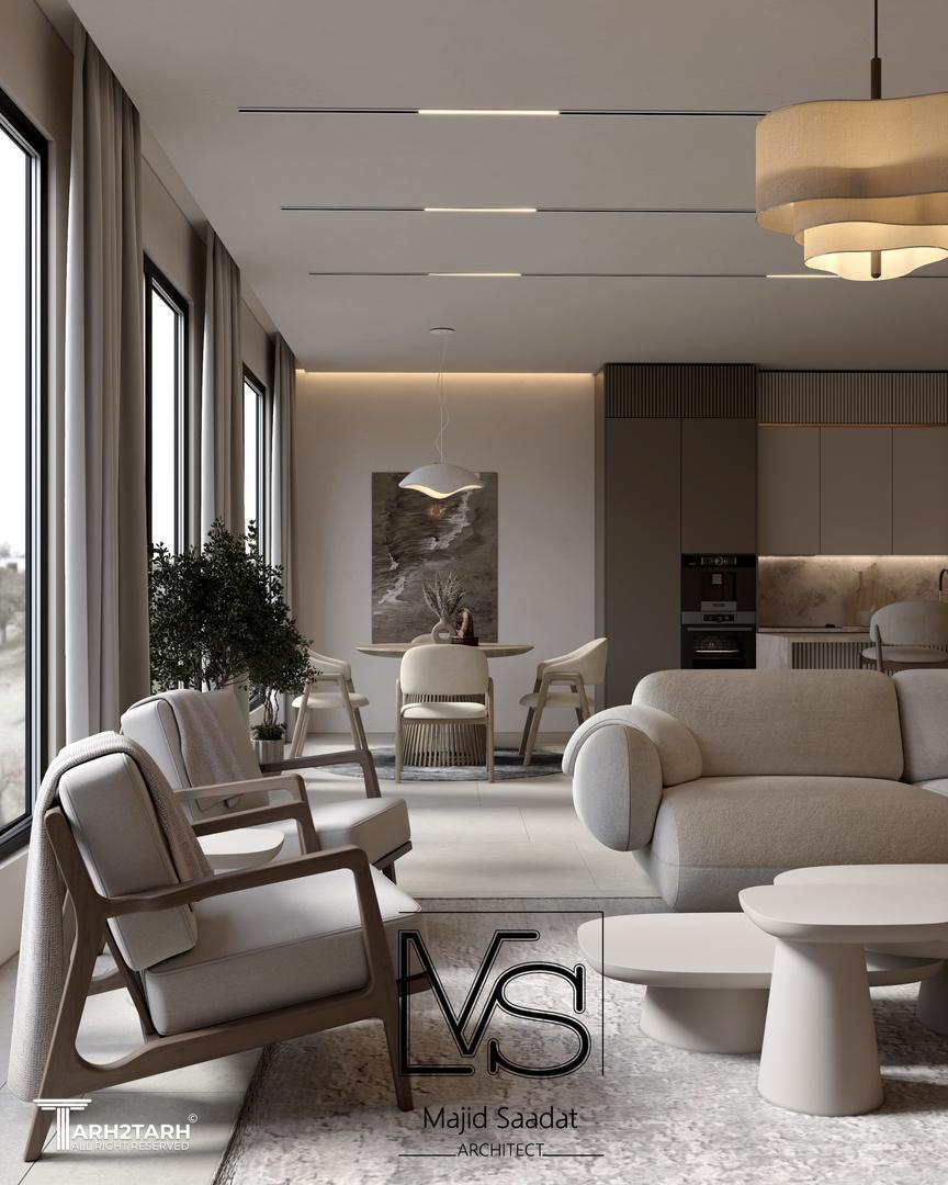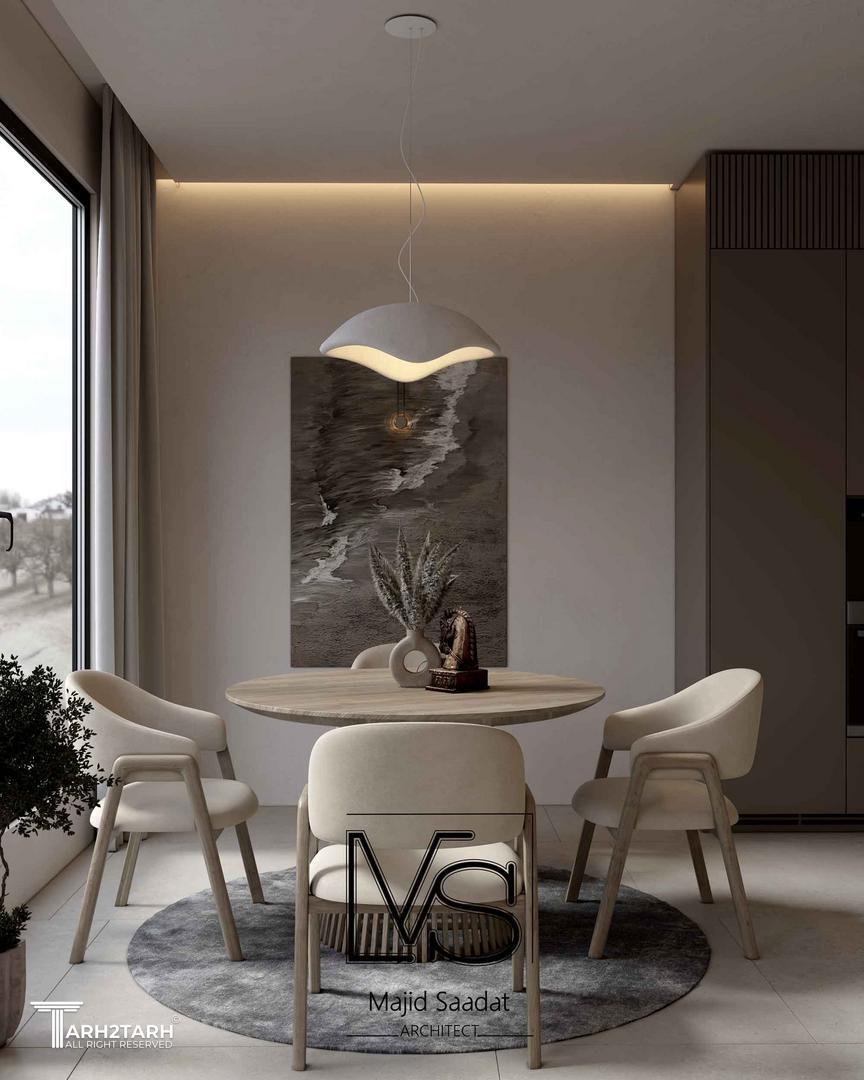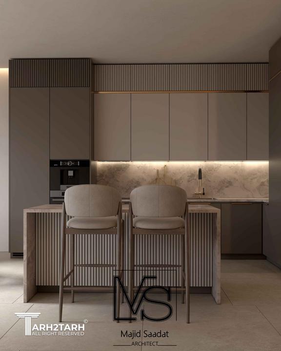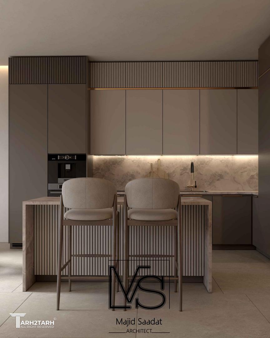 در این طراحی سعی کردم از رنگ های گرم استفاده کنیم و همچنین برای راحتی از مبمان مدرن و راحتی استفاده کردم و به دلیل ارتفاع سقف بلند آشپزخانه، کابینت هارو سرتاسری و تا سقف طراحی شده