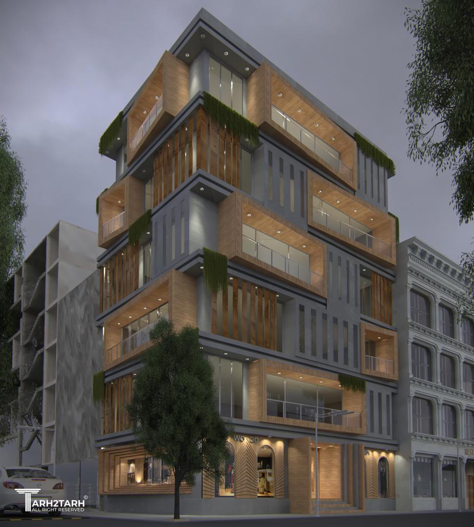 طراحی نمای مدرن ترموو وود _ پهنه تجاری مسکونی _ متریال میکروسمنت ابر و باد _ همکف تجاری 2 طیقه تجاری 2 طبقه مسکونی _ طرح پیشنهادی برای کارفرما _ استفاده از باکس های ترمو کچ _ ارتفاع جان چناه بالکن 1.10 متریال شیشه لمینت نشکن طراح مدل ساز هادی حسین زاده