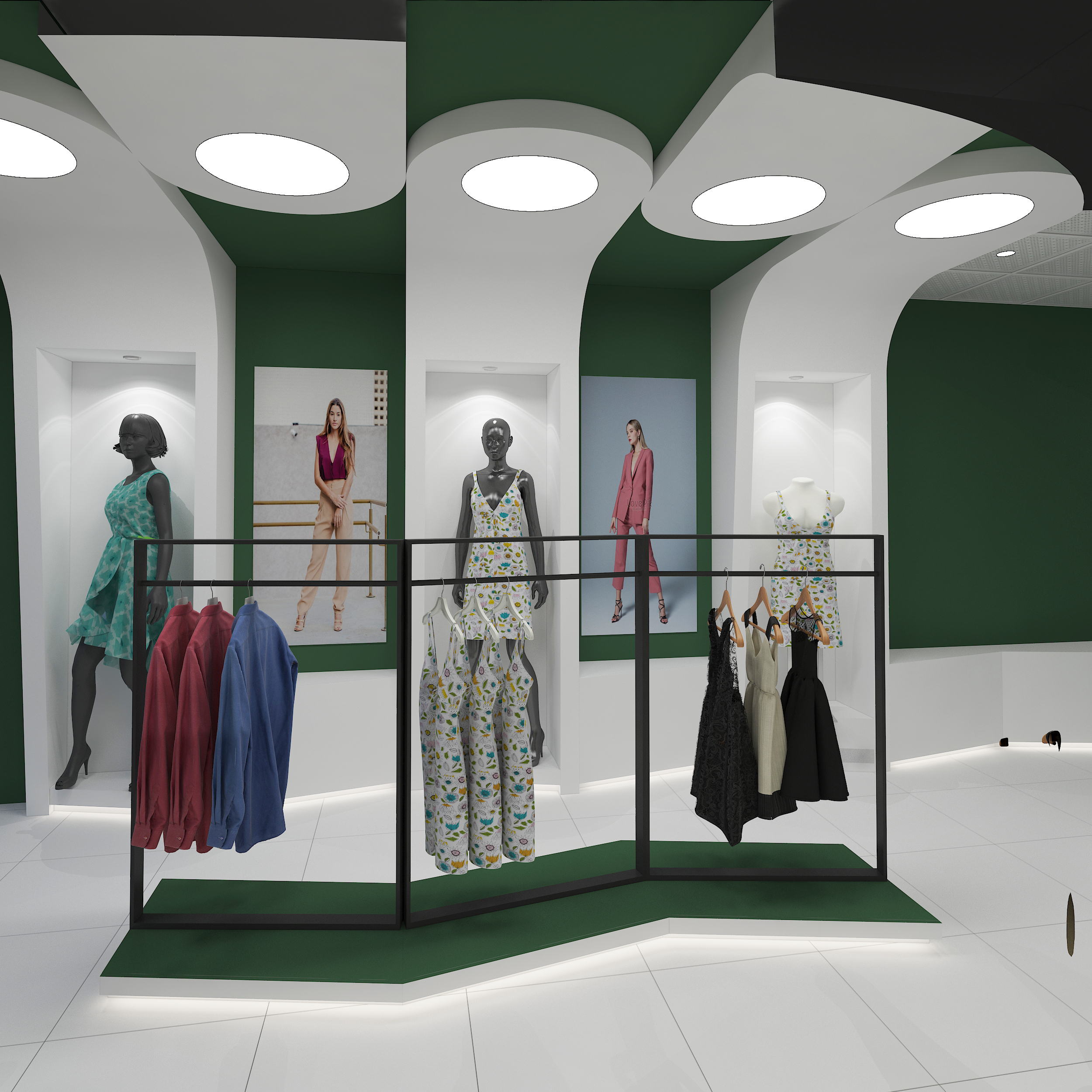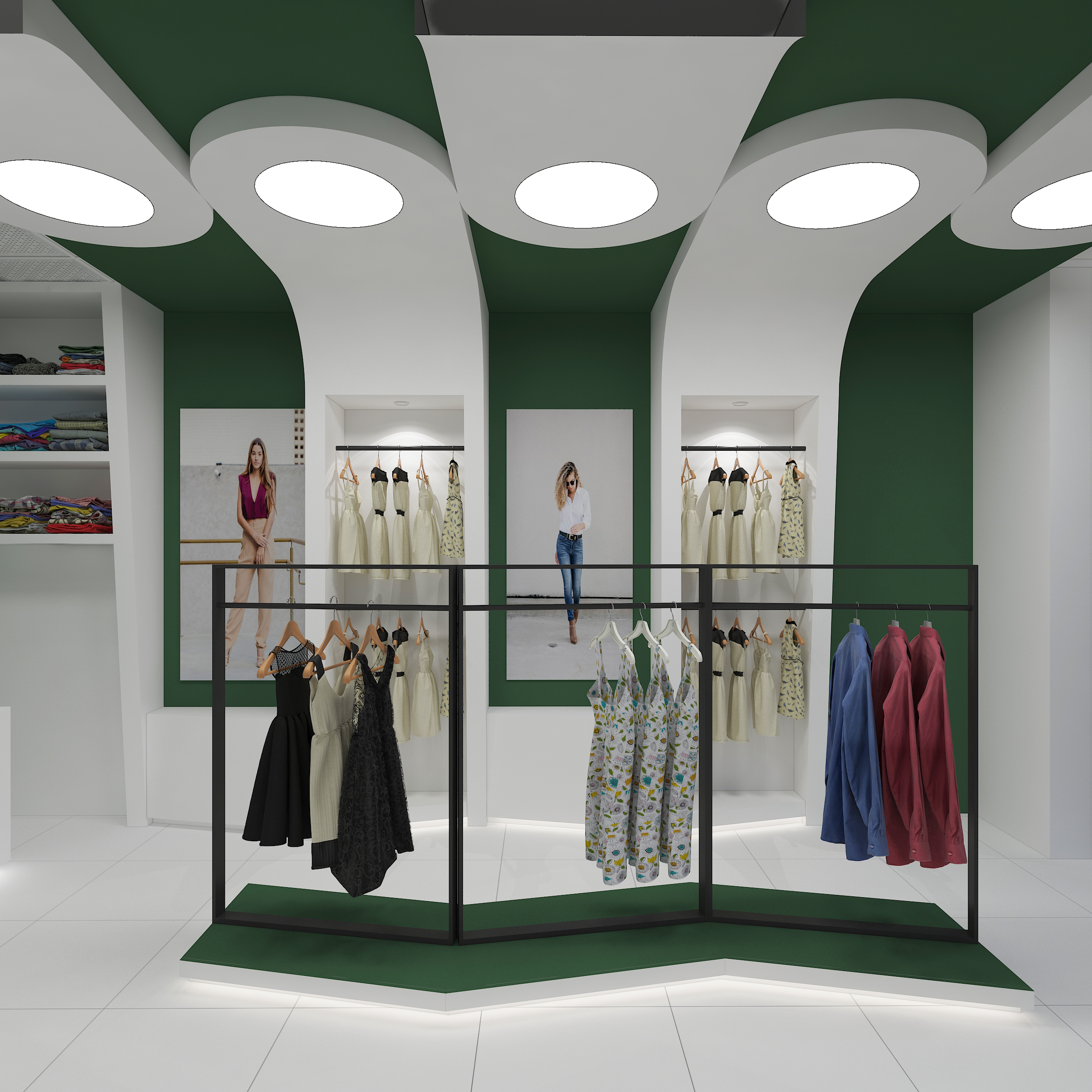 طراحی فضای فروشگاه لباس زنانه. با توجه به متراژ مغازه و همچنین بودجه ی در نظر گرفته شده برای اجرا سعی شد تا با کمترین سازه ها استفاده از رنگ پروژه طراحی شود.