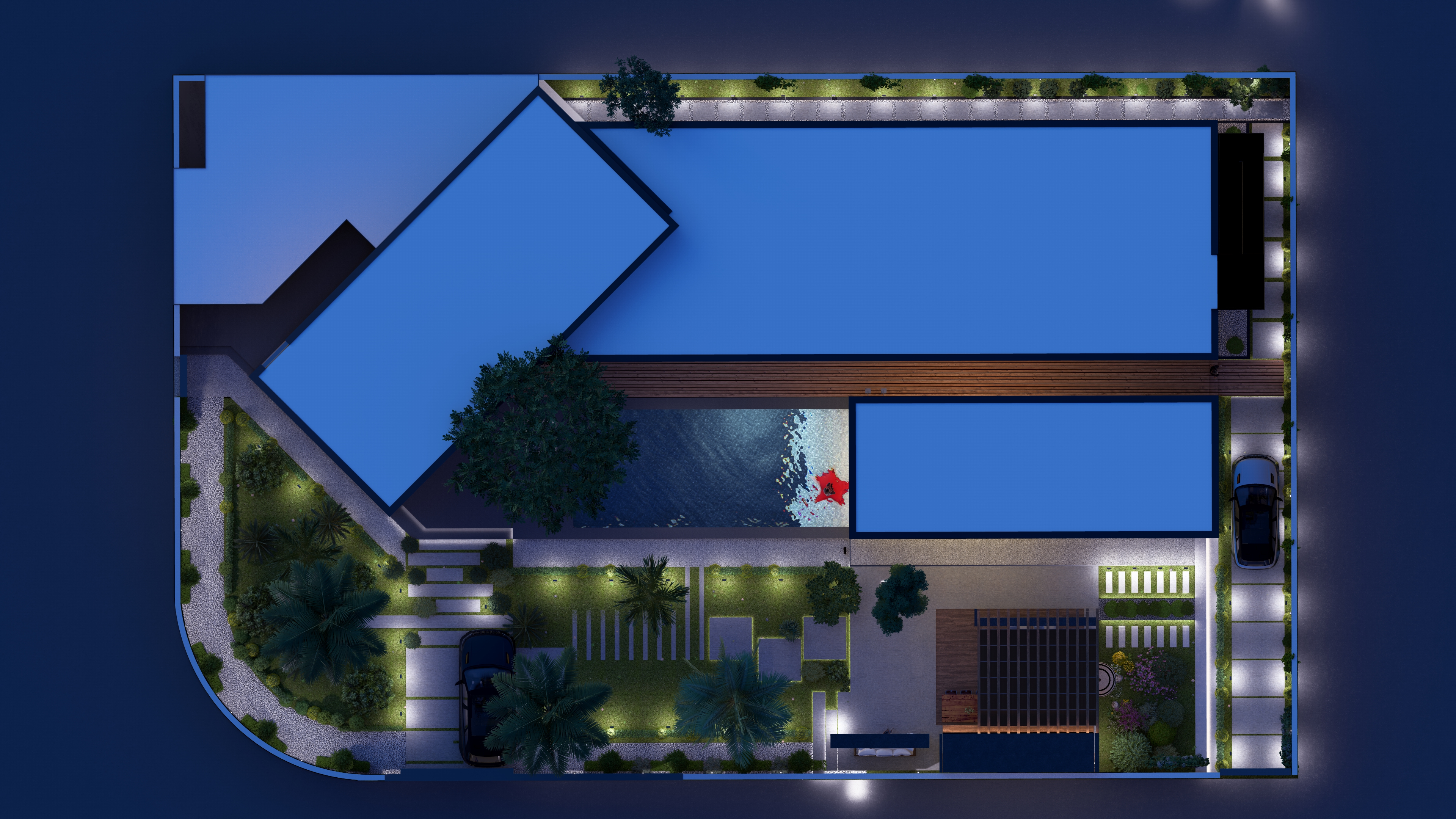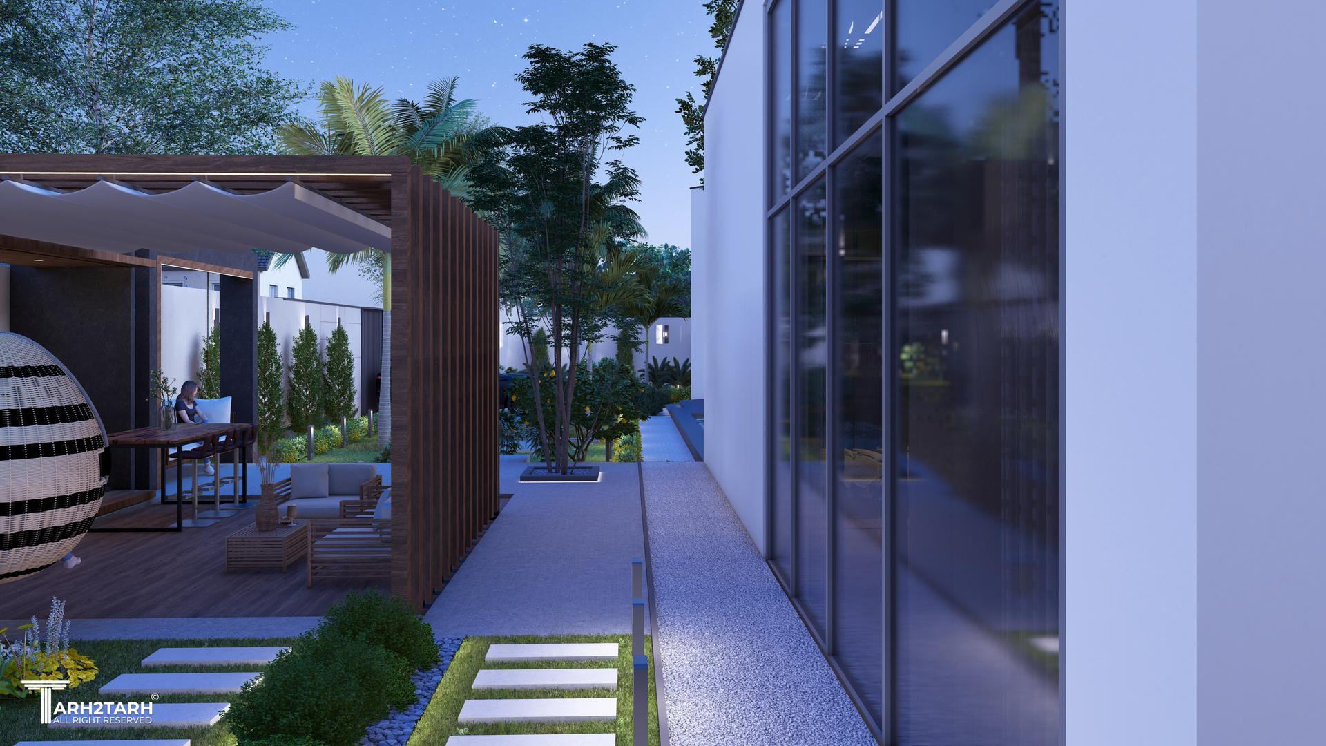 طراحی لندسکیپ این ویلا در رامسر بر پایهی همآهنگی با طبیعت سرسبز و اقلیم مرطوب منطقه شکل گرفته، بهطوری که مسیرهای پیاده، فضاهای نشستن، و گیاهان محلی بهطور طبیعی با ساختمان ویلایی ترکیب شده و تجربهای آرامشبخش و چشمنواز برای ساکنان ایجاد میکند
