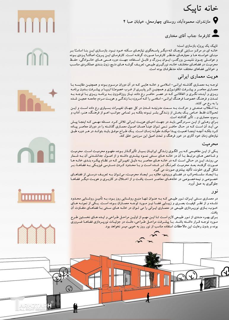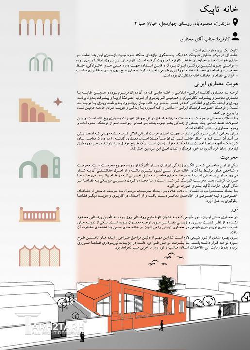 ویلا تاپیک بازسازی خانهی قدیمی یک تاجر سنگ یزدی، با رویکردی مینیمال و سپید، الهامگرفته از معماری کویری و شاخصههایی چون حیاط مرکزی و شومینهی آجری دوطرفه. «تاپیک» ـ به معنای درخشان ـ در این بازآفرینی، هویتی نو یافت.