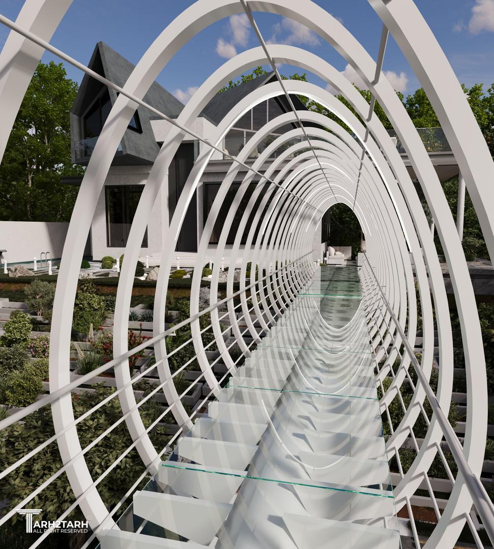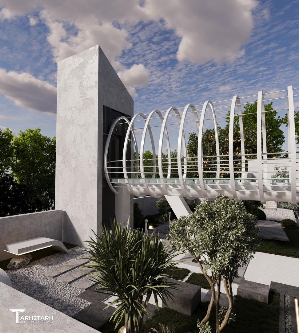 ویلای قلات در شیب بسیار تند دامنه کوه قرار بود اجرا بشه و کارفرما تاکید داشتن که این شیب سبب نشود پدر و مادر سال خورده شون نتونن رفت و آمد داشته باشن، به همین خاطر تلاش کردیم در ابتدای شیب آسانسور قرار بگیره و از طریق پلی که پایه های آن بر روی ستون های بخش سرایداری قرار میگرفت به بالاترین نقطه ویلا ارتباط داشته باشیم