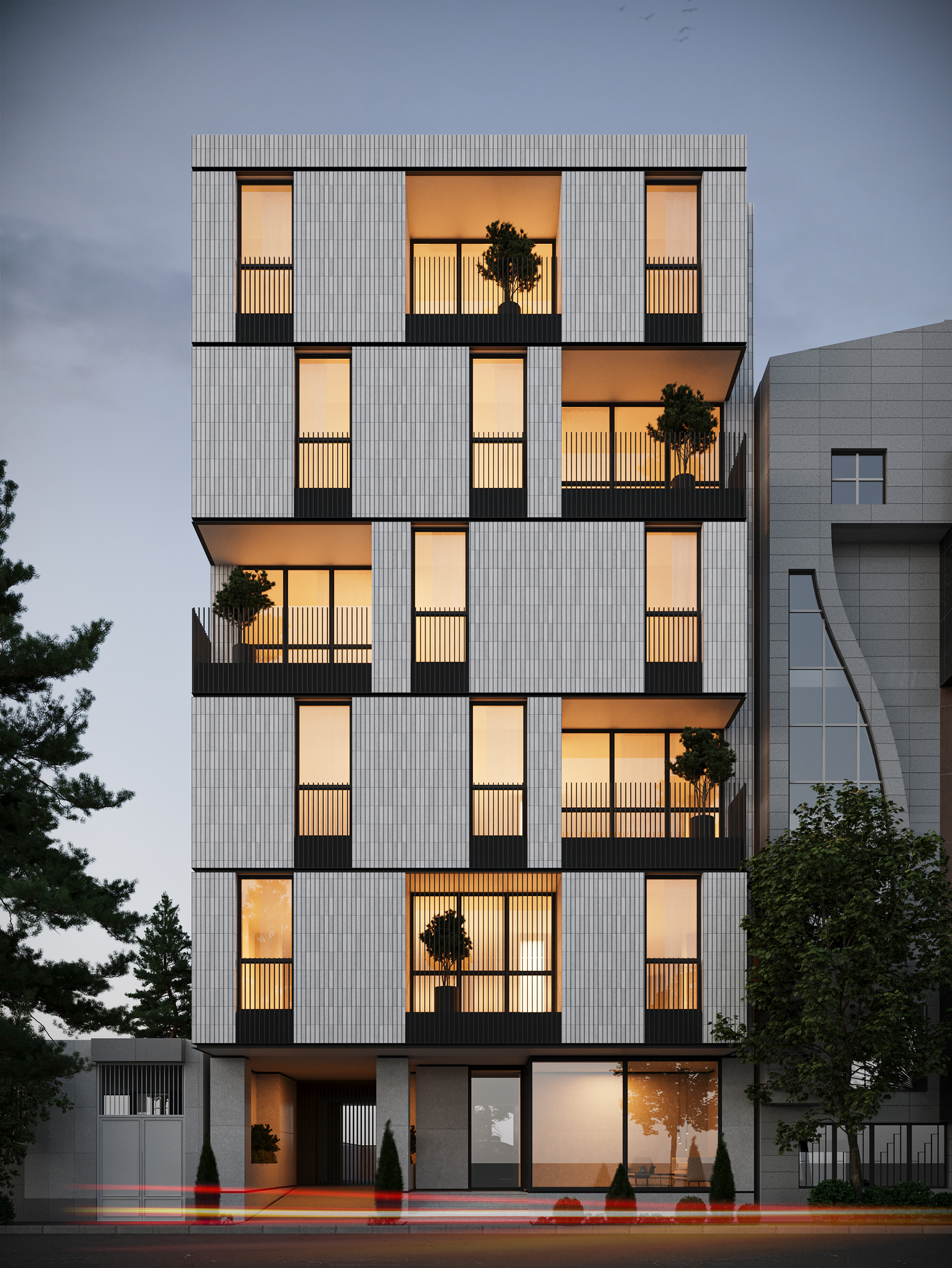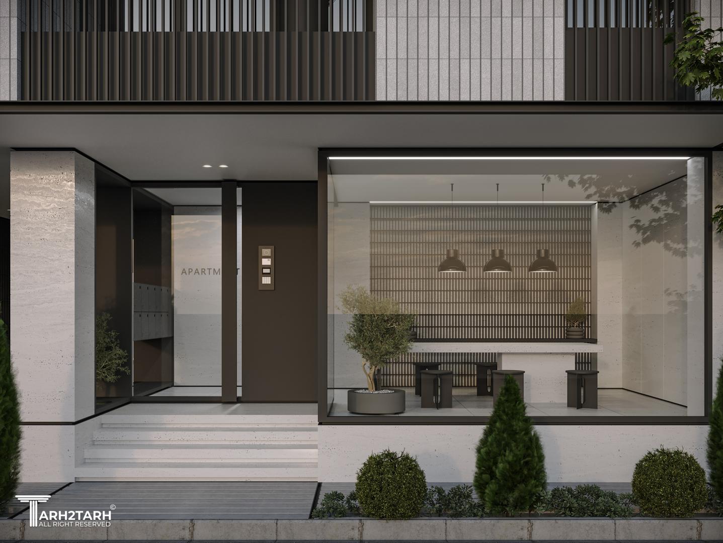 آپارتمان 10 واحدی در محله عظیمیه کرج به صورت واحد های شمالی و جنوبی طراحی شده و فضای لابی به صورت نوعی مرکز محله طراحی گردیده که ساکنین را به گردهمایی های مختلف دعوت می کند.