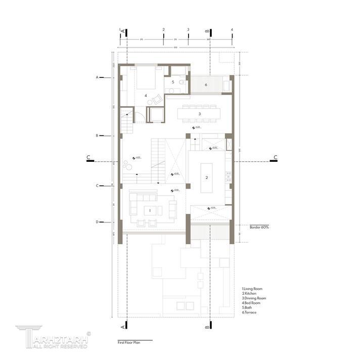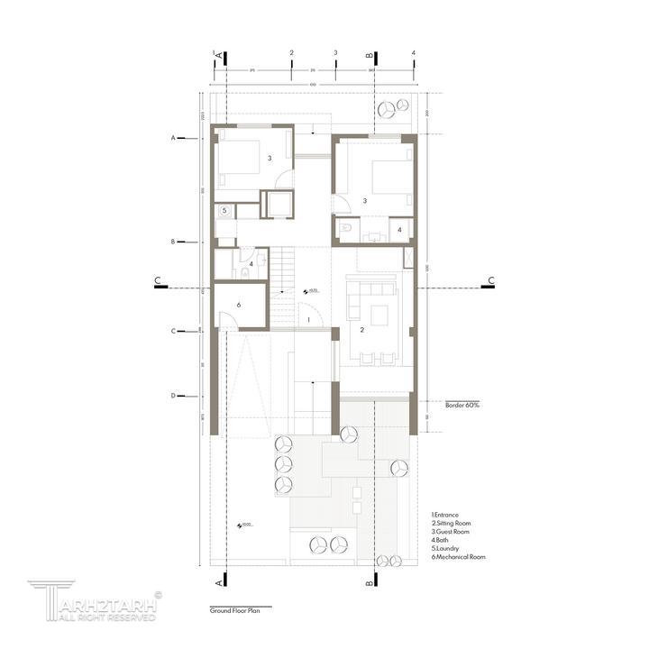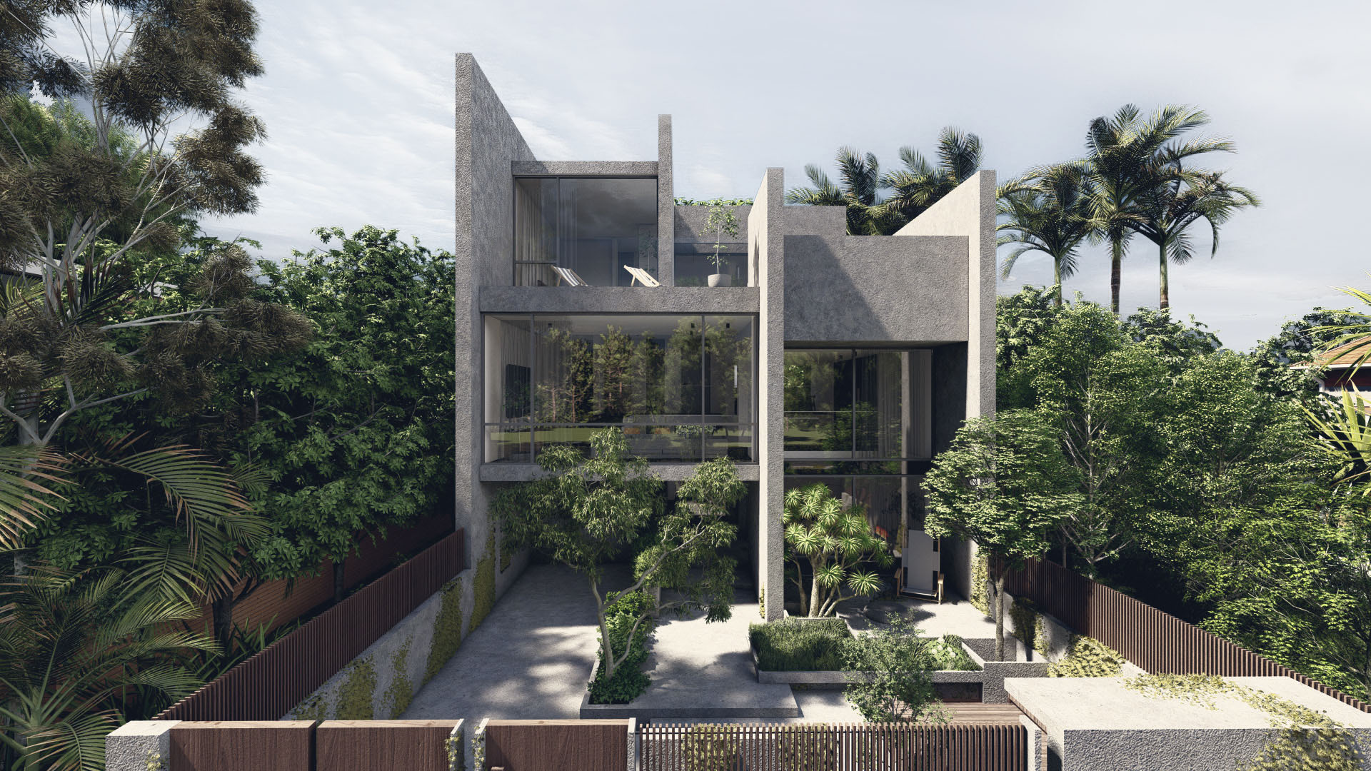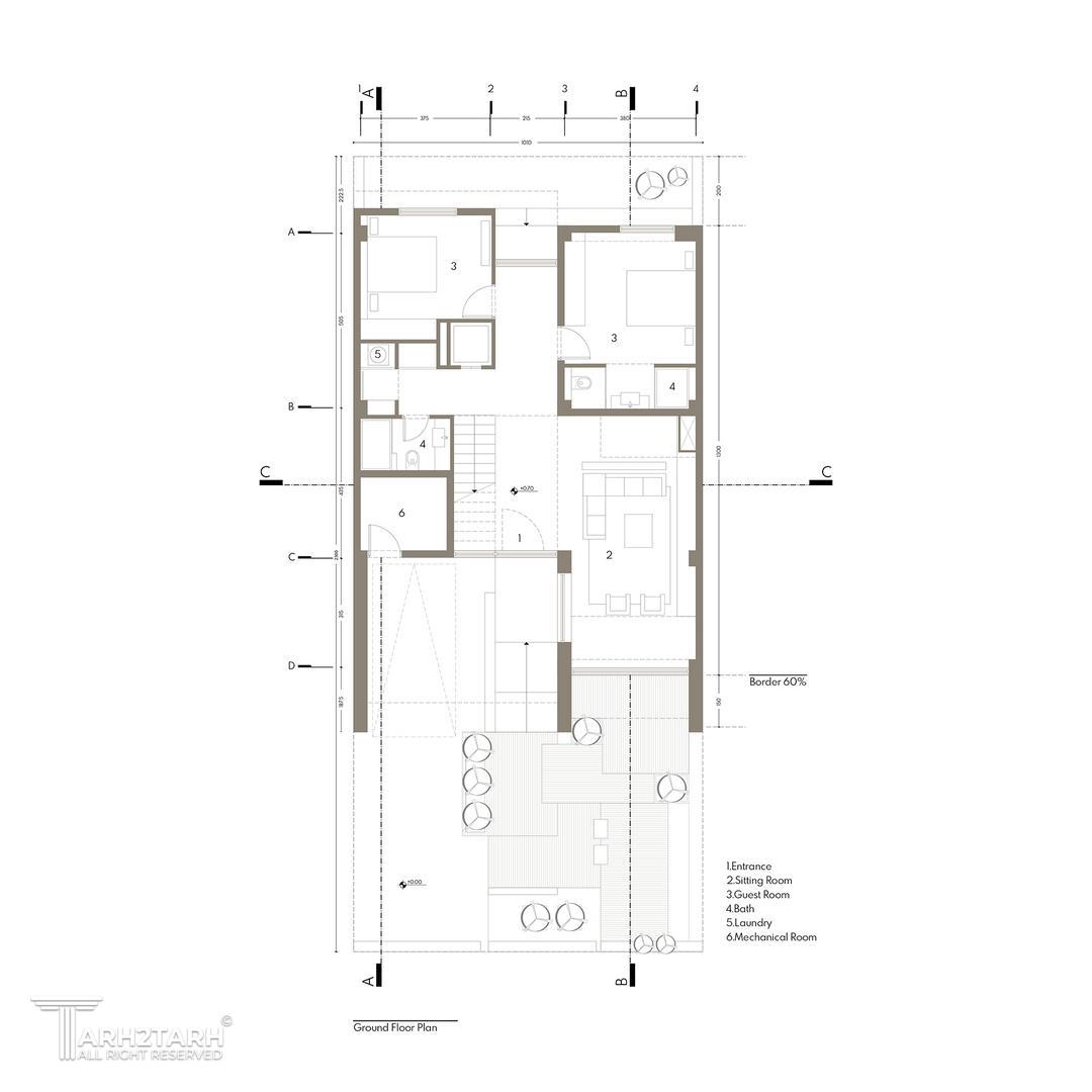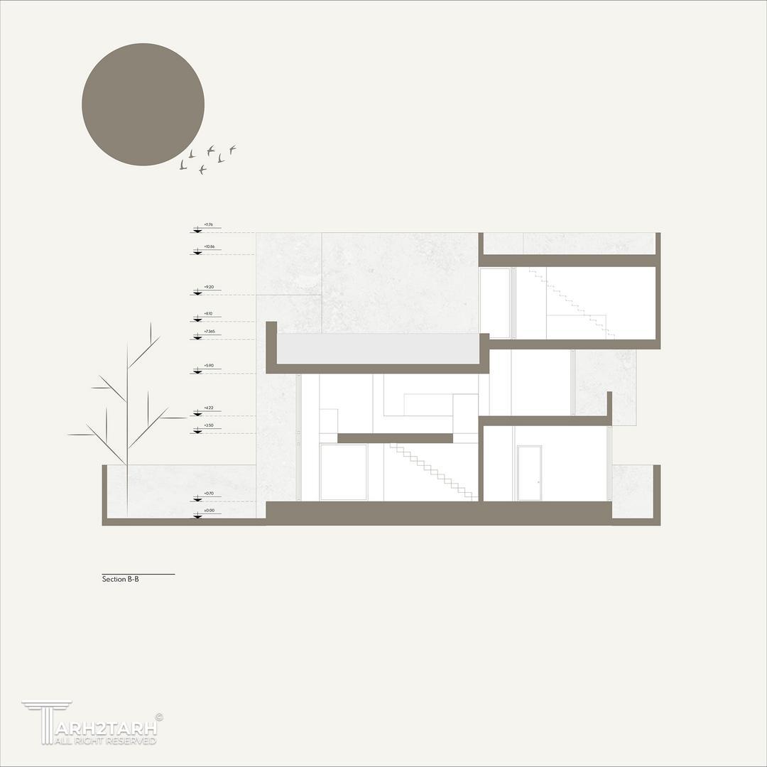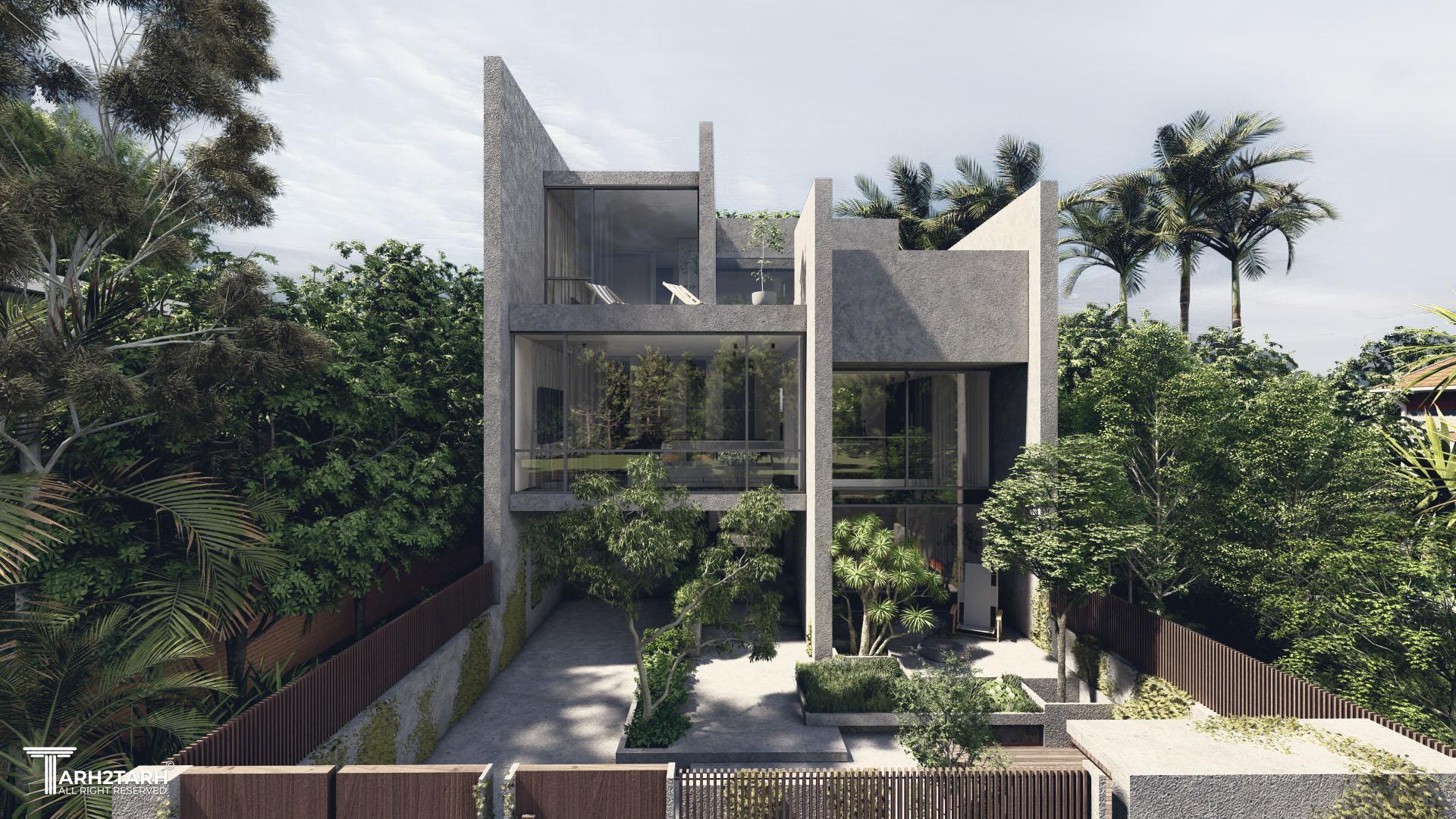 پروژه ویلایی رویان در شهرک ویلا سرا واقع در رویان در زمینی به ابعاد 23در10 متر در سال 1401طراحی شده است . بنا بر نیاز کارفرما این واحد ویلایی در دو طبقه روی همکف طراحی شد و ایده اصلی طراحی بر مبنای نیاز و لایف استایل کارفرما شکل گرفت . وجود دیوارهای قطور و سازه ای که در نما خود رانشان میدهد این امکان را فراهم کرد تا در درون فضایی سیال و پیوسته را تجربه کنیم همچنین قرارگیری استخر در تراس طبقه اخر علاوه بر امکان بهرگیری از منظره زیبا و تجربه فضای استخر خارج از کدهای ارتفاعی متداول این امکان را فراهم اورد تا فضای تفریحی ویلا از بخش خصوصی و زندگی دایم کمی فاصله بگیرد واجازه دهد در آن واحد هم امکان استراحت و زندگی در ویلا باشد و هم تفریح وبازی. فضای اصلی زندگی در طبقه میانی و فضای استراحت و مهمان در طبقه همکف و در ارتباط مستقیم با حیاط شکل گرفت .