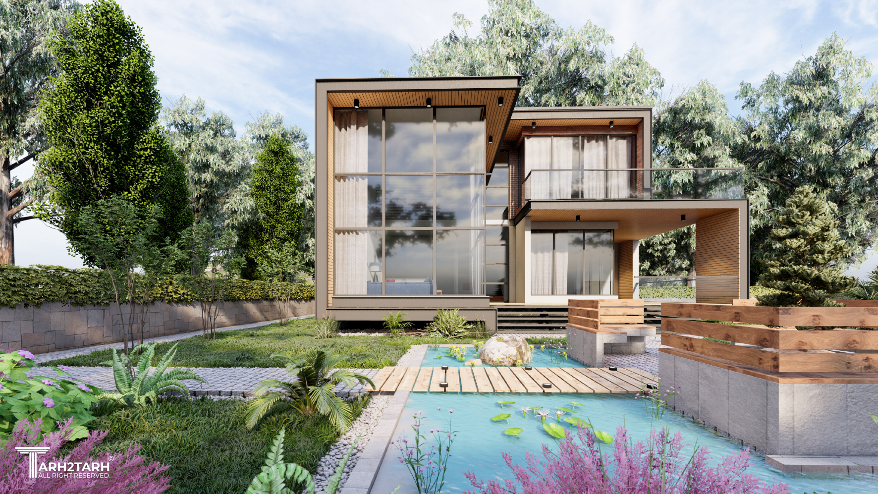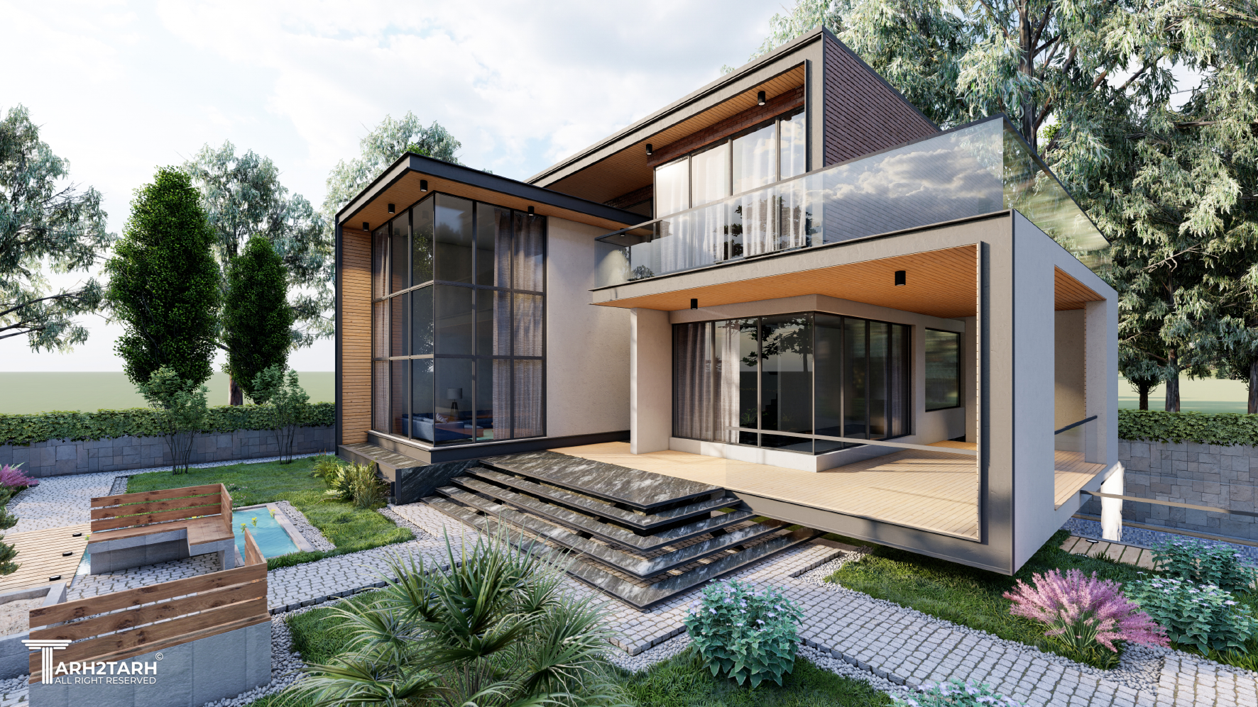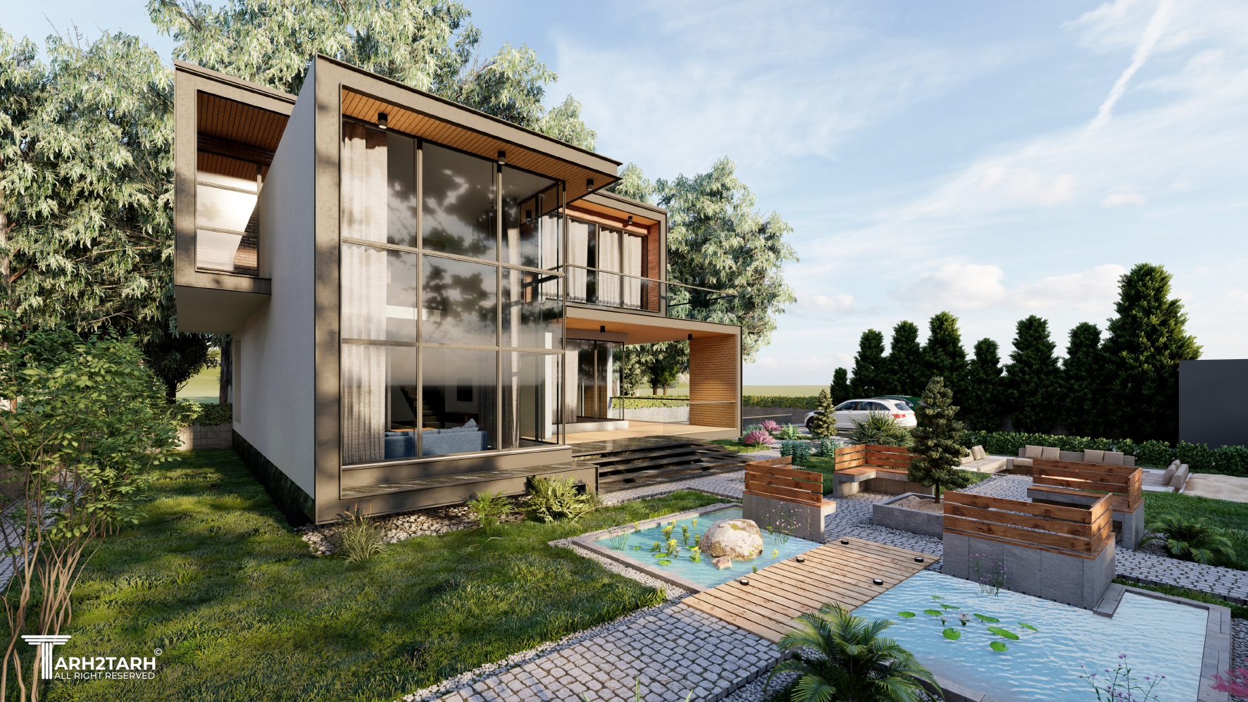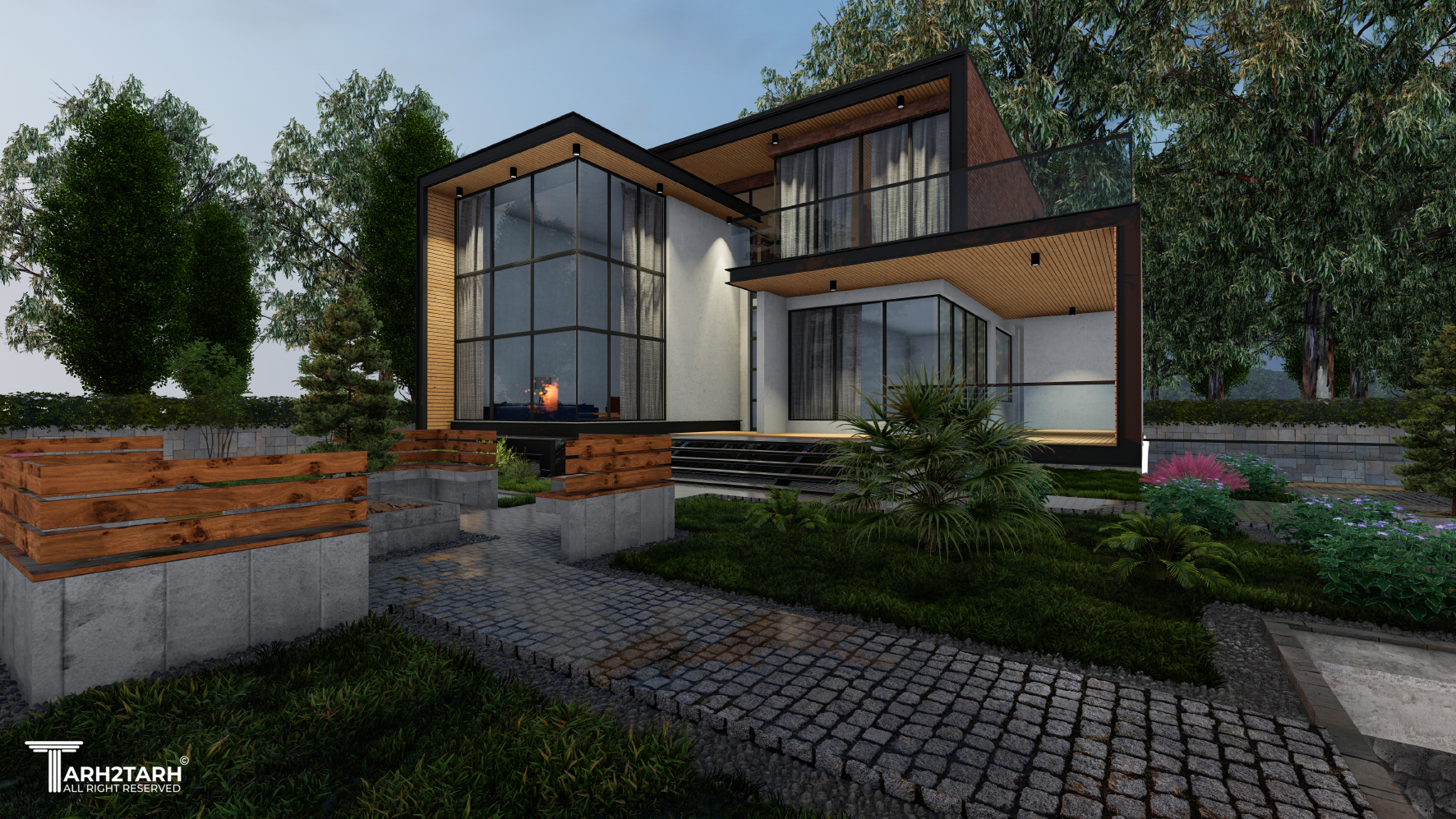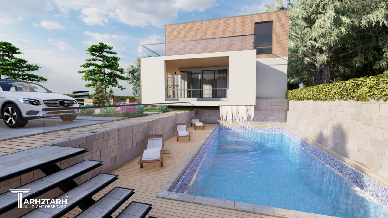صبح، نور از پنجرههای قدی به کف سالن بازتاب پیدا میکند و فضا سرشار از روشنایی و سکون میشود. عصرها، با باز شدن جدارههای شیشهای، حیاط و آشپزخانه یکی میشوند و هوای آزاد و صدای آب استخر حس زندگی را تقویت میکند. شب، نورهای خطی سقف تخت و انعکاس آن روی سطوح شیشهای ظاهری لوکس و آرام به ویلا میدهند.
