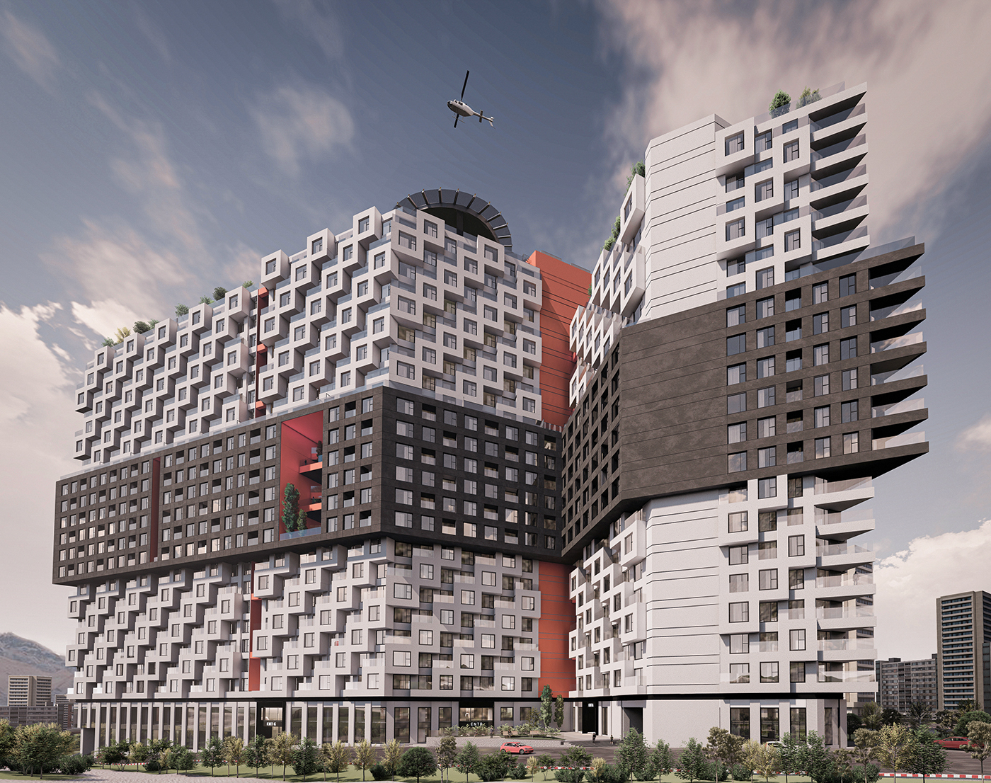 پروژهی دنیز یک مجموعهی مسکونی بزرگمقیاس متشکل از ۶۰۰ واحد است که در ۲۲ طبقه روی همکف، بههمراه دو طبقه خدماتی و نه طبقه زیرزمین در منطقهی اوشان تهران طراحی شده است. واحدهای این مجموعه در دو تیپ فلت و دوبلکس سازماندهی شدهاند. هندسهی کلی پروژه مبتنی بر فرم نامنظم زمین شکل گرفته و ماژولهای بهکاررفته در نمای ساختمان، امکان ایجاد واحدهای تراسدار را فراهم کردهاند.
