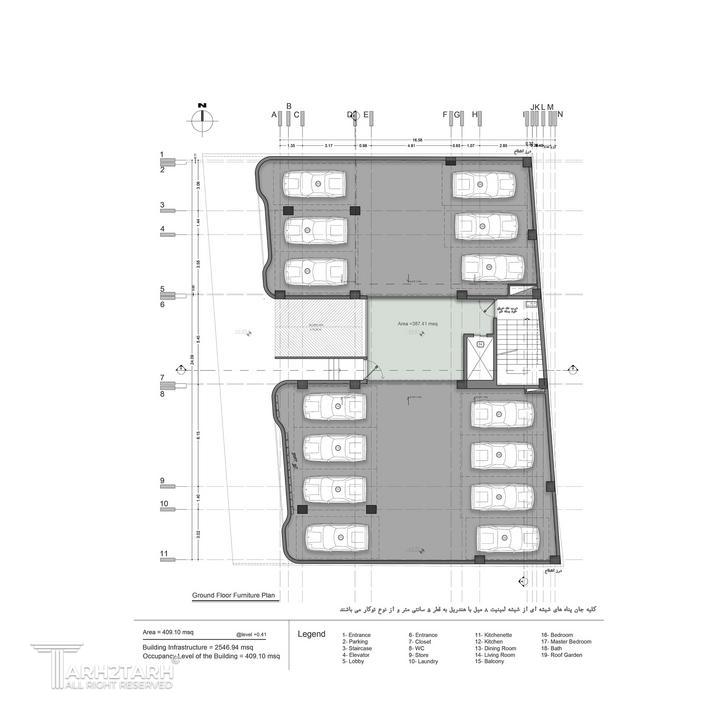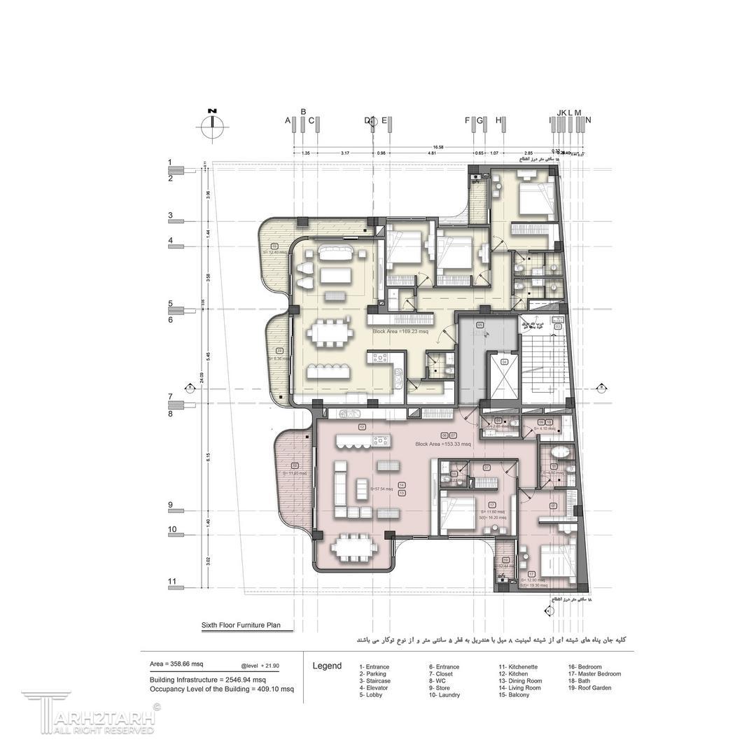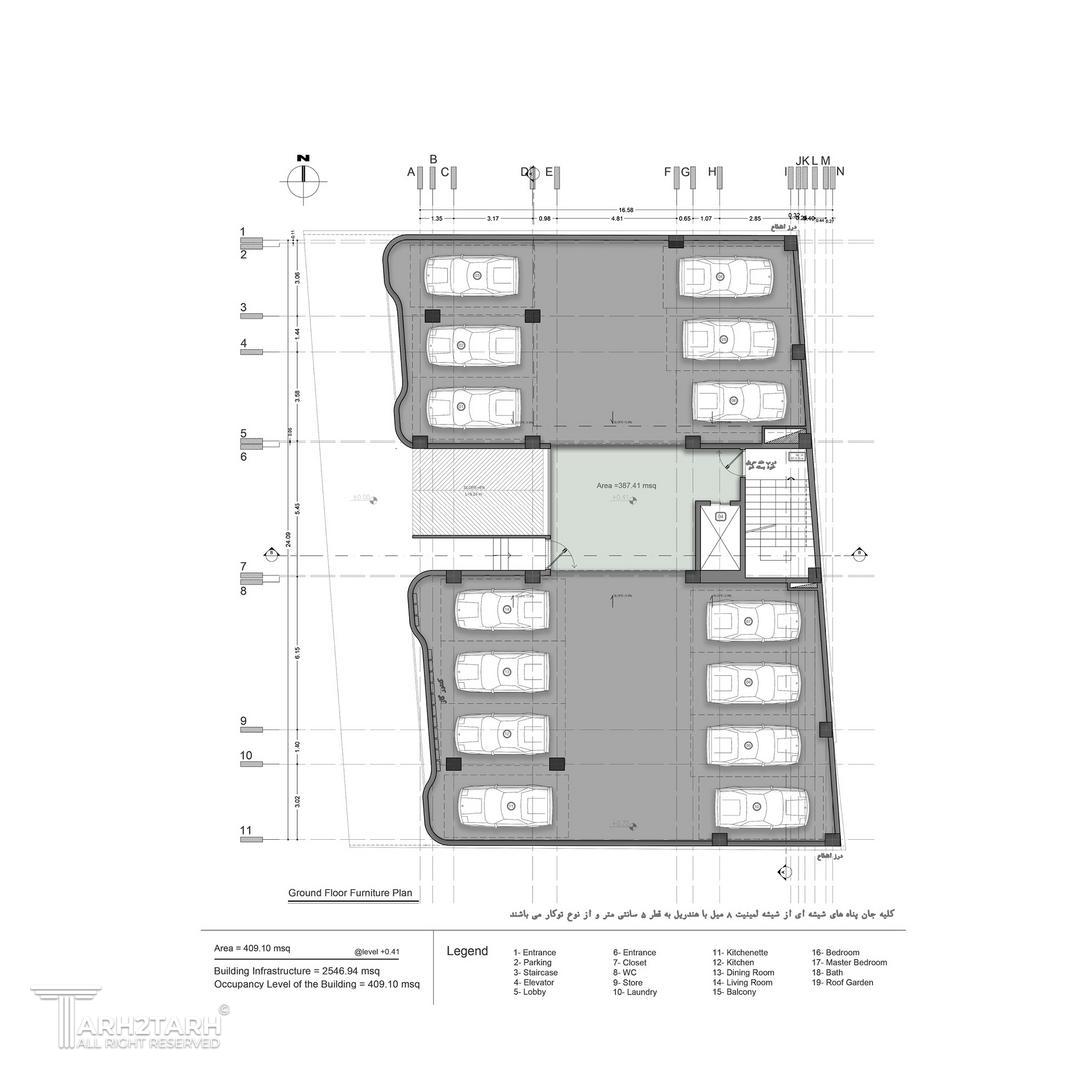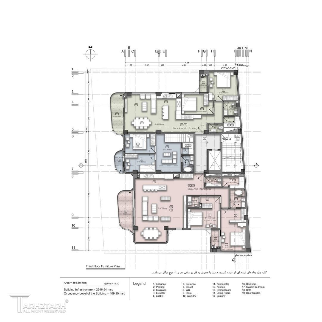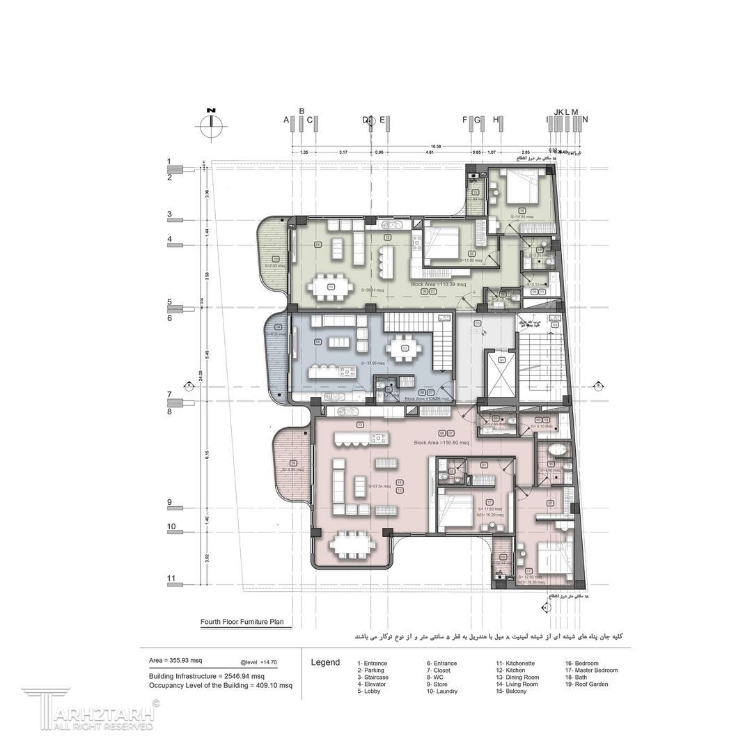 پروژه ویلا آپارتمان ارغوان، در زمینی به مساحت ۴۲۰ مترمربع و پلاک ۴ دریا تعریف شده است. زمین از شمال، جنوب و شرق دارای همسایگی است و از غرب مجاور گذر ۱۲ متری با دید به دریا می باشد و امکان ساخت ۱۰۰٪ در زمین فراهم بوده است. تلاش بر نورگیری مناسب از شمال و جنوب و تامین دید حداکثری به دریا برای کلیه واحد ها، در راس طراحی قرار گرفت. در این راستا به جای استفاده از نورگیرهای مرسوم، با عقب نشینی سه متری از شمال و جنوب در ۸۰ درصد این اضلاع، نورگیری مناسب از این دو ضلع، فراهم شد. در مرحله بعد کلیه کنسول های ضلع غربی، با عقب نشینی بیشتر در دیواره جداره، به فضای بالکن اختصاص داده شد تا در ضمن تعریف فضای نیمه باز در هر یک از واحدها، با چرخش دیوارها به سمت دریا، دید حداکثری به دریا از این تراس ها و فضاهای داخلی مرتبط با ان ها فراهم گردد. در این مرحله پیشنهاد خالی کردن کف در میانه تراس هر یک از واحدها، علاوه بر حفظ حریم بیشتر برای کاربر در فضاهای نیمه باز، تجربه فضایی متفاوت به لحاظ ارتفاعی را نیز به دنبال داشت. این پروژه در همکاری با "شرکت مشاور راستین سازه" انجام شده است.