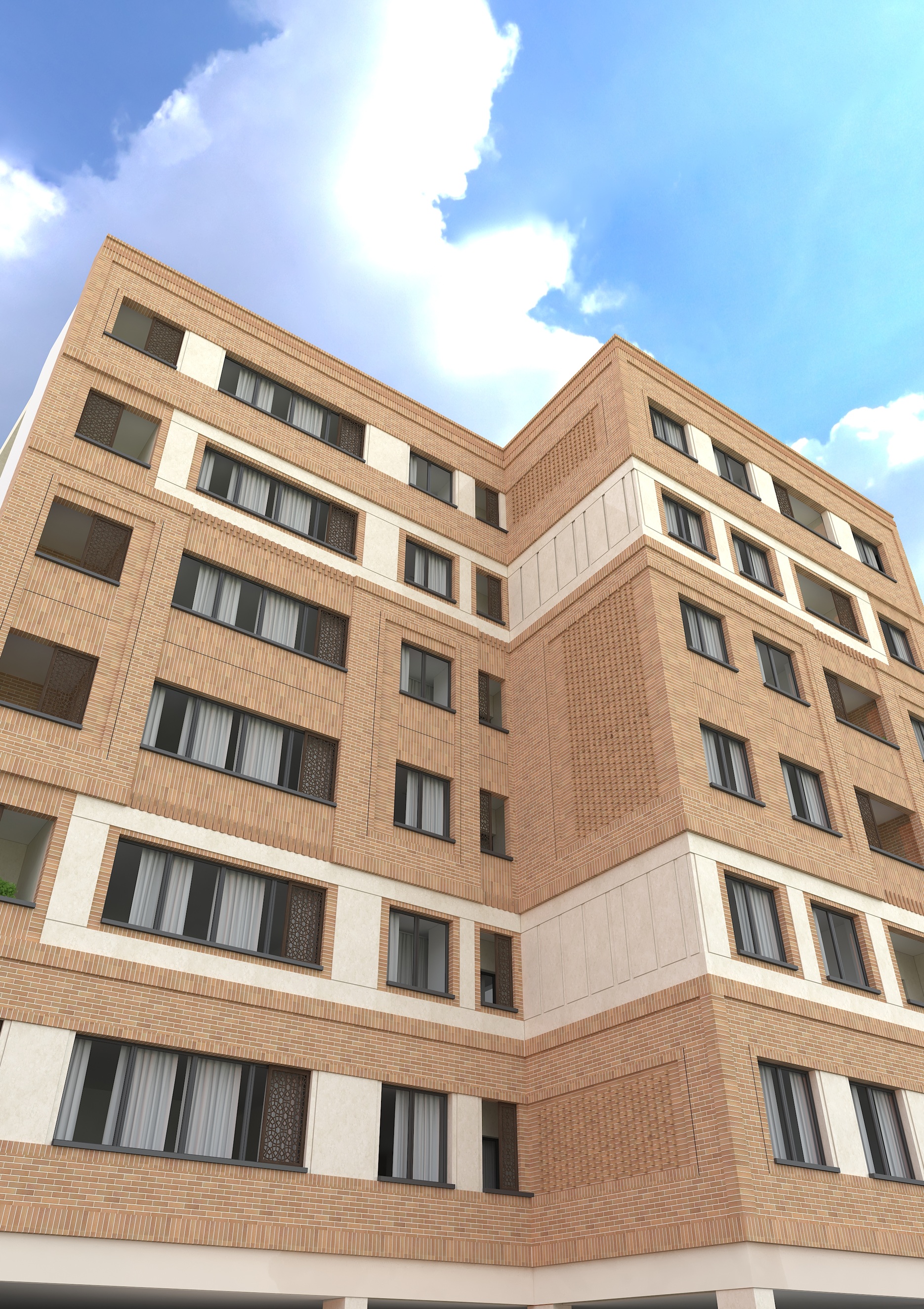 با توجه به قرارگیری پروژه در قلب تهران قدیم سعی بر استفاده از آجر بعنوان متریال اصلی-که غالب متریال سنتی آن محدوده است- و همچنین المانی از جنس چوب شده است