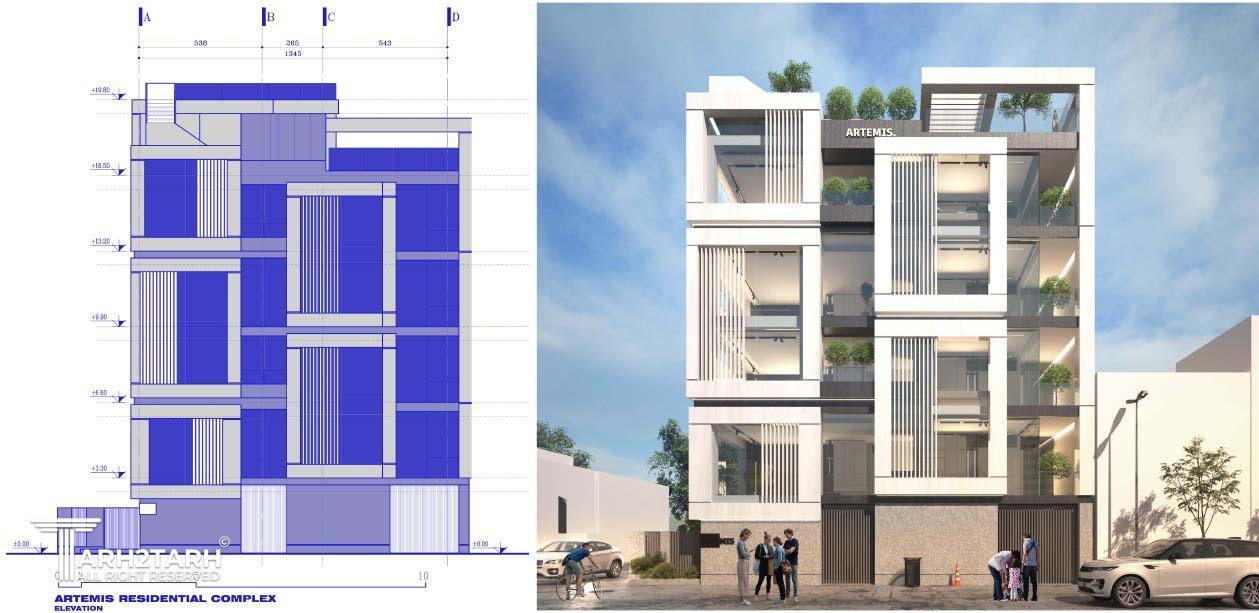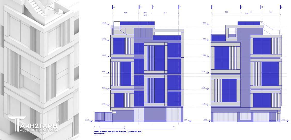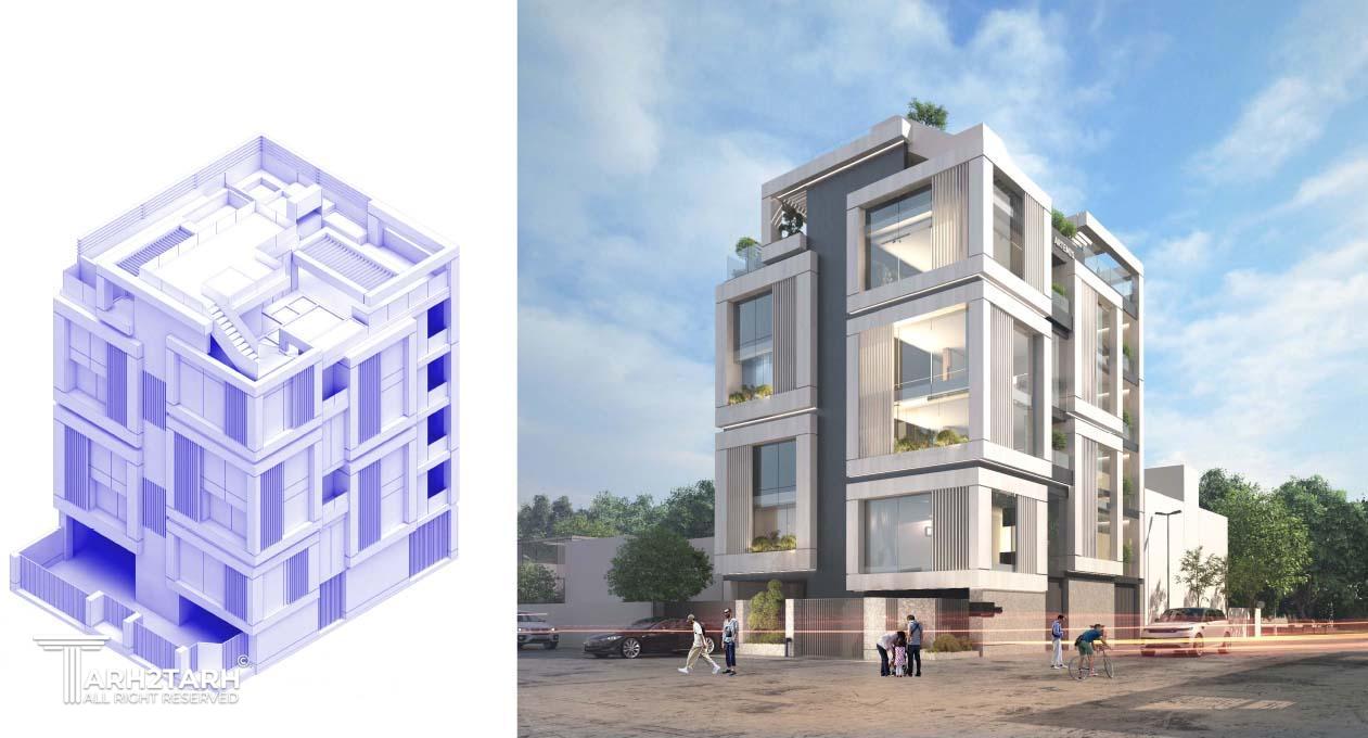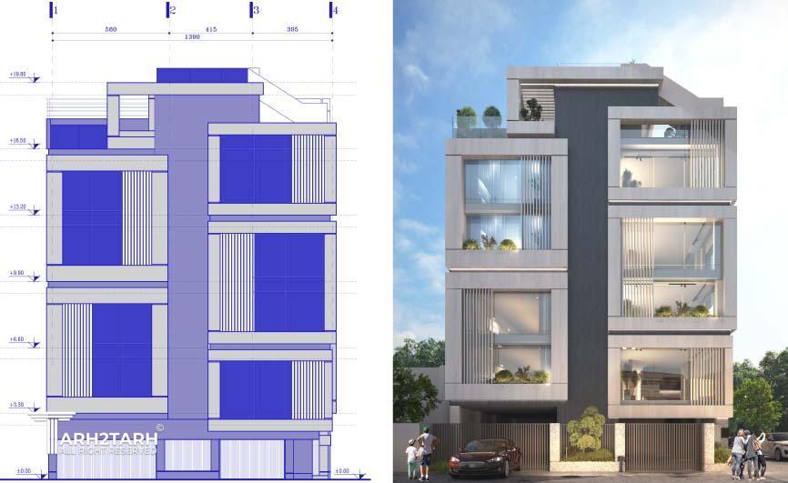 نمای ساختمان با توجه ابعاد آپارتمانها بسیار شفاف میباشد