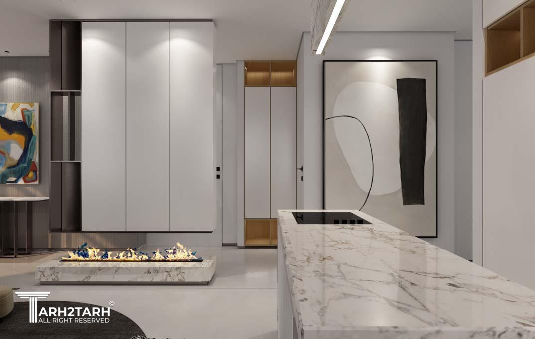 دیوار جلوی ورودی با وجود بهبود بصری لیکن با توجه به ابعاد پلان مشکل ساز شده است.
