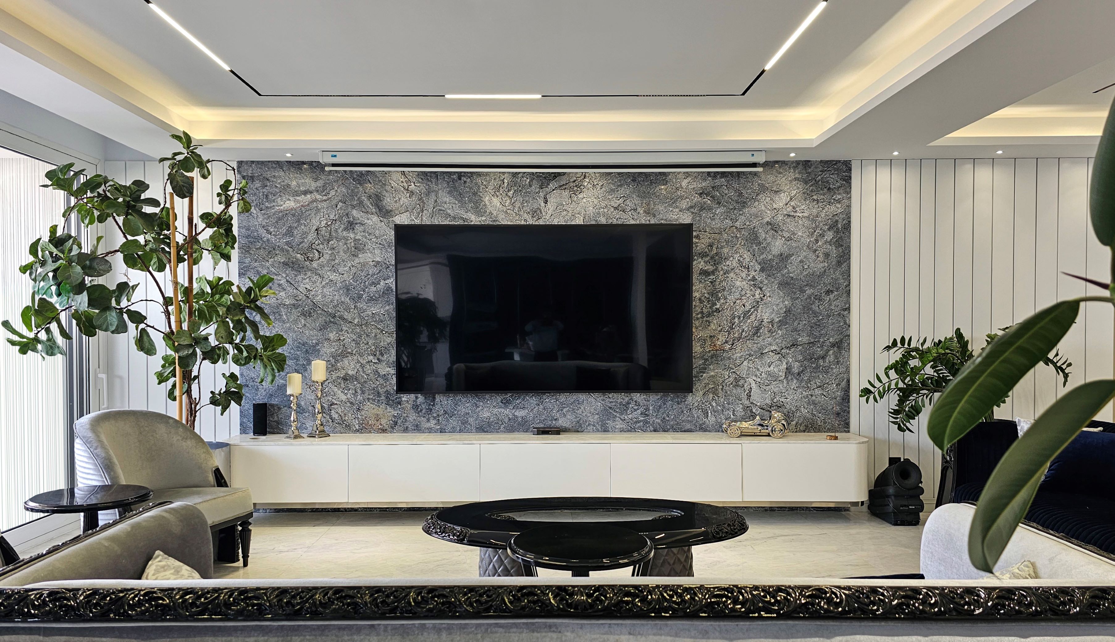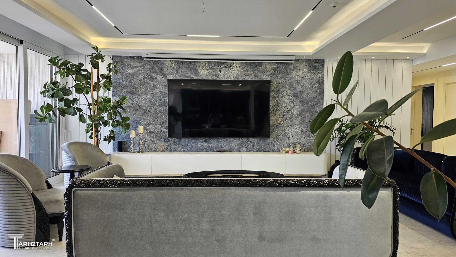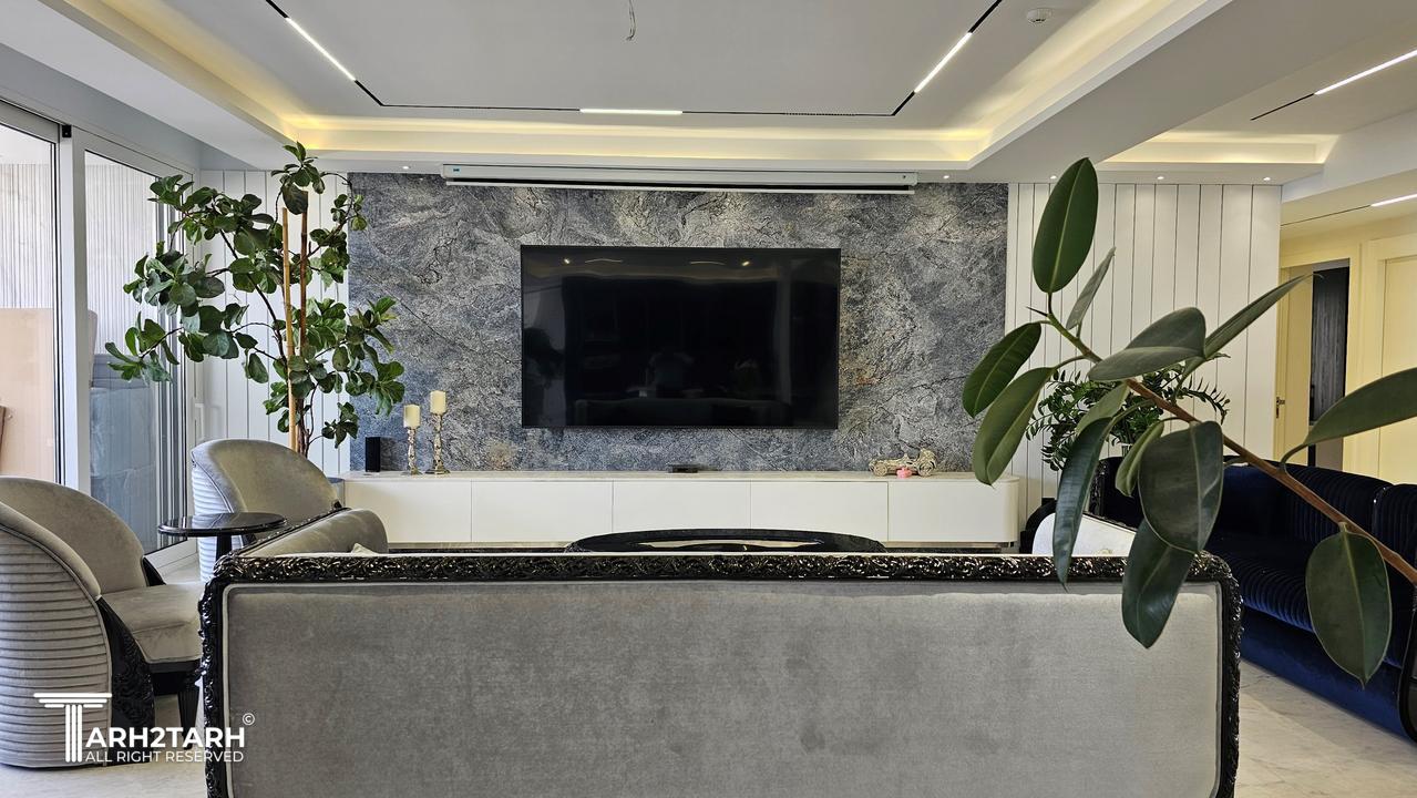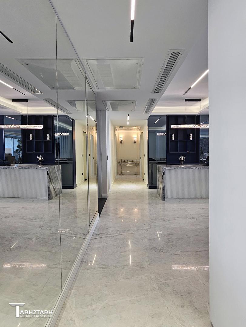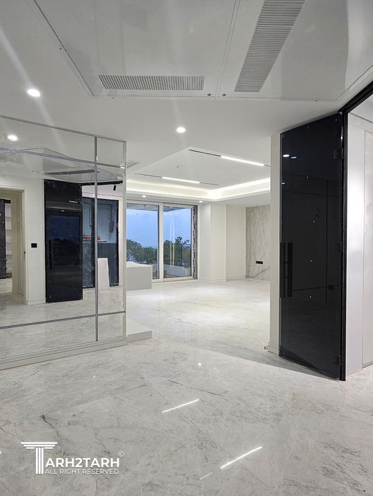 پروژه دو واحد مجزا که هرکدام از واحدها ۱۸۰ متر مربع بود را به یک واحد یکپارچه ۳۶۰ متری درآوردیم و طراحی پروژه به شکل هدفمند و مفهومی بر اساس برنامه فیزیکی خواسته کارفرما صورت پذیرفت. و تمامی تجهیزات برقی و تاسیساتی و بنایی را به شکل واحد و هماهنگ مطابق طراحی بروزرسانی کردیم و در نهایت دکوراسیون خریداری و چیدمان صورت پذیرفت