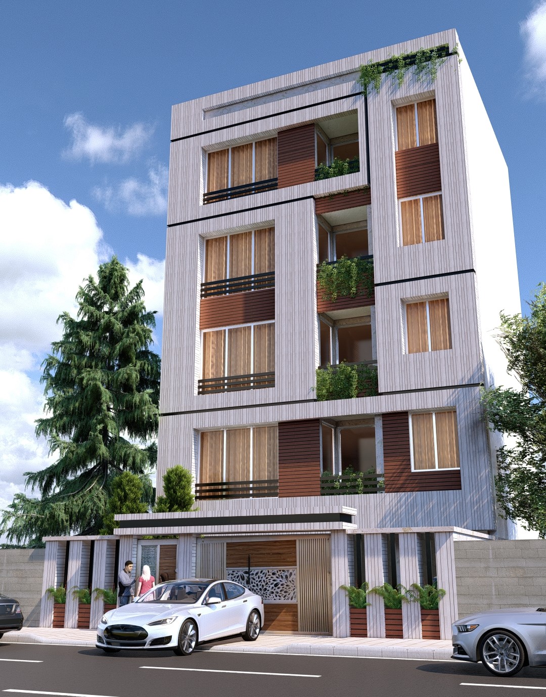 این ساختمان با هدف خلق فضایی آرام، روشن و پویا برای خانوادههایی طراحی شده که به دنبال کیفیت زندگی بالا در محیطی شهری هستند. ترکیب مصالح گرم (چوب) و سرد (آجر سفید) در نما، حس تعادل بین طبیعت و شهر را القا میکند.