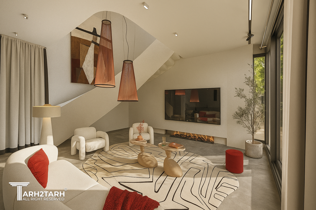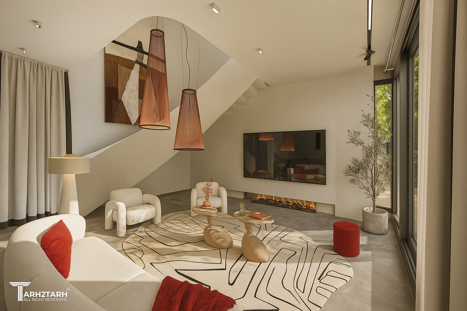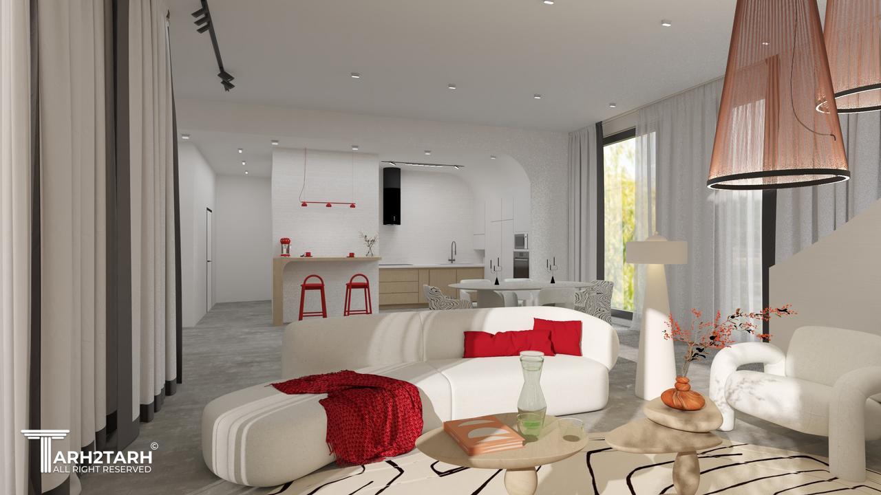 این پروژه نمایی از یک طراحی معماری مدرن با رویکردی مجسمهگون و سیال را نشان میدهد. فرم بنا از ترکیب حجمهای منحنی و خطوط افقی شاخص شکل گرفته و ظاهری پویا و در عین حال آرام دارد.