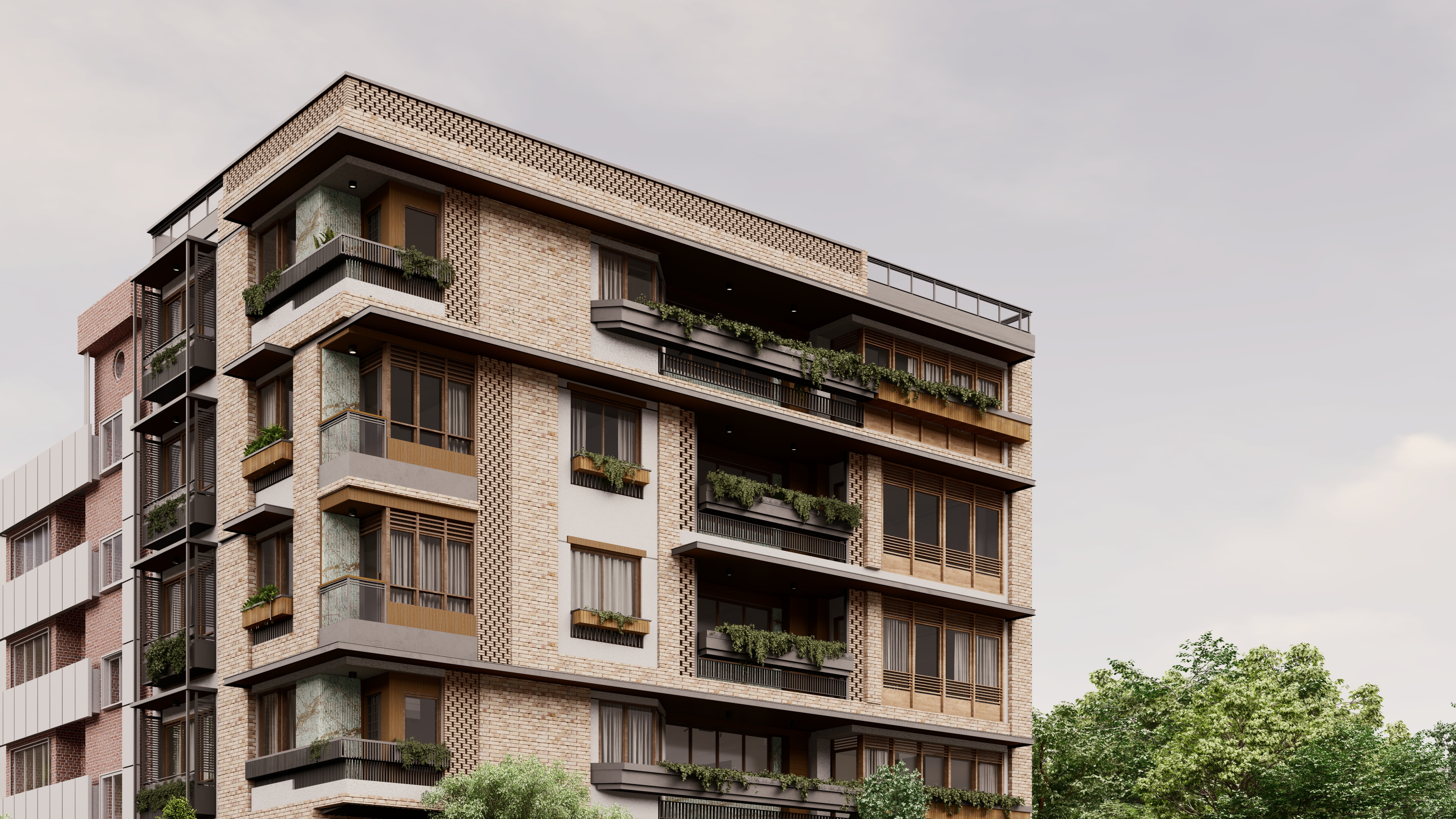 پروژه به خواست کارفرما و با توجه به موقعیت ملک به صورت پست مدرن طراحی گردید. اولویت طراحی، توجه حداکثری به پوشش گیاهی و کیفیت فضایی بود
