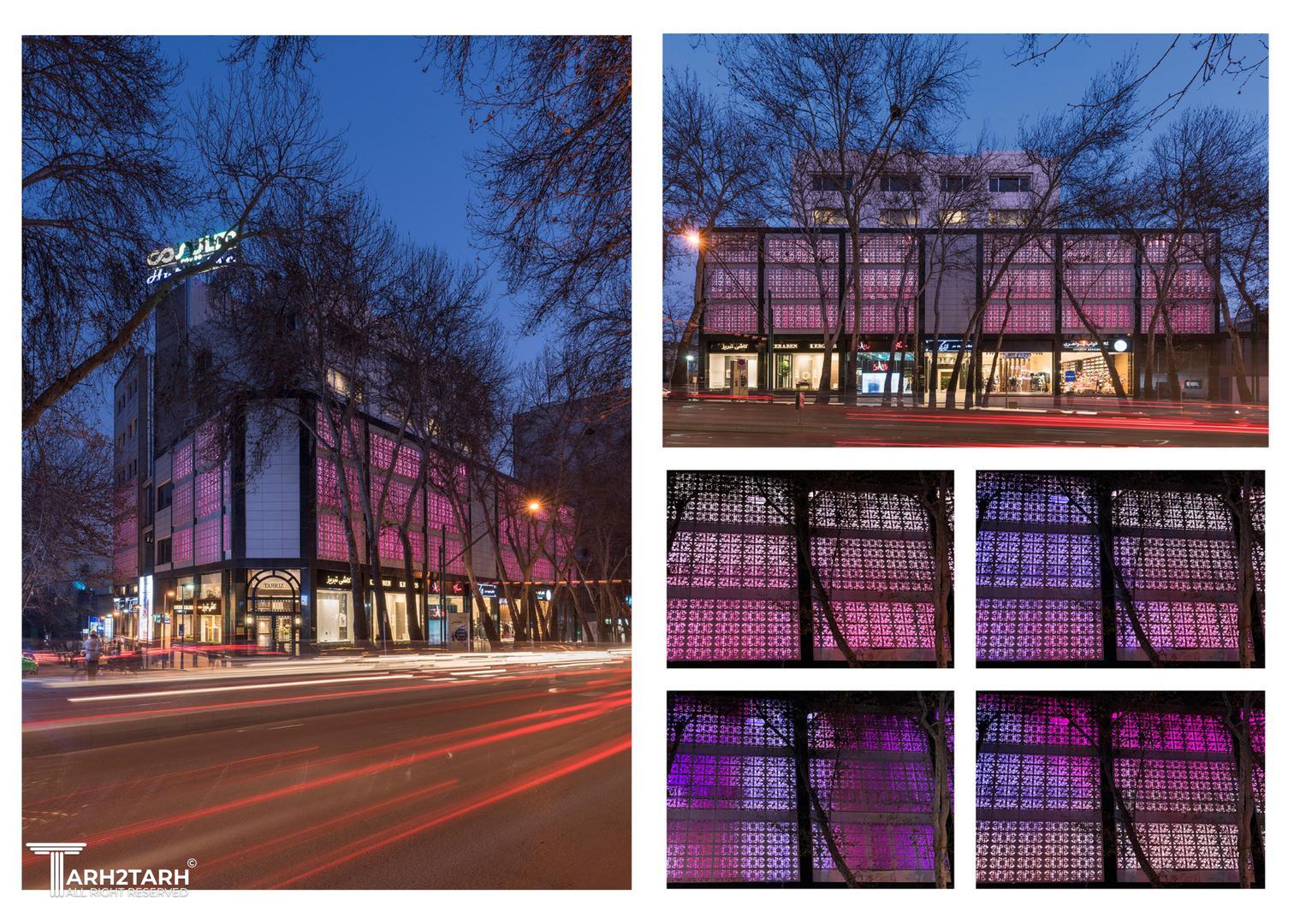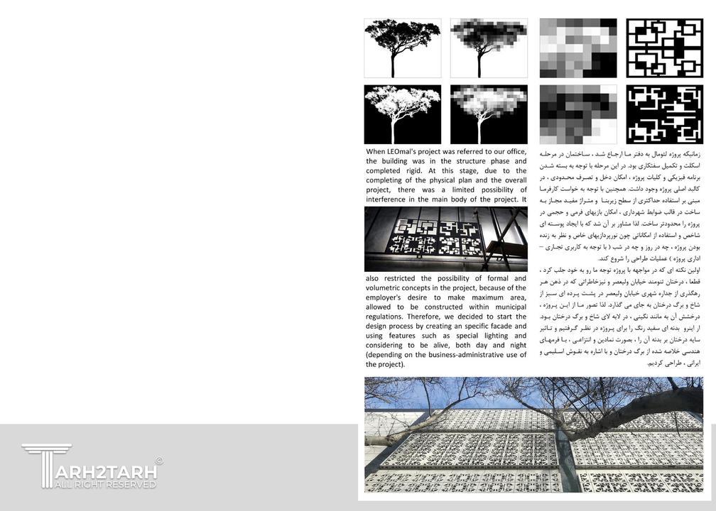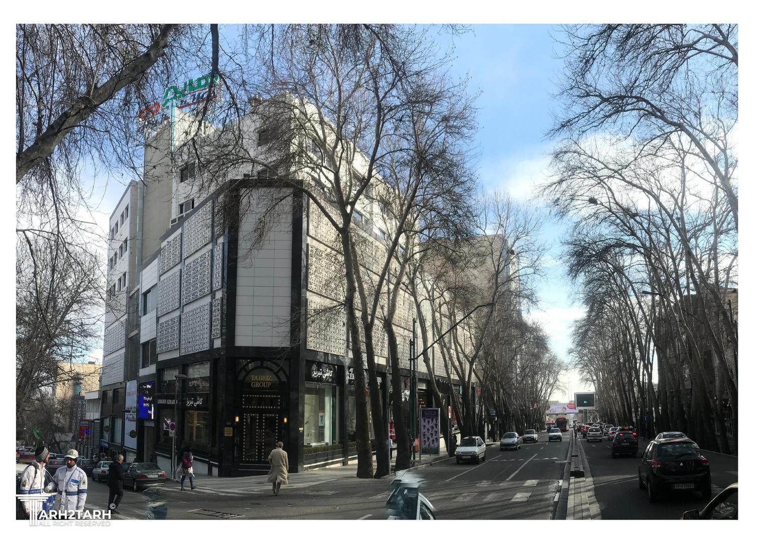 تمرکز ویژهای بر دو جنبه : سایهاندازی درختان خیابان بر روی نما، و ایجاد یک شکل یا فرم هندسی خاص در طراحی.