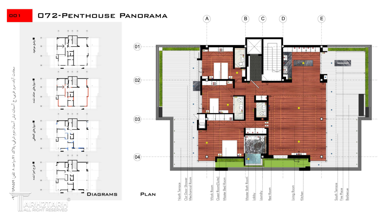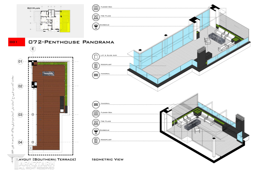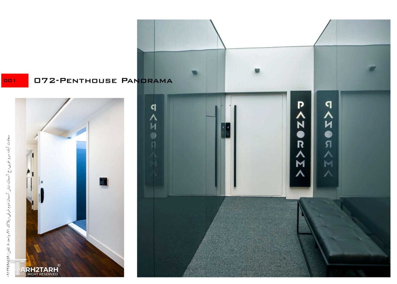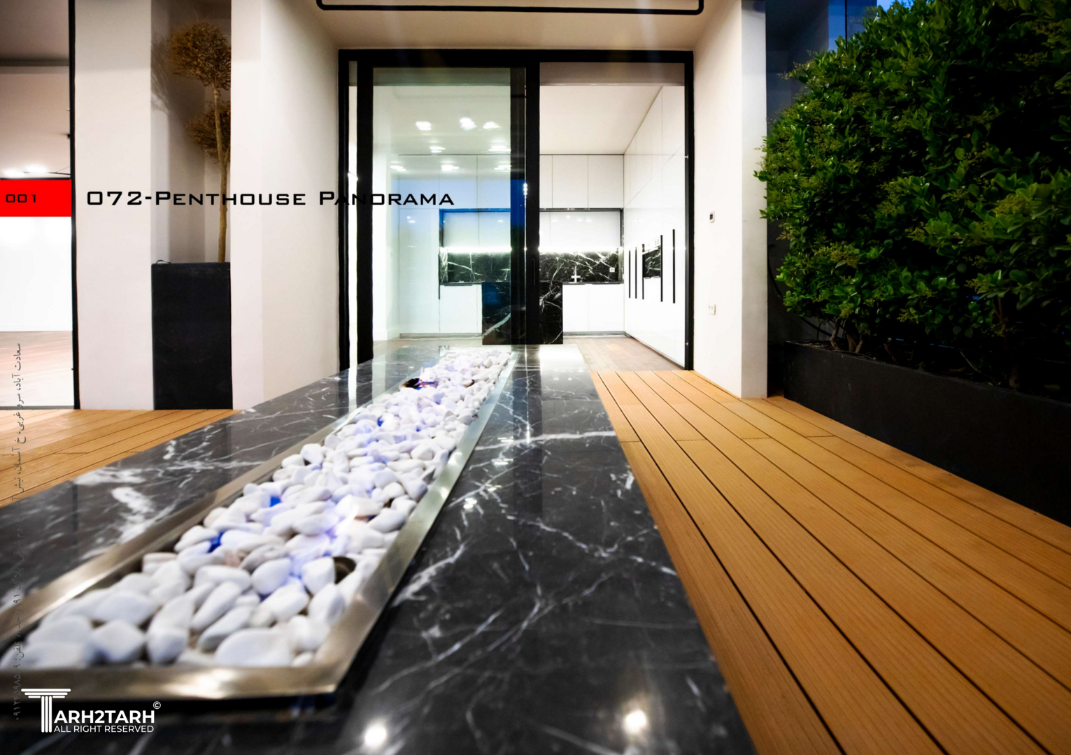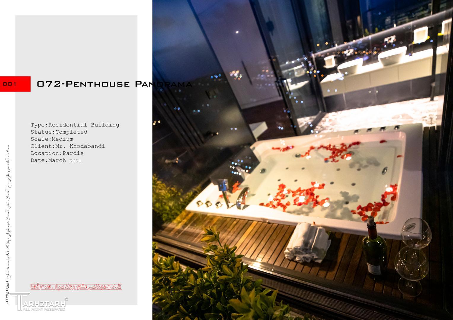 پنت هاوس پانوراما بازسازی یک واحد 250 متری در طبقه هشتم یک برج مسکونی در فاز 2 پردیس است که به دلیل دید 360 درجه به شهر پردیس و اتوبان تهران-پردیس نام پانوراما را براش انتخاب کردیم. چالش اصلی ما طراحی مرز بین بیرون و درون در دانه های عملکردی پروژه بود به گونه ای که 4 گونه مرز تعریف کردیم مرز درون مرز درون با بیرون مرز بیرون با درون و مرز بیرون