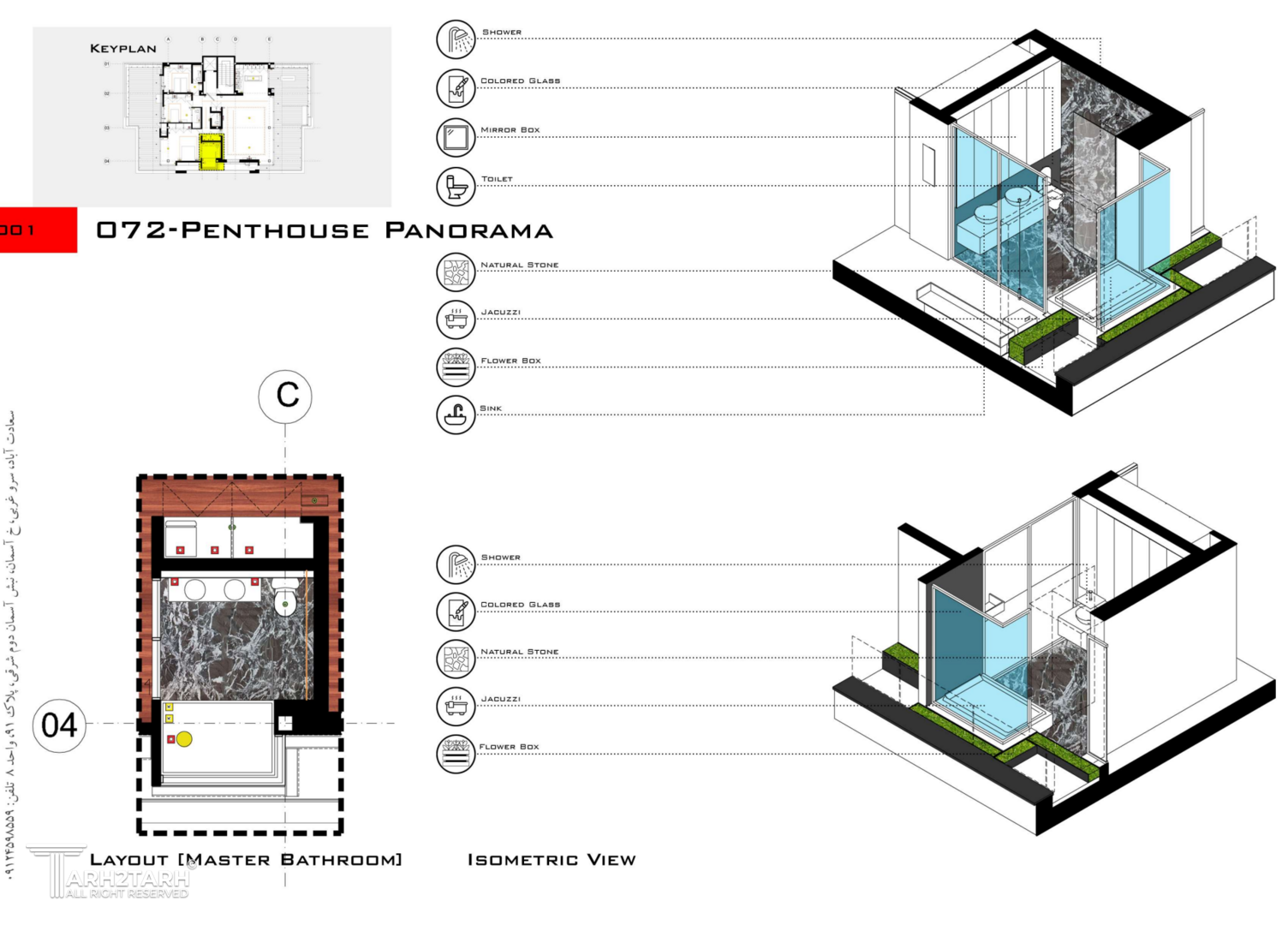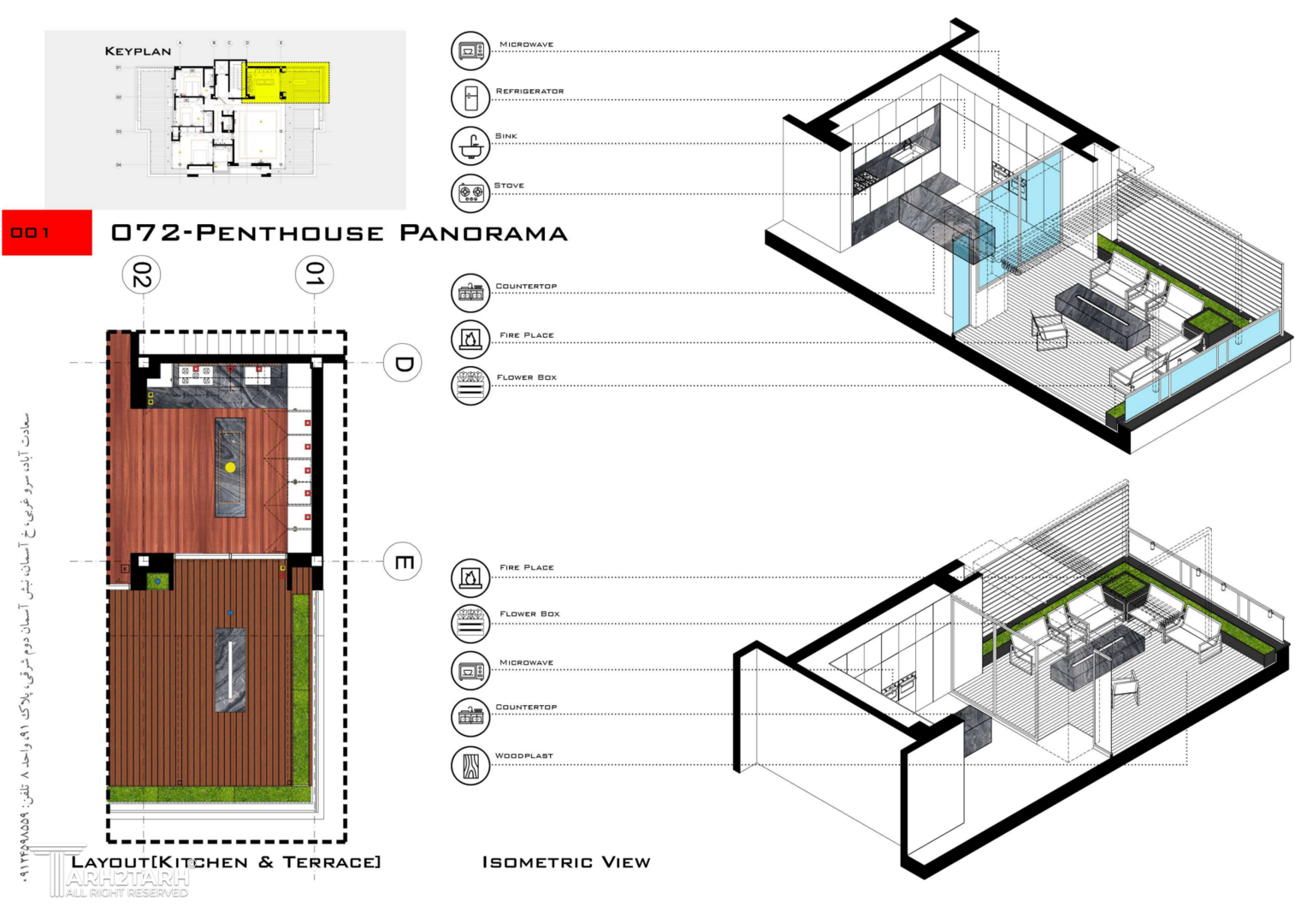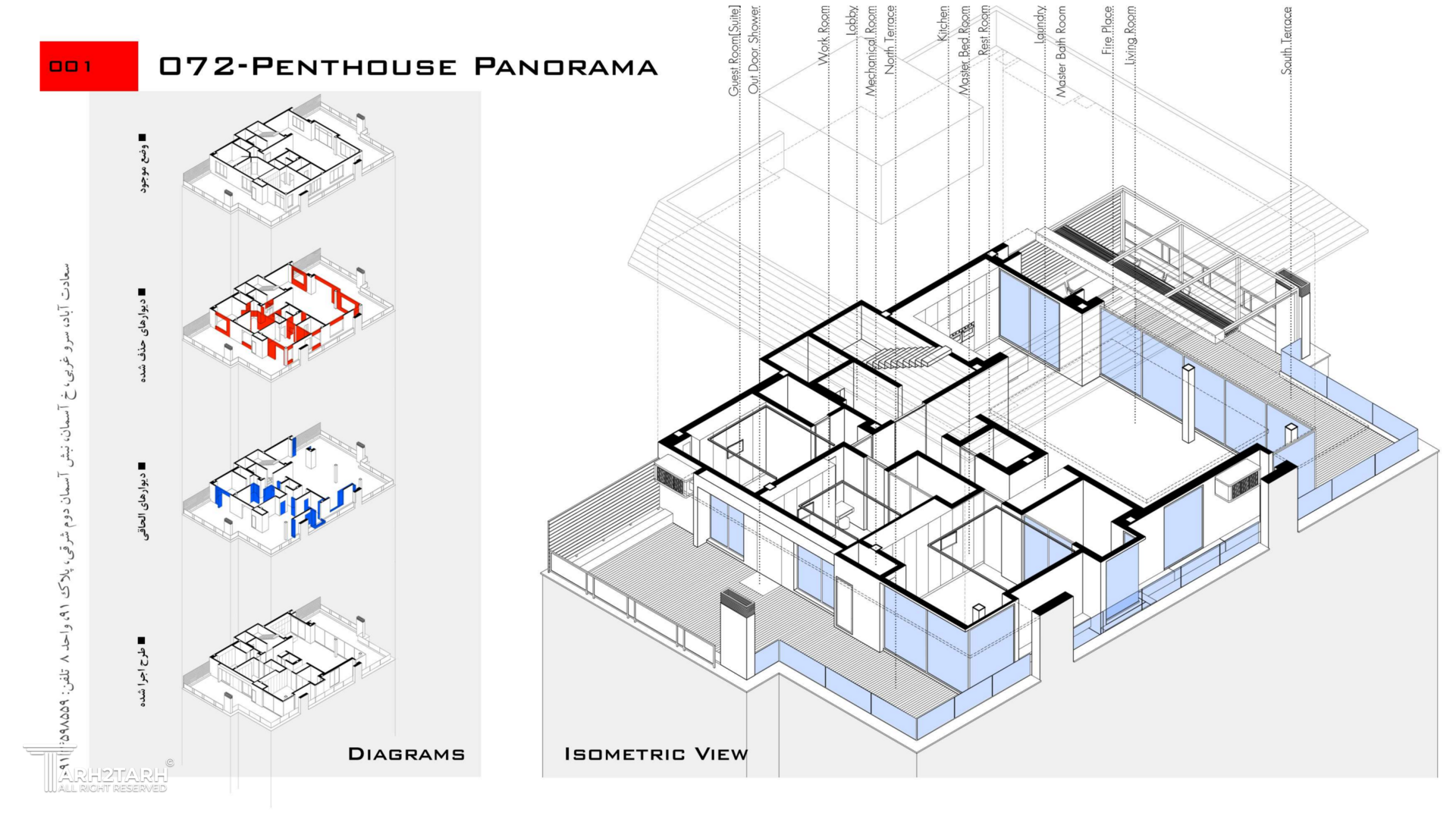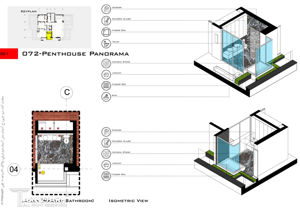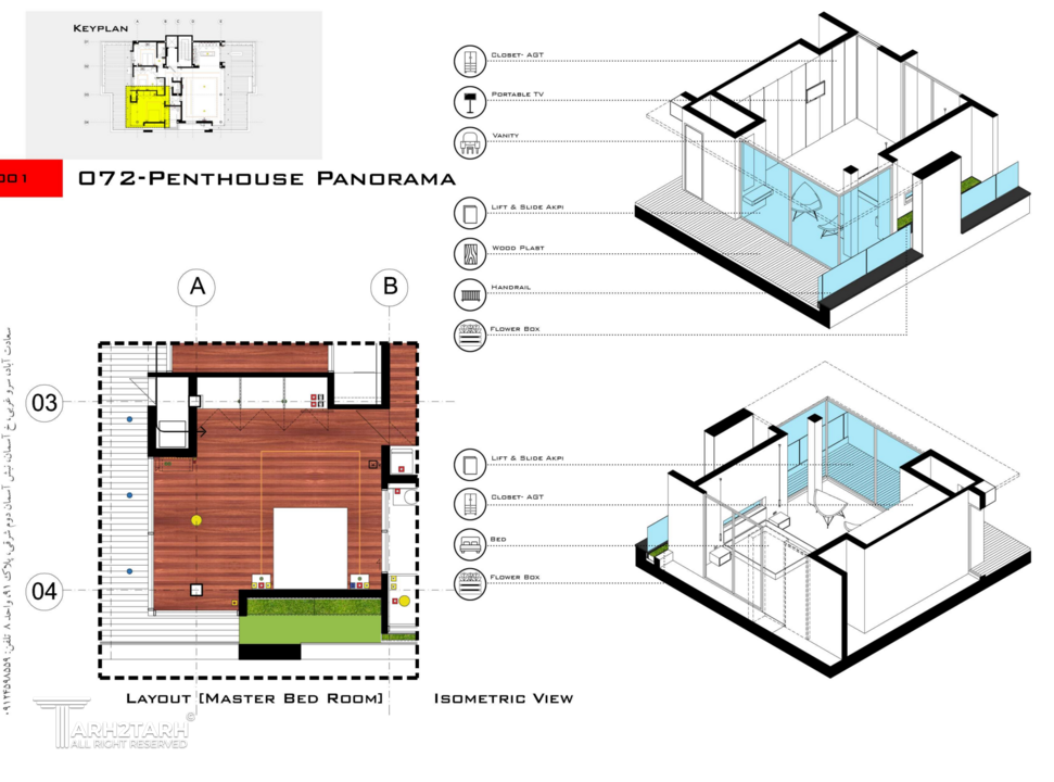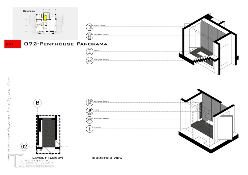 پنت هاوس پانوراما بازسازی یک واحد 250 متری در طبقه هشتم یک برج مسکونی در فاز 2 پردیس است که به دلیل دید 360 درجه به شهر پردیس و اتوبان تهران-پردیس نام پانوراما را براش انتخاب کردیم. چالش اصلی ما طراحی مرز بین بیرون و درون در دانه های عملکردی پروژه بود به گونه ای که 4 گونه مرز تعریف کردیم مرز درون مرز درون با بیرون مرز بیرون با درون و مرز بیرون
