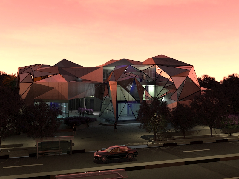 کانسپت اولیه پروژه از مولکولهای آب برداشته شده و یک فرهنگسرا در تهران و بیانگر حرکت و سیالیت یباشد