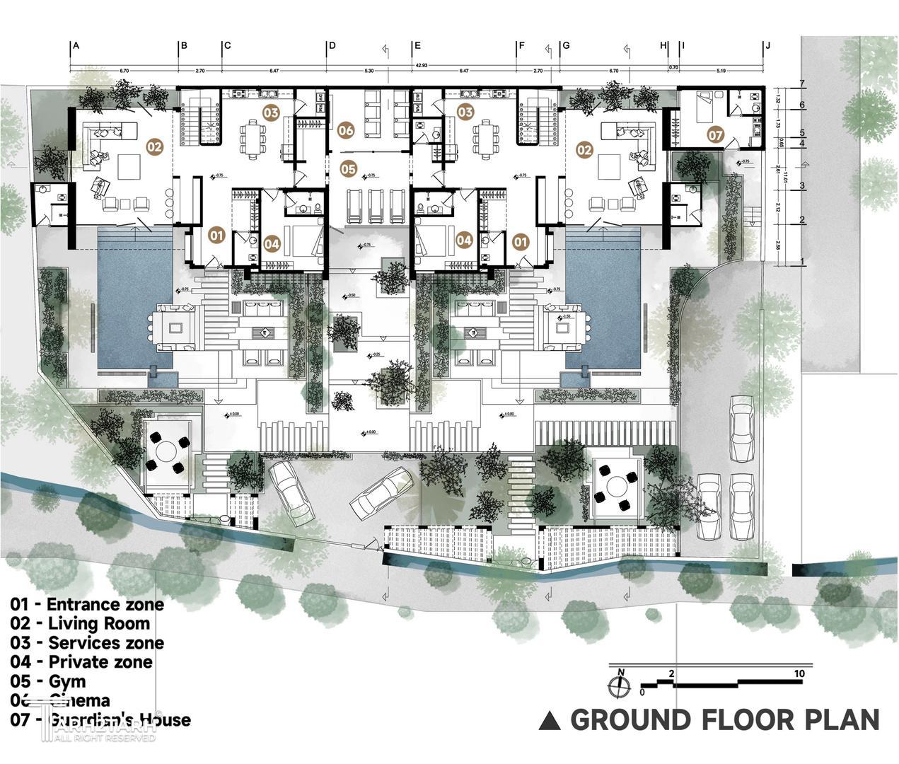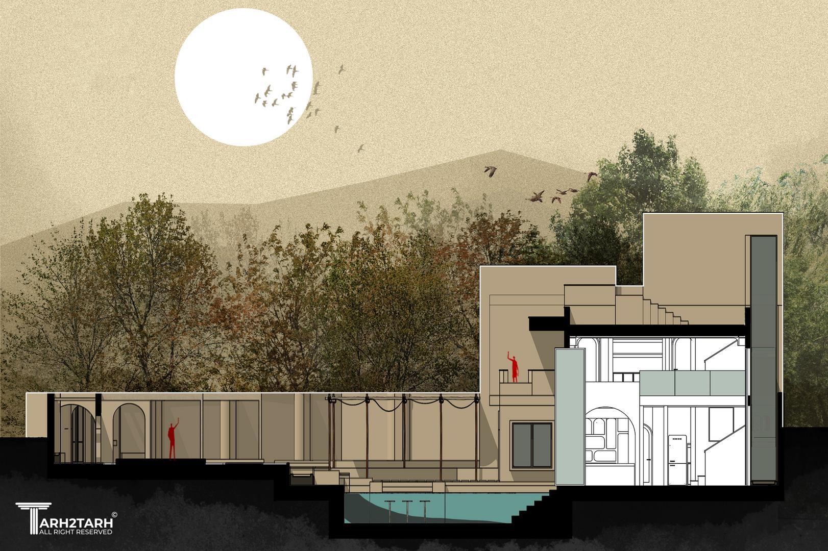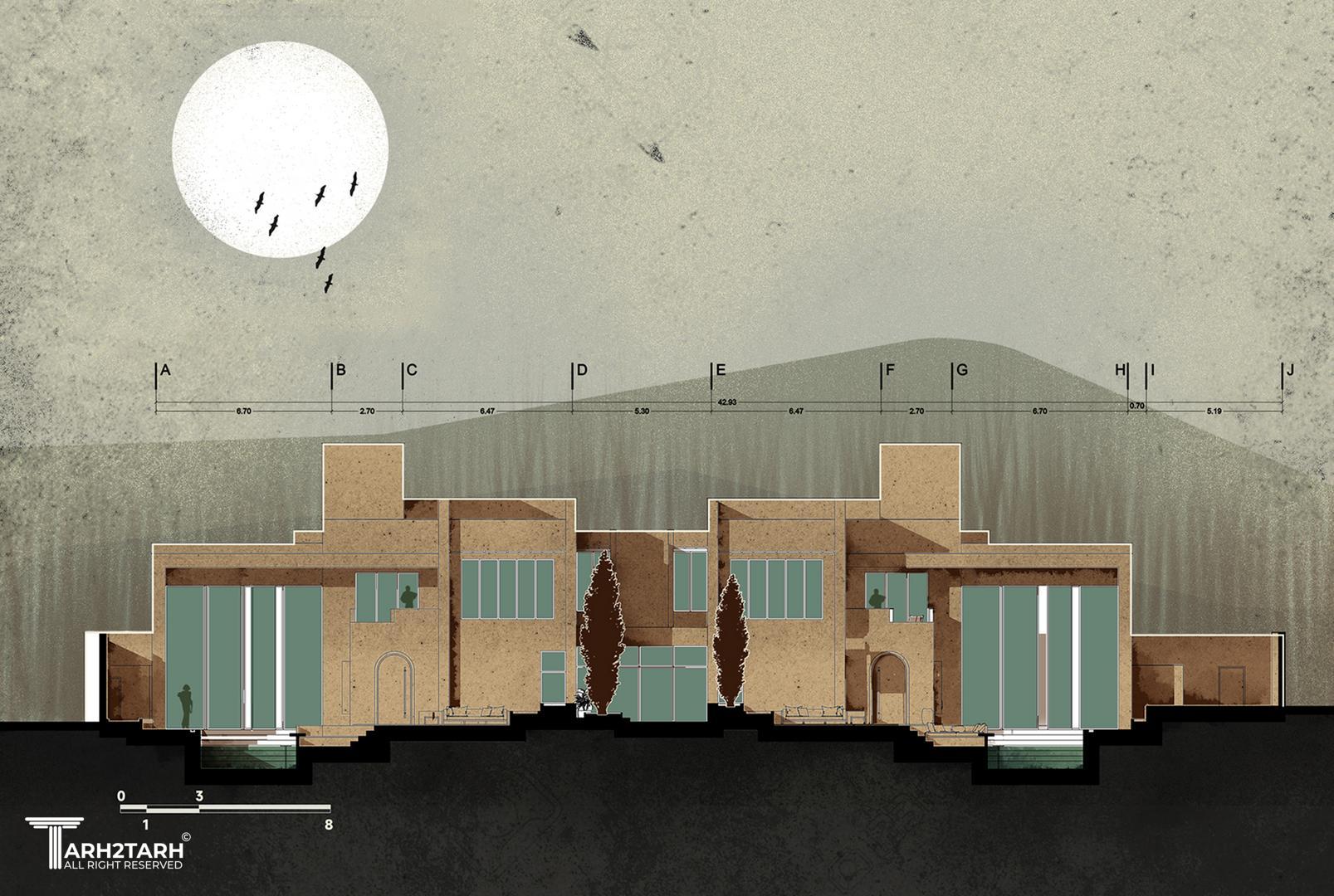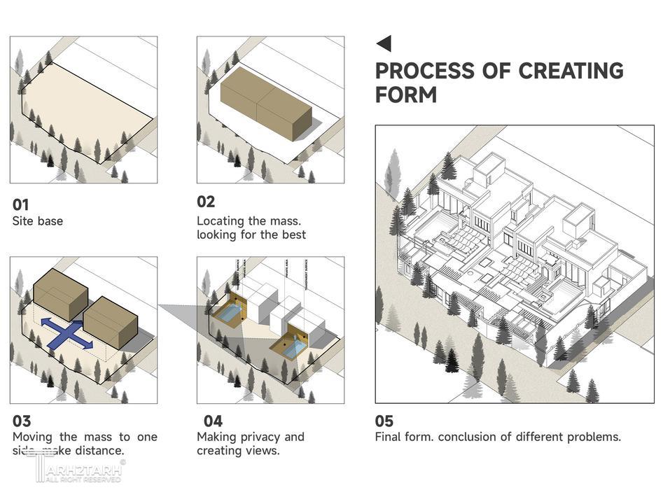 «ویلا دوبرادر» شامل دو ویلای همسان برای دو برادر است؛ فضاهایی که نهتنها از نظر فرم و عملکرد مشابهاند، بلکه با هدف ایجاد هویتی مشترک و هماهنگ طراحی شدهاند. در این پروژه تلاش شده است تا از الگوهای معماری بومی و متریالهای محلی بهره گرفته شود تا بنا در پیوستگی کامل با بستر طبیعی و فرهنگی خود قرار گیرد. جانمایی فضاها نیز بهگونهای طراحی شده که عرصههای مشترک و قابل استفاده برای هر دو خانواده شکل گیرد؛ فضاهایی که تعامل، صمیمیت و تجربهی مشترک زندگی را تقویت میکنند.