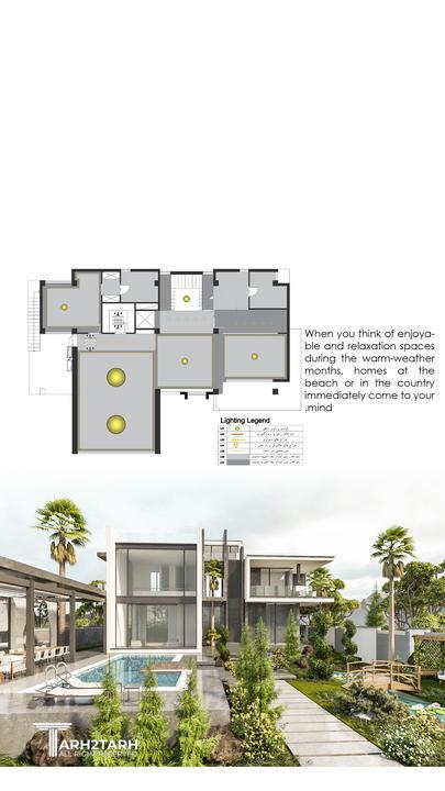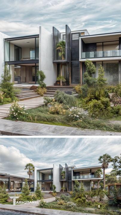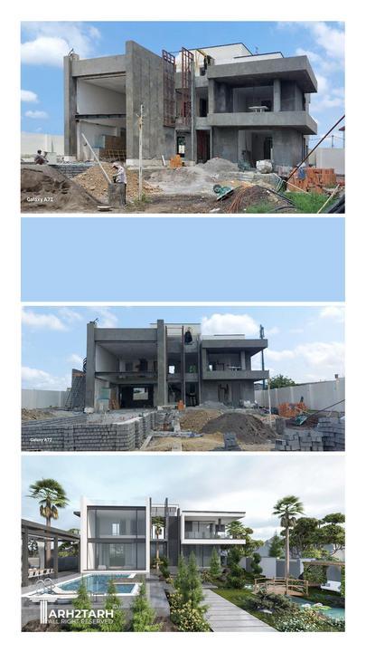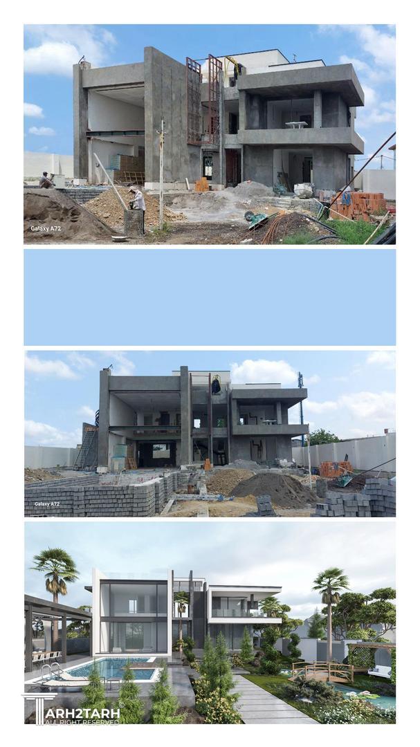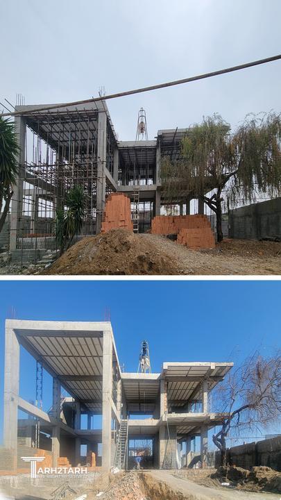 پروژه ی ویلایی رامسر با زیر بنای 400 متر مربع و ترکیبی از المان های U شکل در نما و ترکیب فضای سبز و درخت با ویلا طراحی و ساخته شده است.
