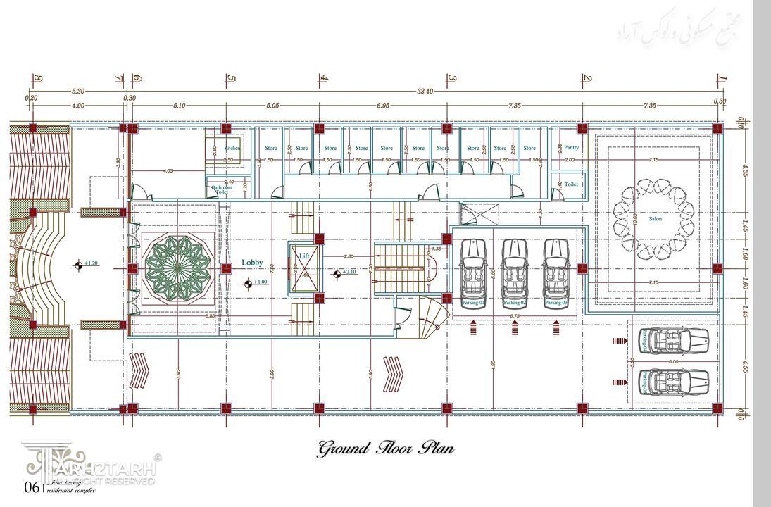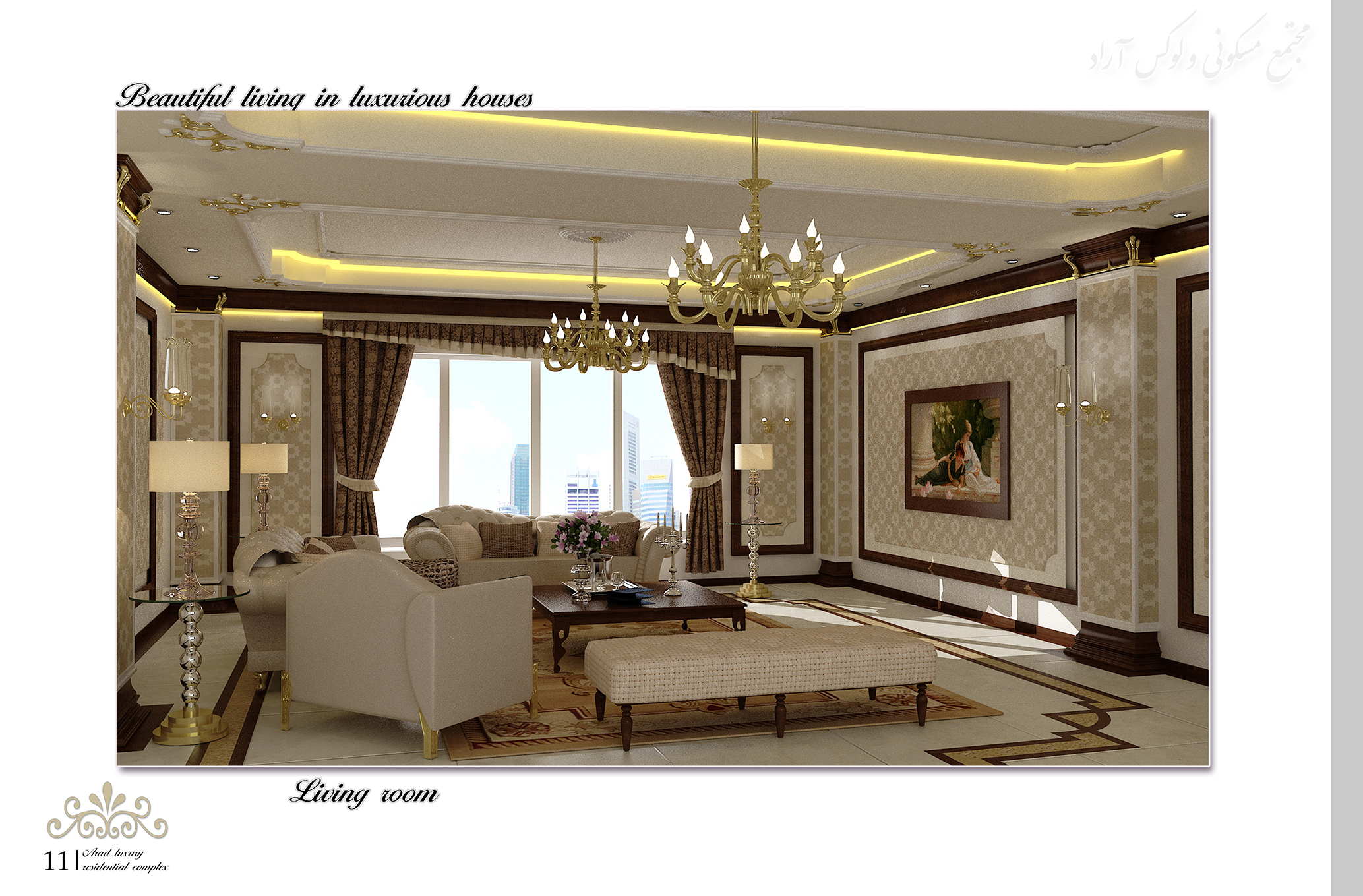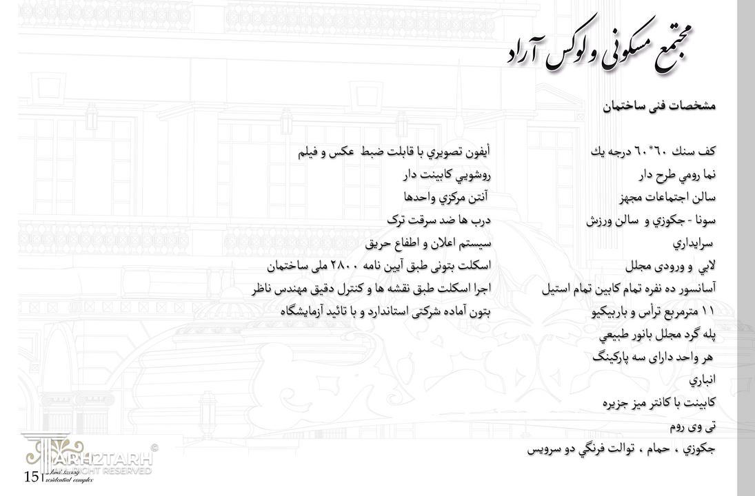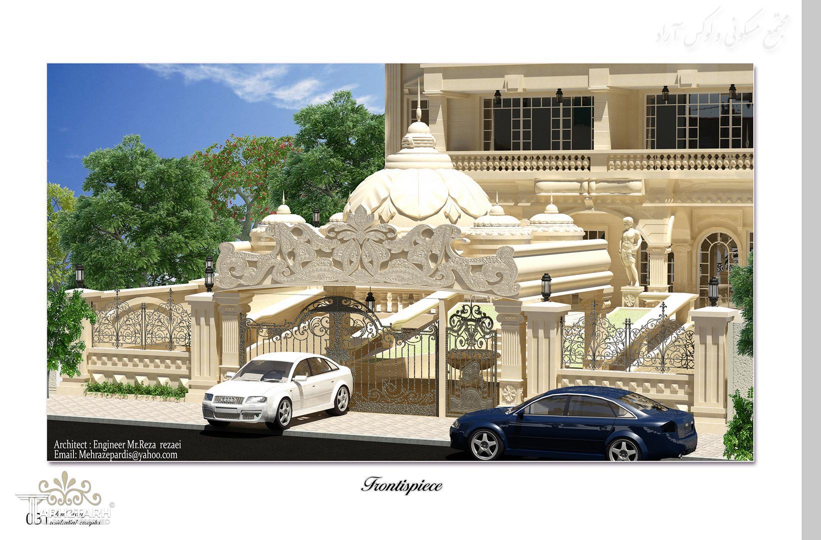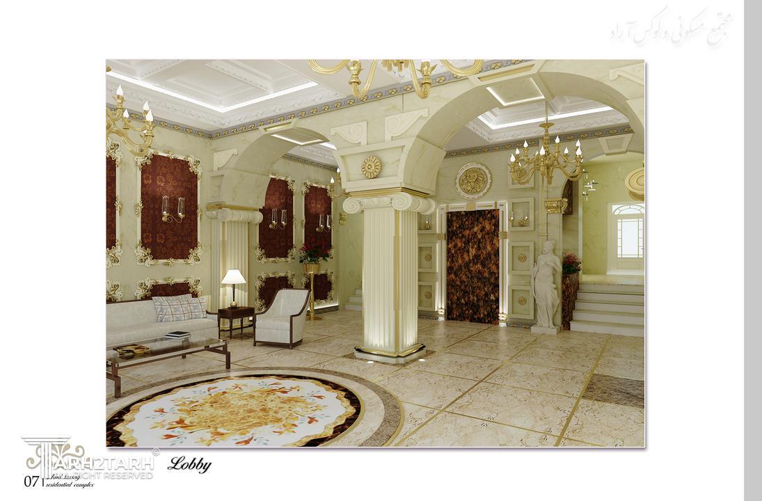 ساختمان کلاسیک در عظیمیه کرج، با نمای سنگی روشن، ستونهای بلند کورینتی، و لابی ۶ متری مجلل با چلچراغ کریستالی. پلانها نورگیر، با تراسهای عریض، آشپزخانه جزیرهای، و اتاق مستر با کلوزت و وان ایستاده. امکانات شامل سالن اجتماعات، باشگاه، و پارکینگ طبقاتی با آسانسور شیشهای.