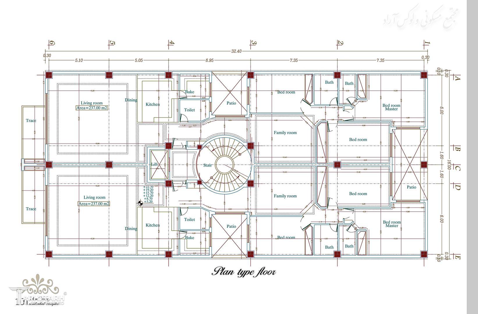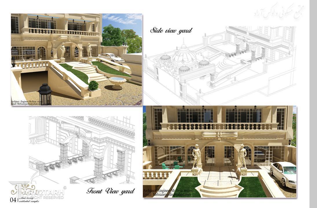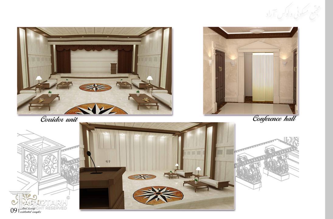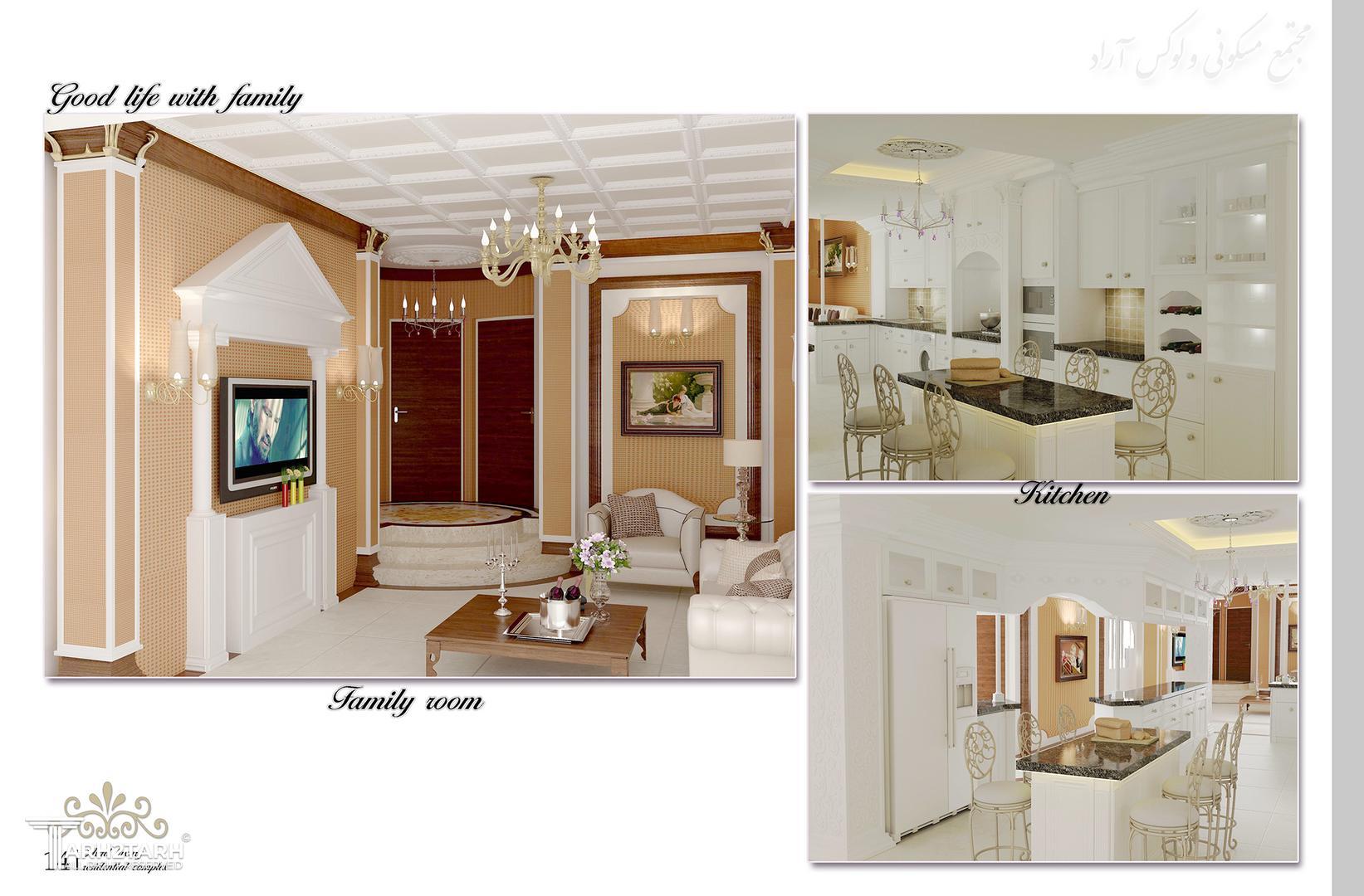 ساختمان کلاسیک در عظیمیه کرج، با نمای سنگی روشن، ستونهای بلند کورینتی، و لابی ۶ متری مجلل با چلچراغ کریستالی. پلانها نورگیر، با تراسهای عریض، آشپزخانه جزیرهای، و اتاق مستر با کلوزت و وان ایستاده. امکانات شامل سالن اجتماعات، باشگاه، و پارکینگ طبقاتی با آسانسور شیشهای.