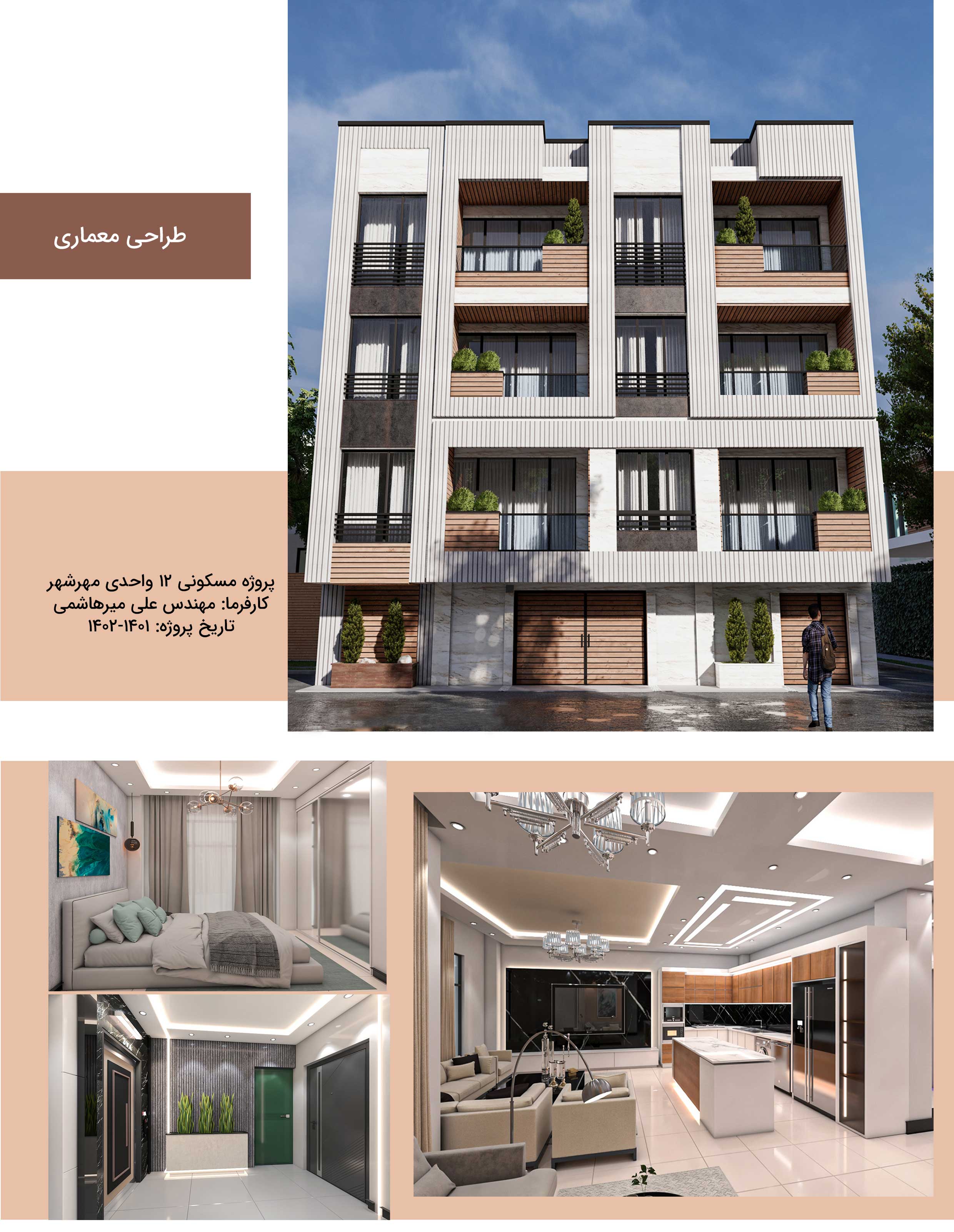 پروژه ساختمان مسکونی مهرشهر طراحی صفرتاصد انجام شده از پلان نماها و طراحی داخلی کامل